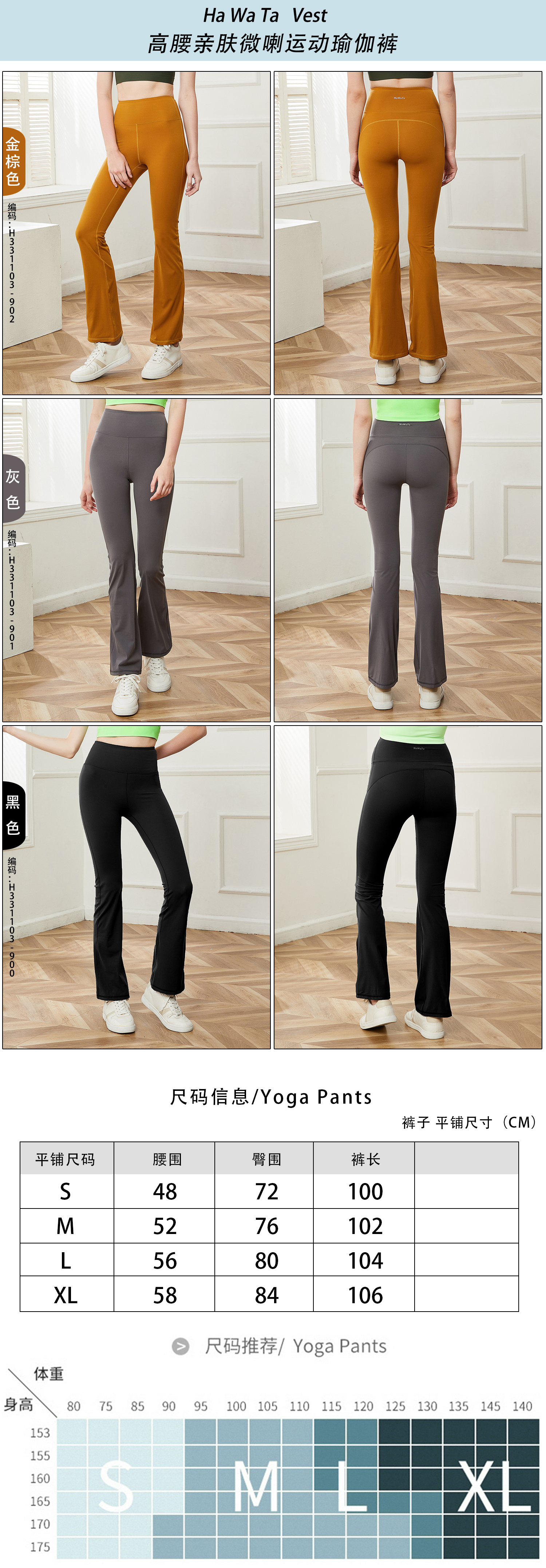 哈瓦塔高腰亲肤微喇运动瑜伽裤
