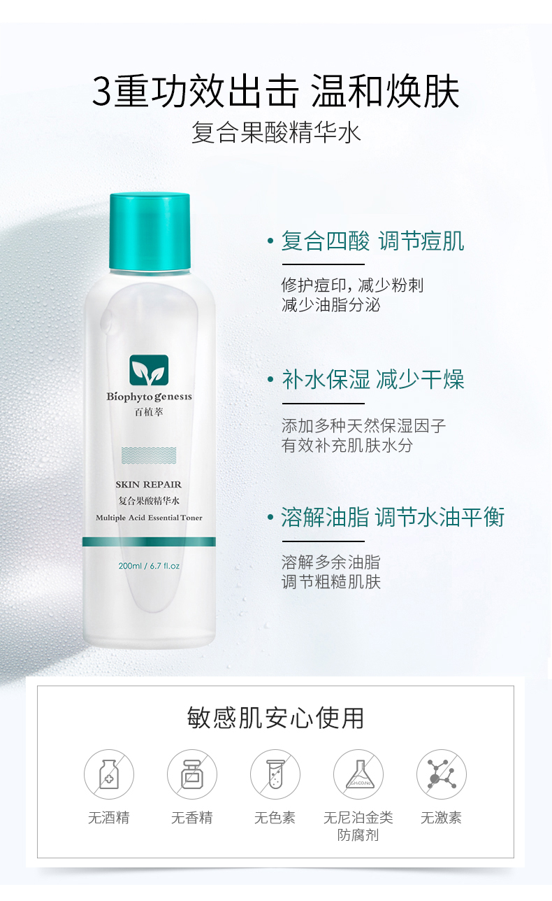 【百植萃】百植萃复合果酸精华水控油补水保湿淡化痘印爽肤水安瓶精华液 果酸精华水200ml