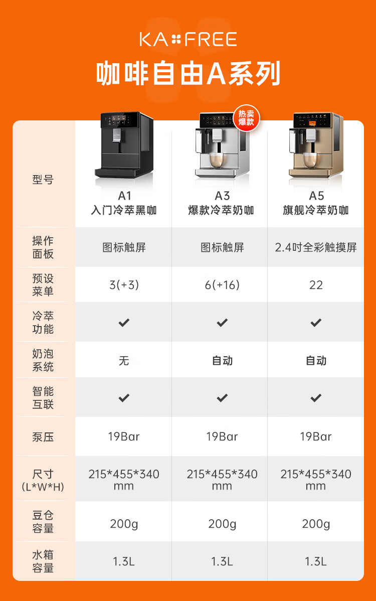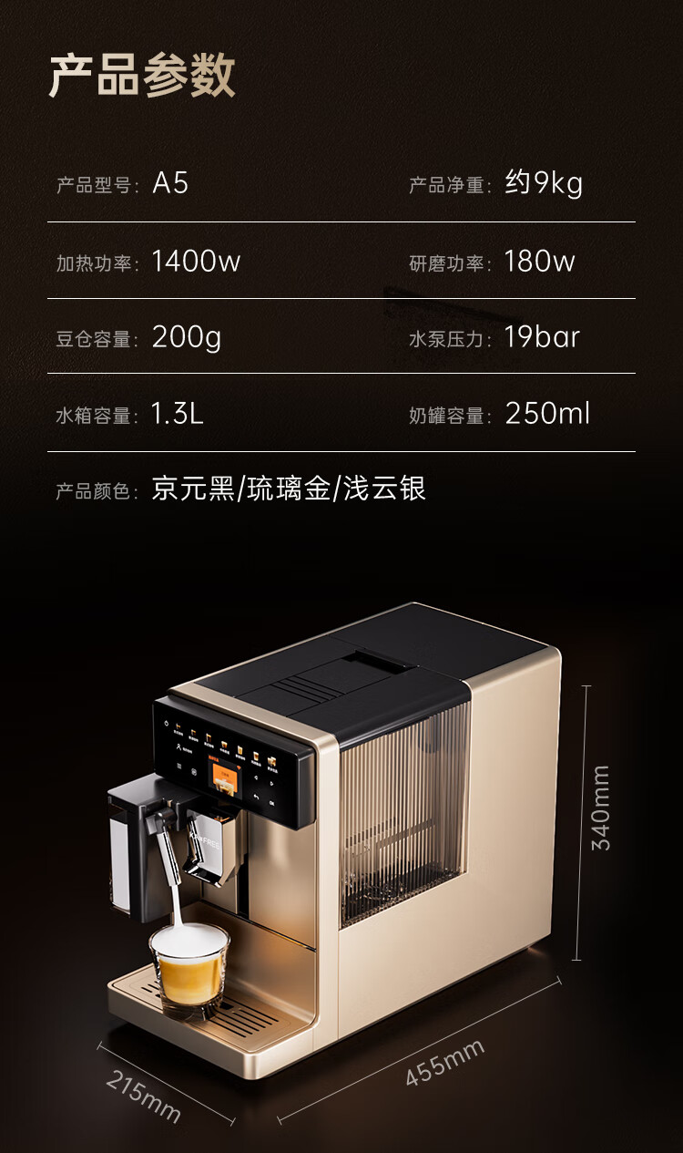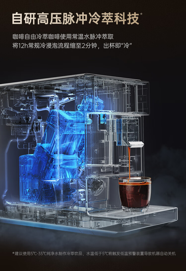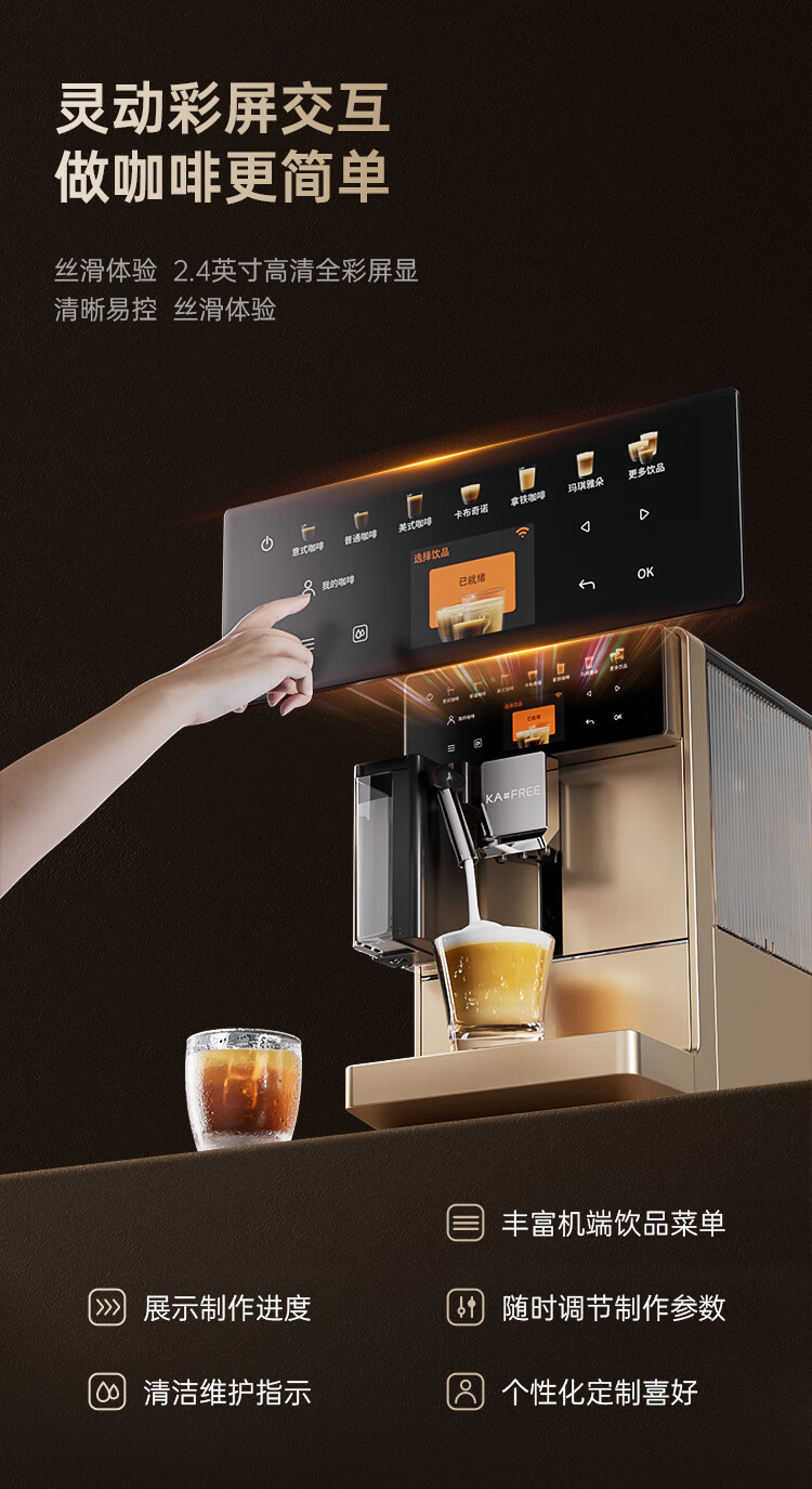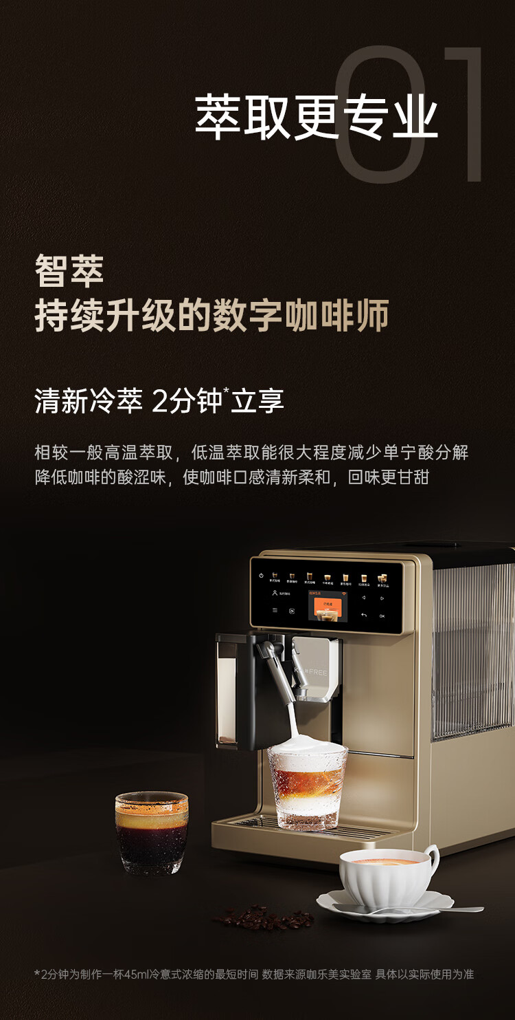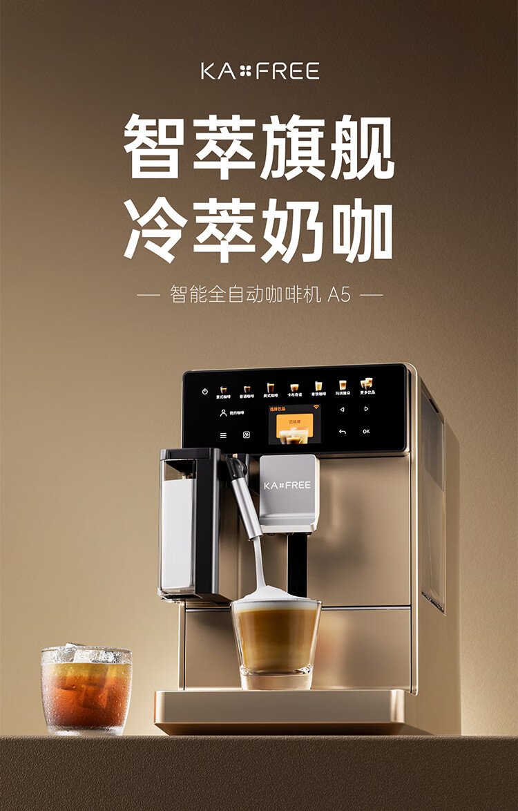 咖啡自由(KAxFREE)咖啡机_家用全自动_智能冷萃咖啡机19Bar泵压意式现磨咖啡机_A5_浅云银【新】