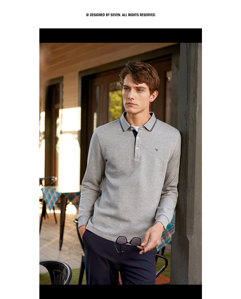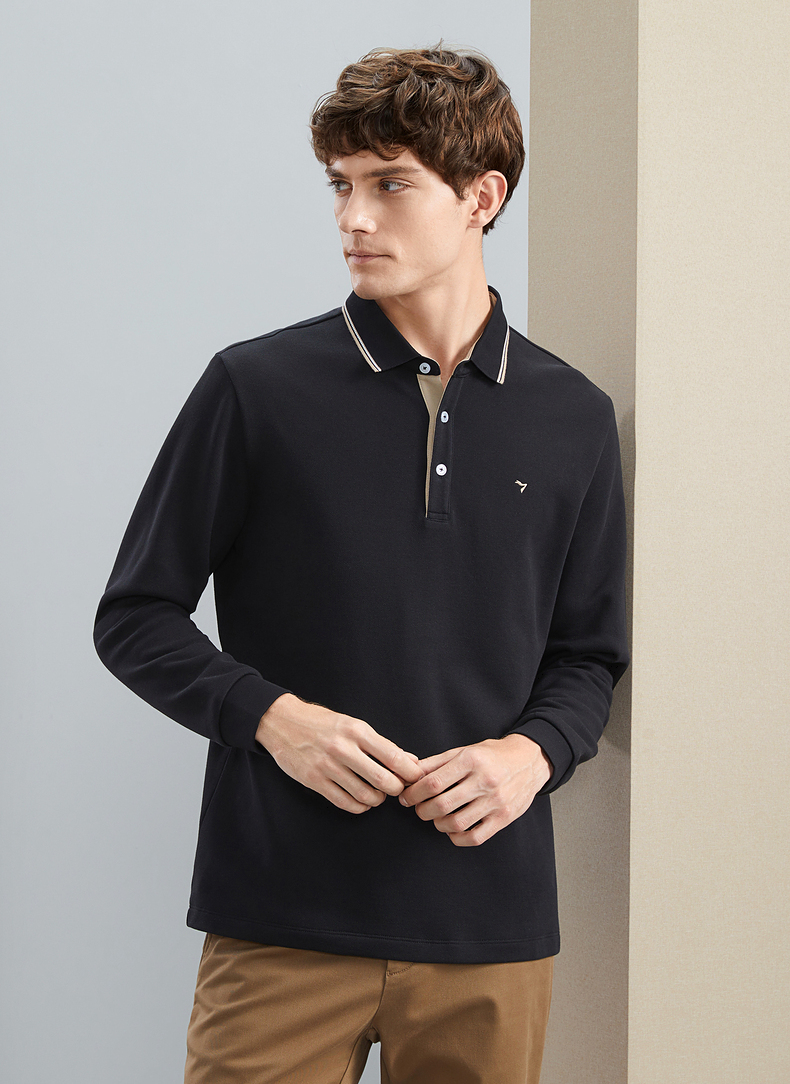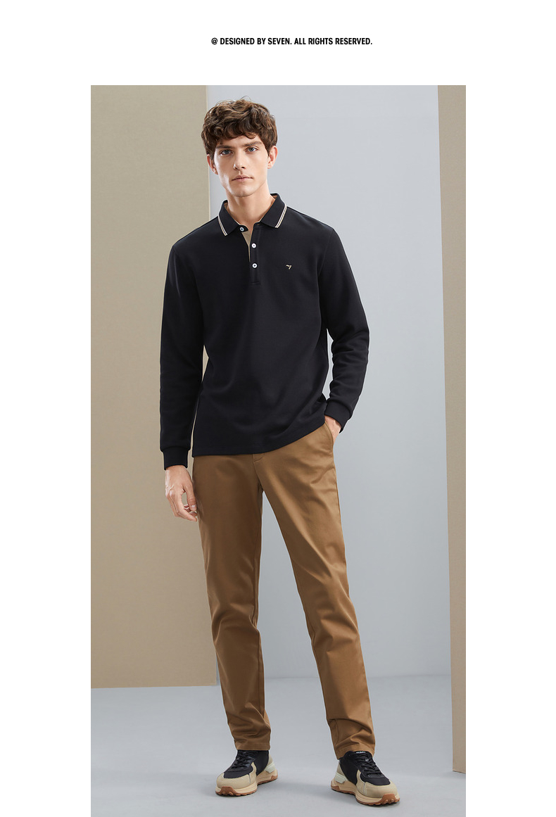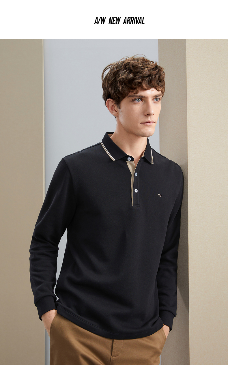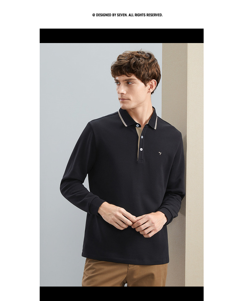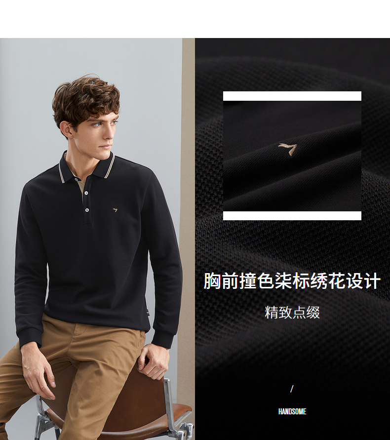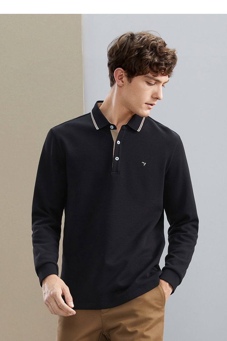 【暖燚绒】柒牌男士长袖polo衫秋冬新款商务休闲撞色翻领保暖T恤 125T70240