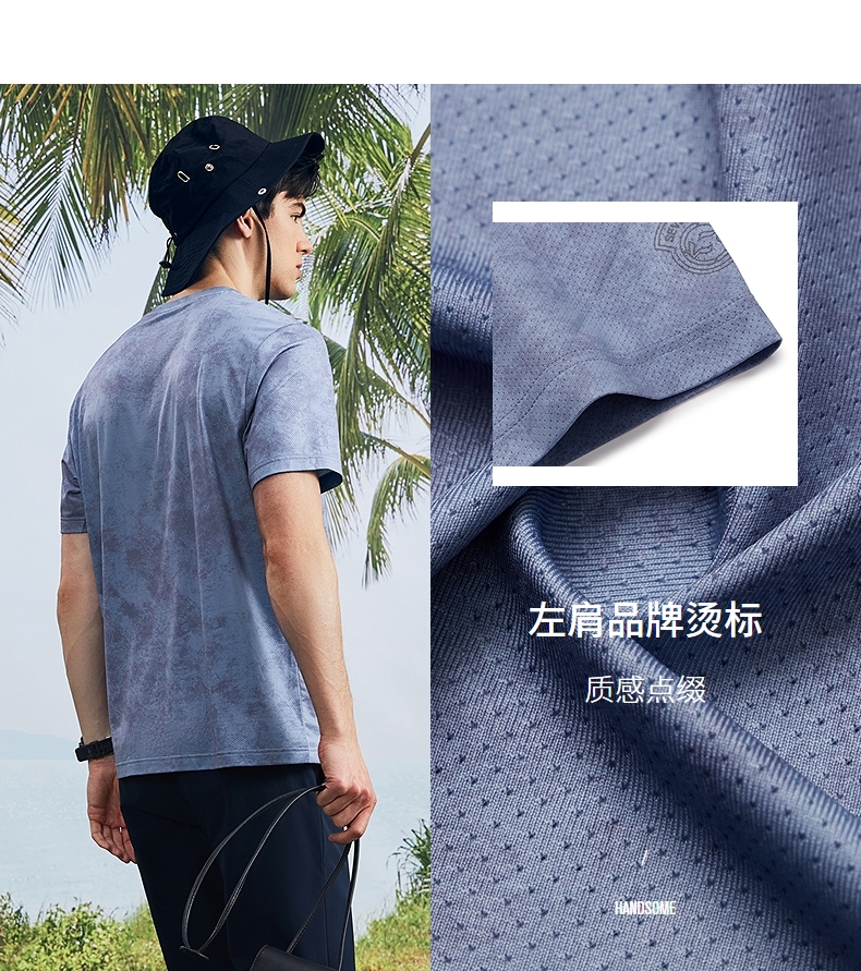 柒牌短袖T恤男2024夏季新款时尚迷彩满印透气网眼休闲圆领体恤衫 126T72940