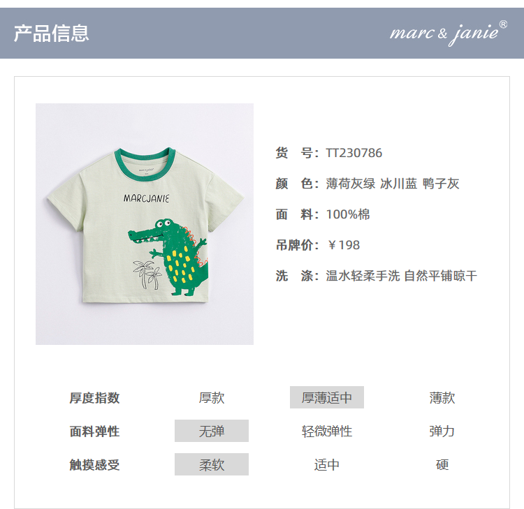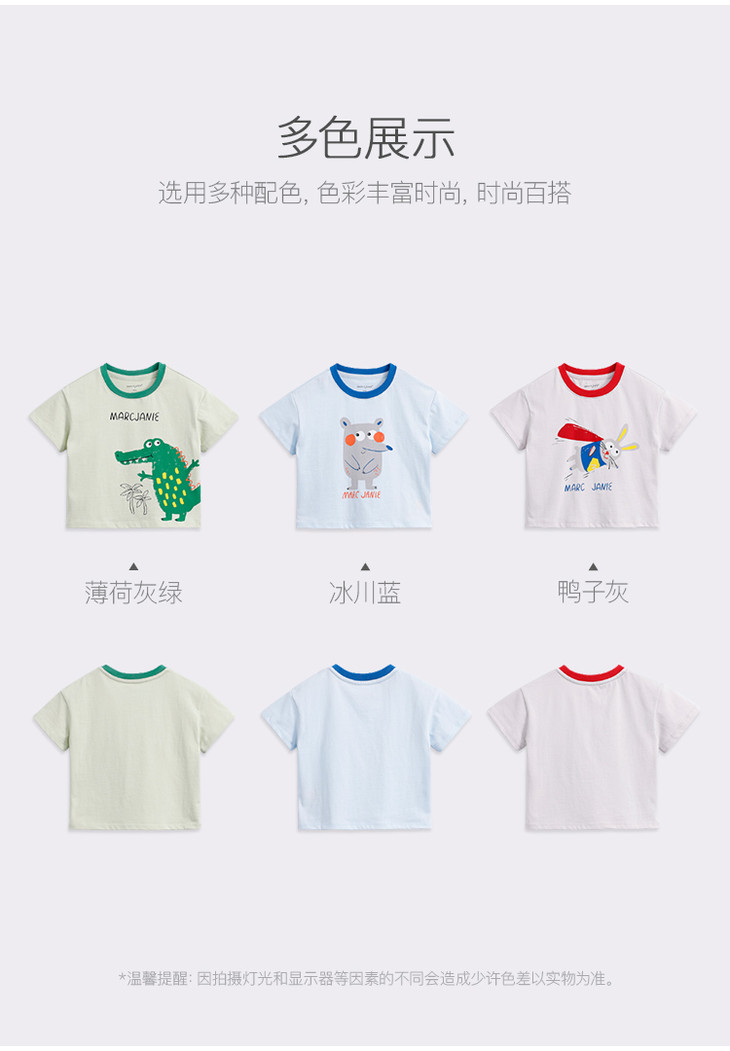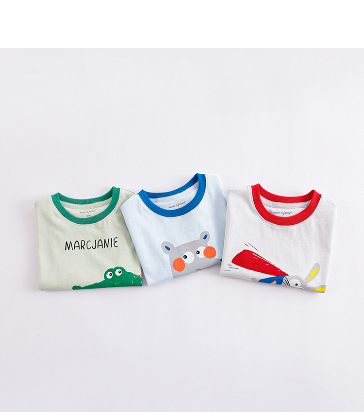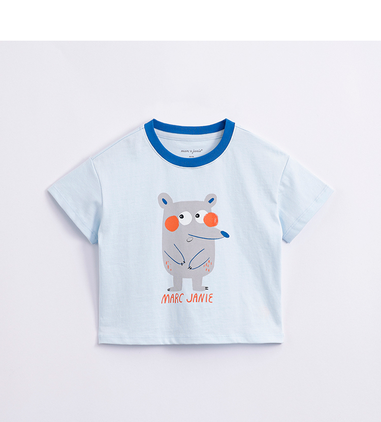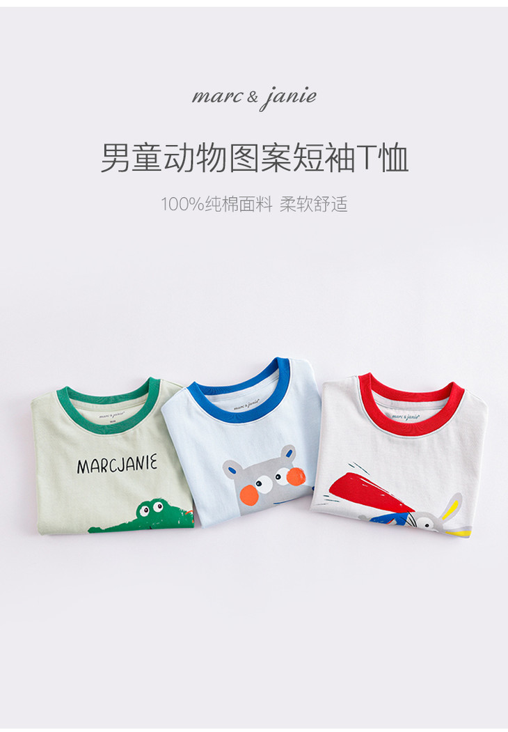 马克珍妮夏装新款 男童手绘动物纯棉短袖T恤儿童上衣230786