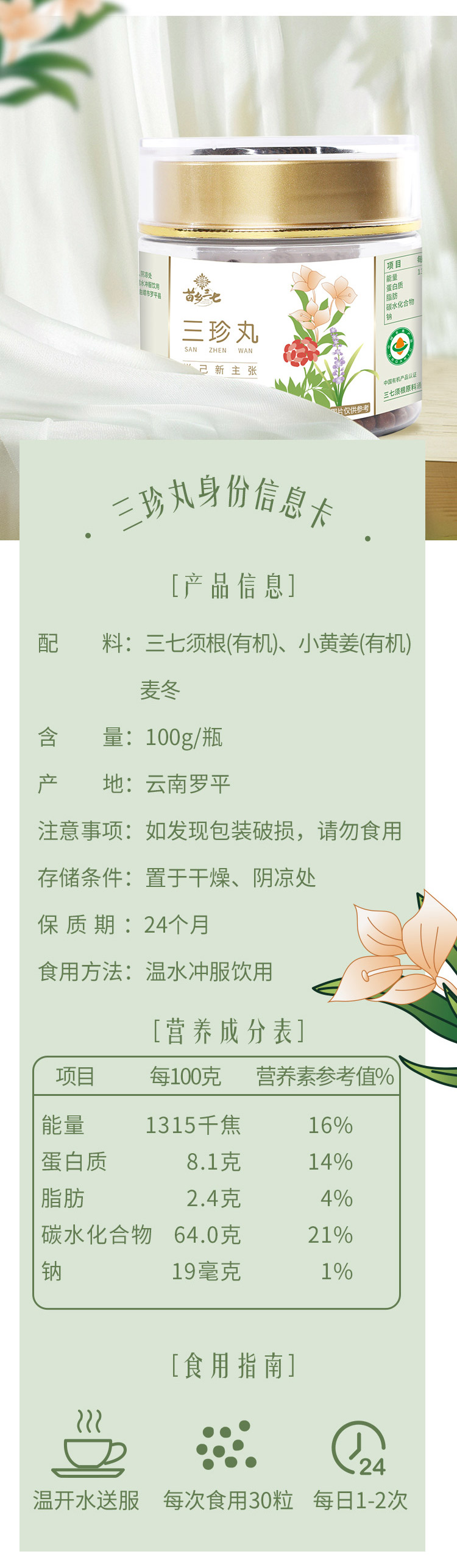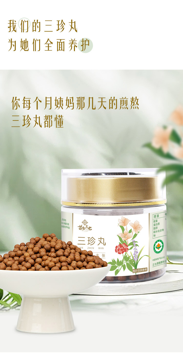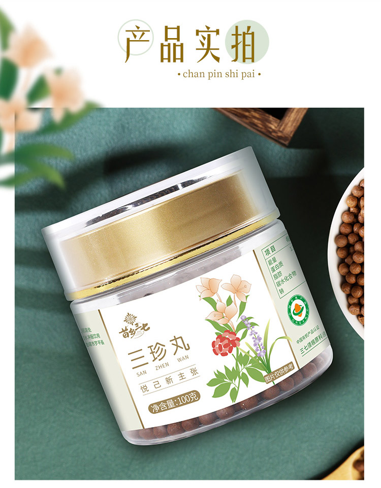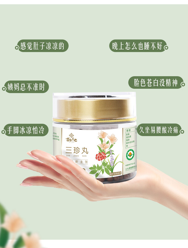 三珍丸 有机三七/有机小黄姜/麦冬搭配的 告别手脚冰冷 身体通畅 苗乡三珍丸 100g*2瓶