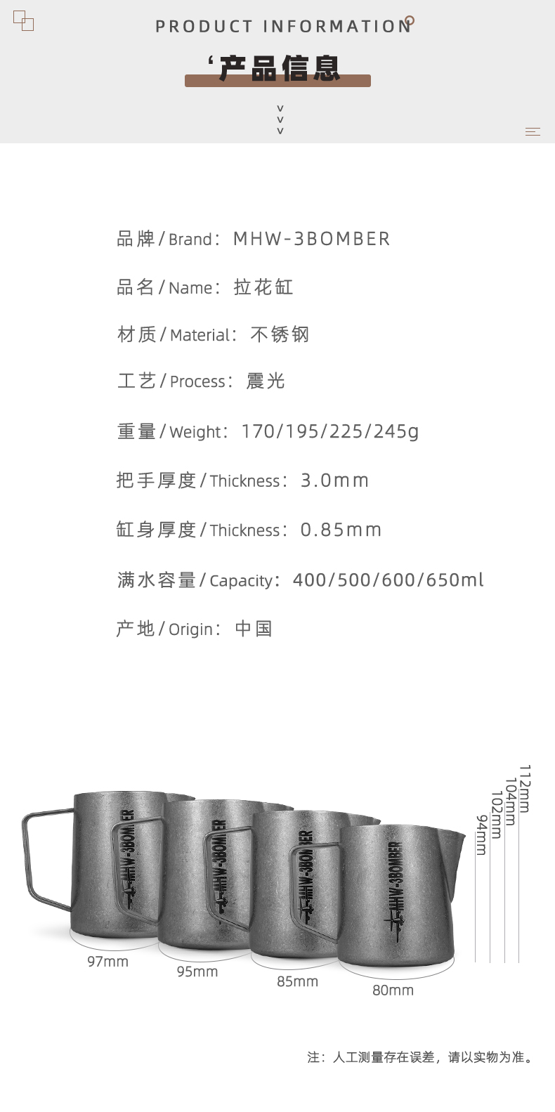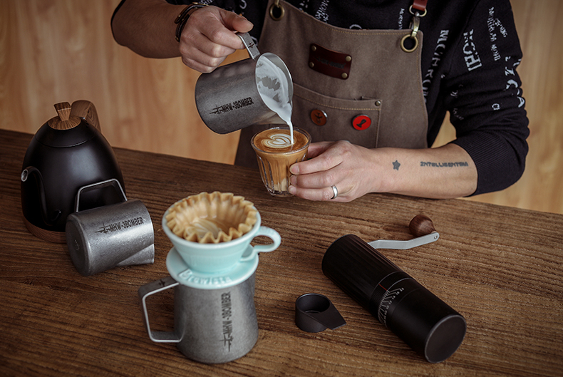 【器具】轰炸机拉花缸 做旧复古风 银斑 尖嘴拉花杯400ml/600ml 鳄鱼嘴