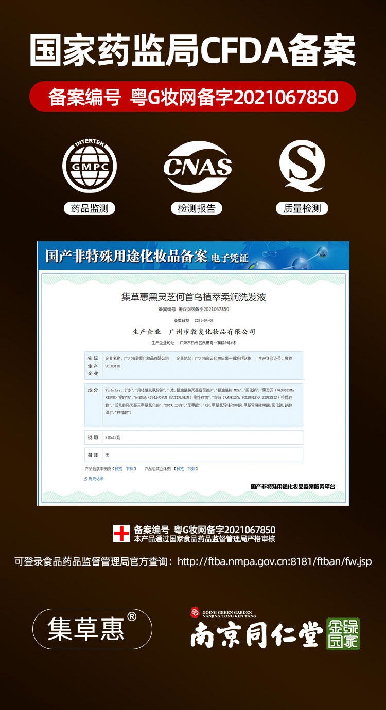 【买1送1 买2送2再减10 买3送3再减25 买5送5再减40】南京同仁堂绿金家园何首乌植萃润养洗发水养发护发