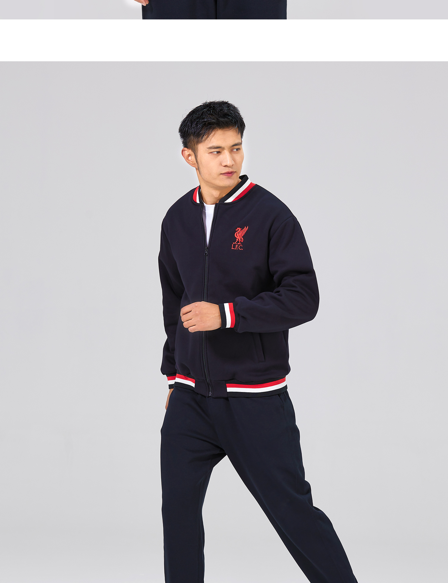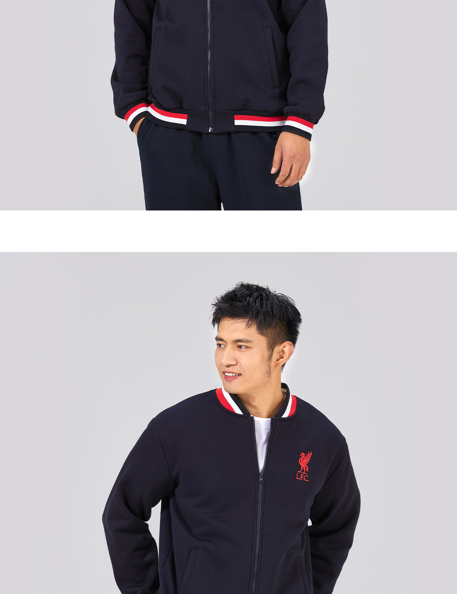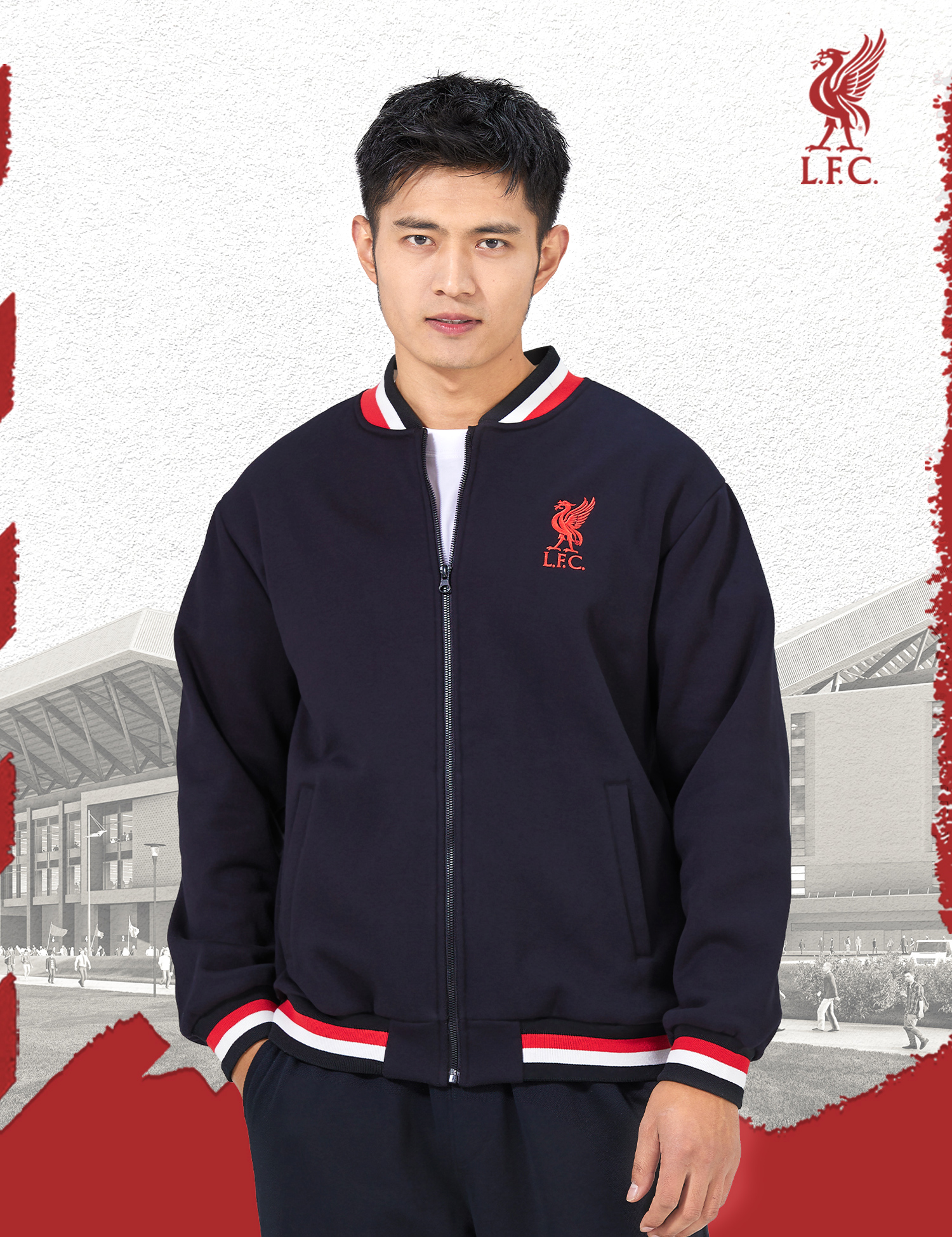 利物浦俱乐部官方商品 | 黑色休闲加绒棒球服外套简约男女同款