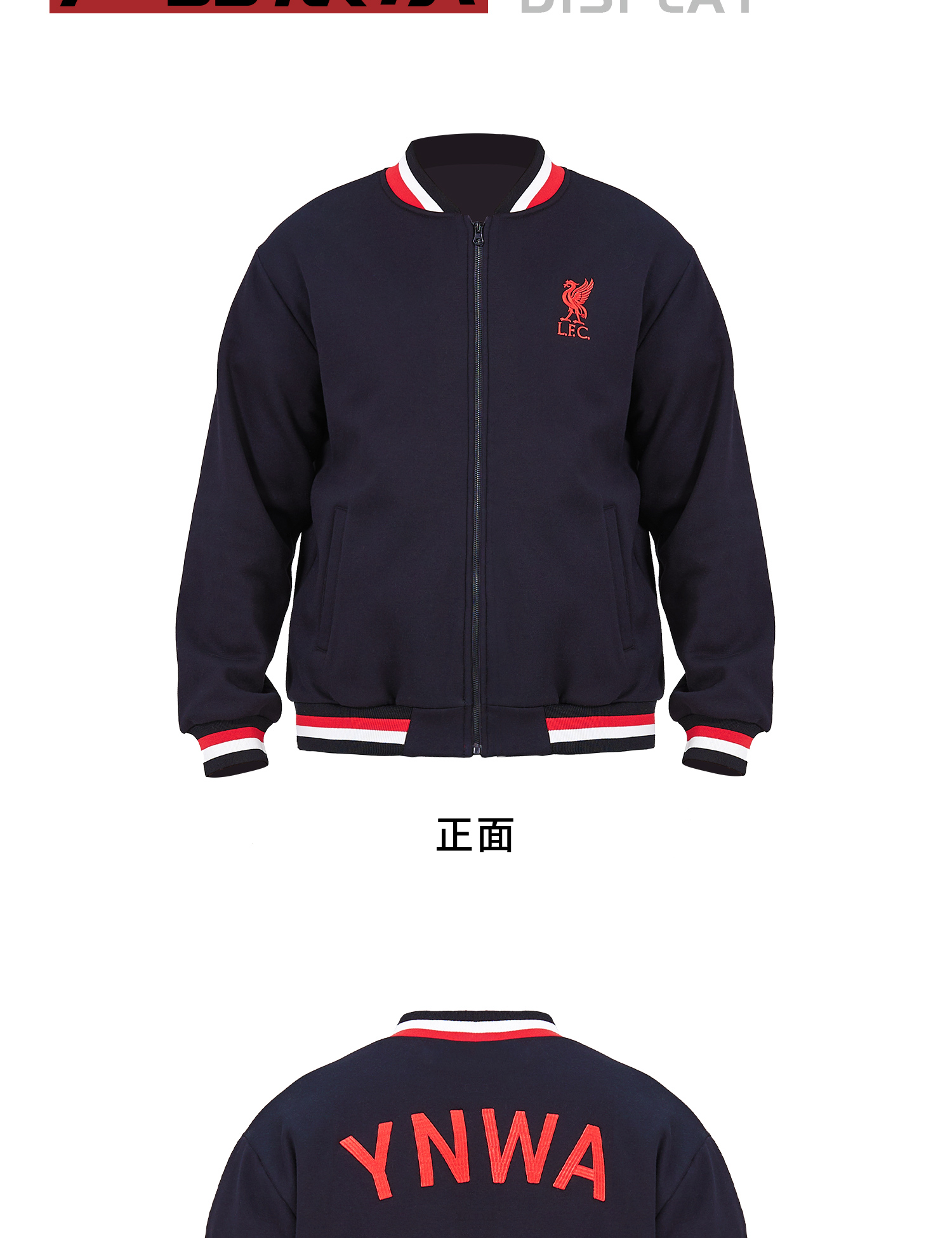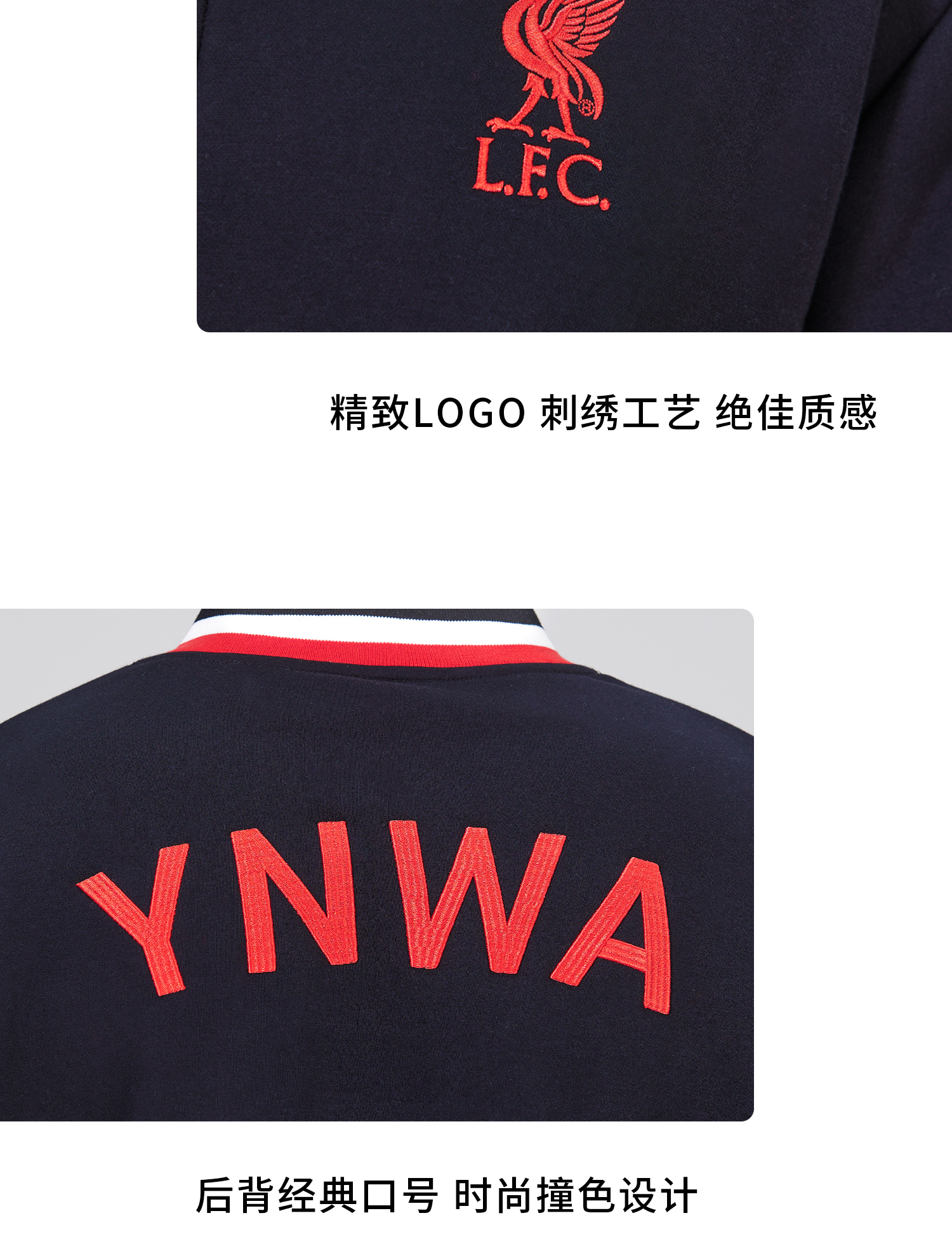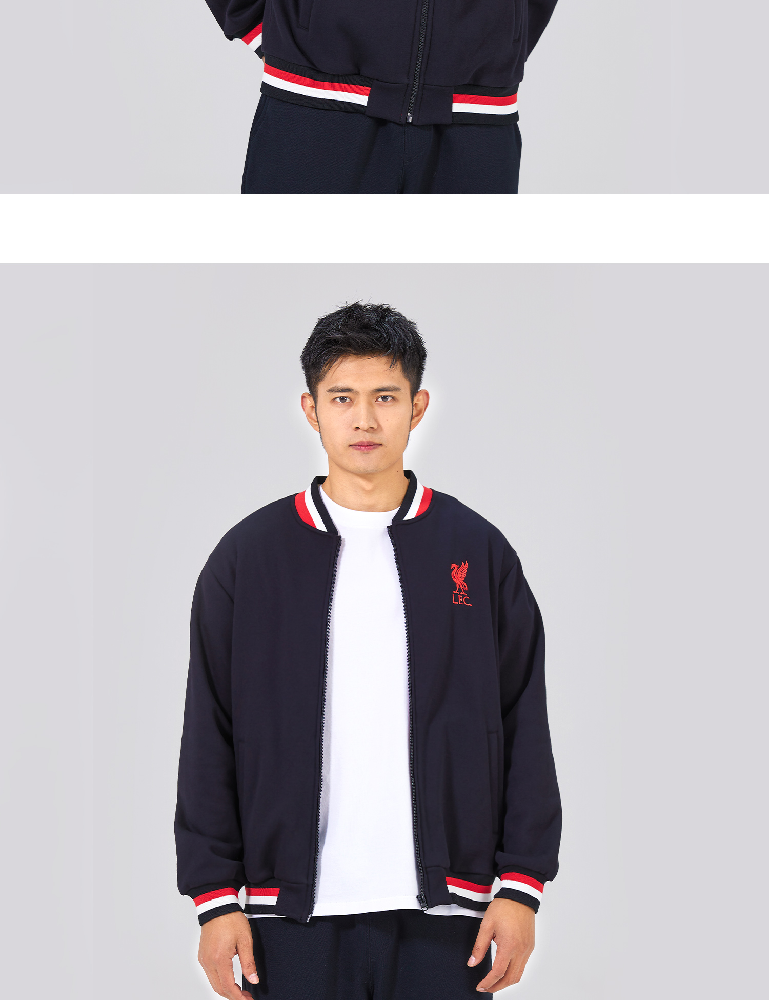 利物浦俱乐部官方商品 | 黑色休闲加绒棒球服外套简约男女同款