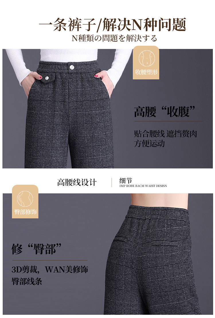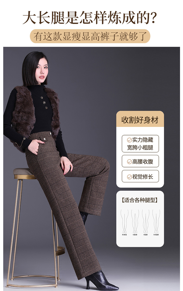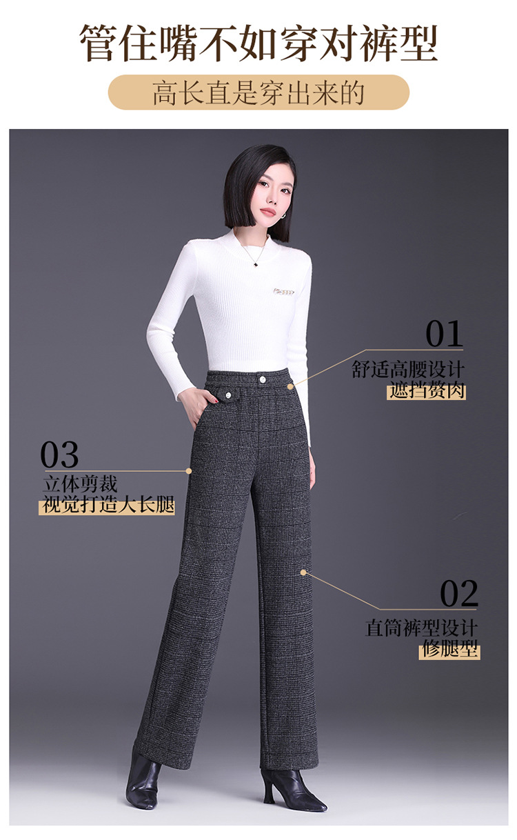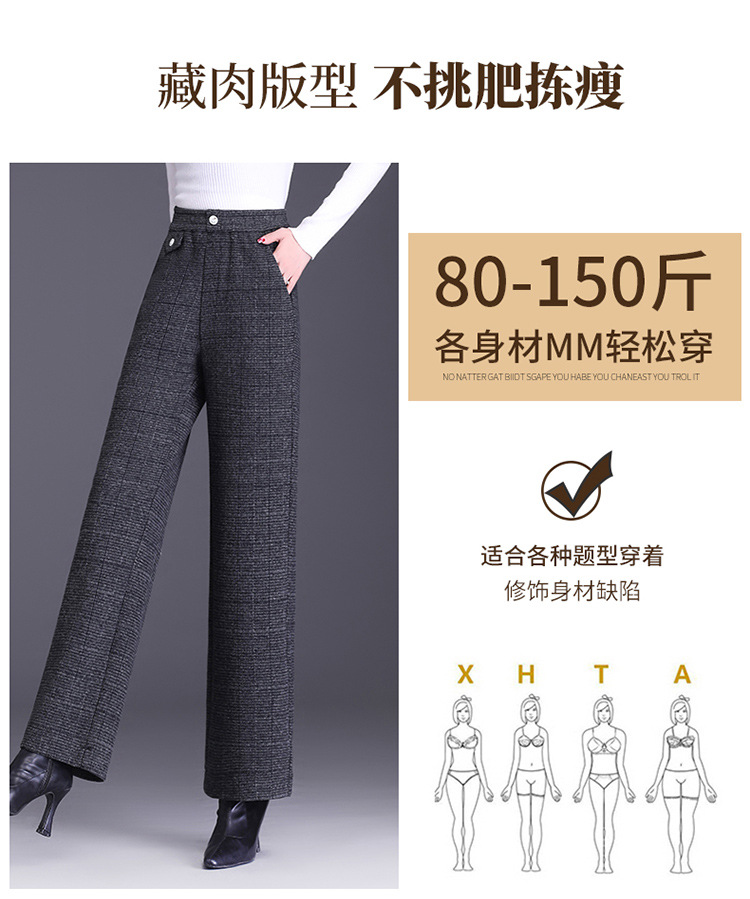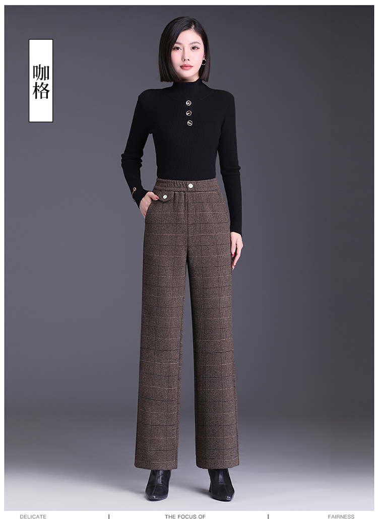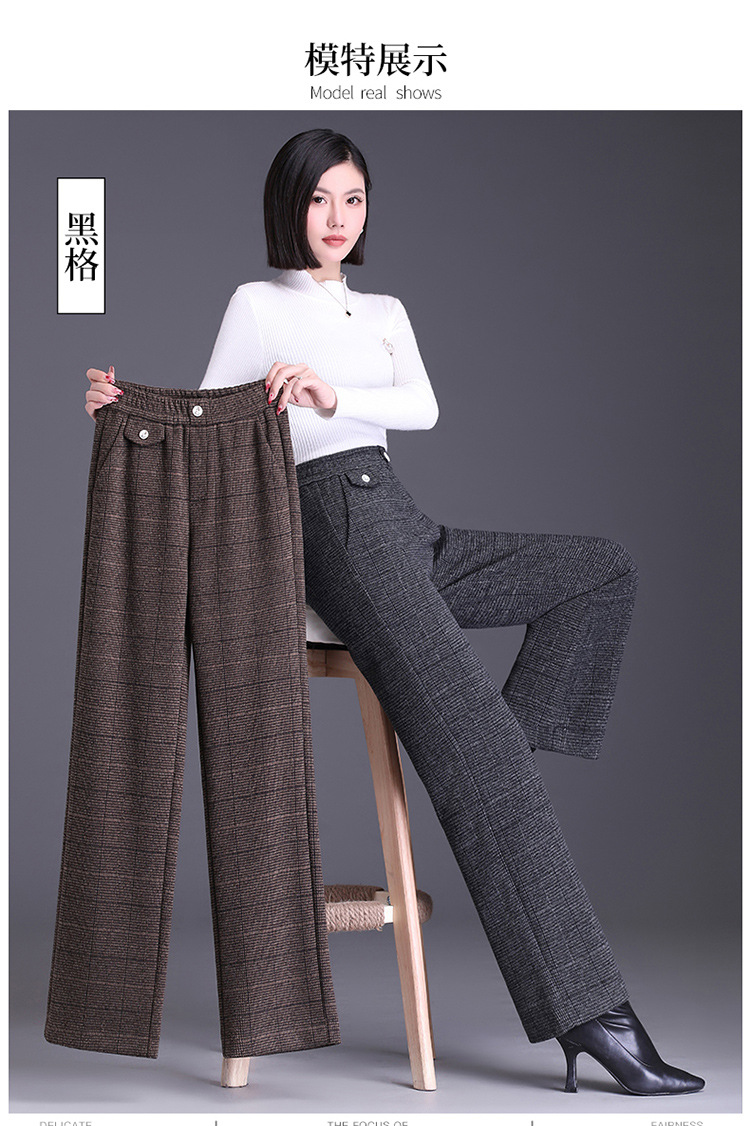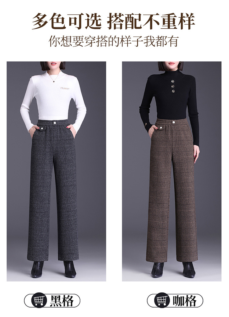 冬款长款格纹简约修身时尚加绒阔腿裤宽松休闲气质直筒裤MYX-FLS-HY8833-L