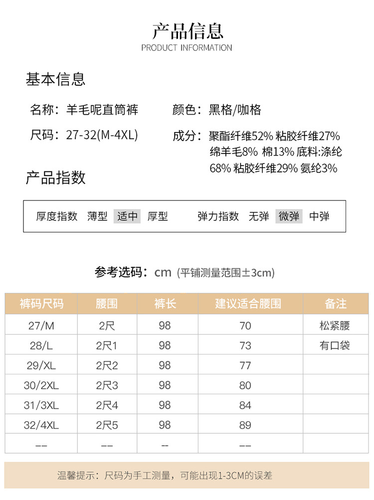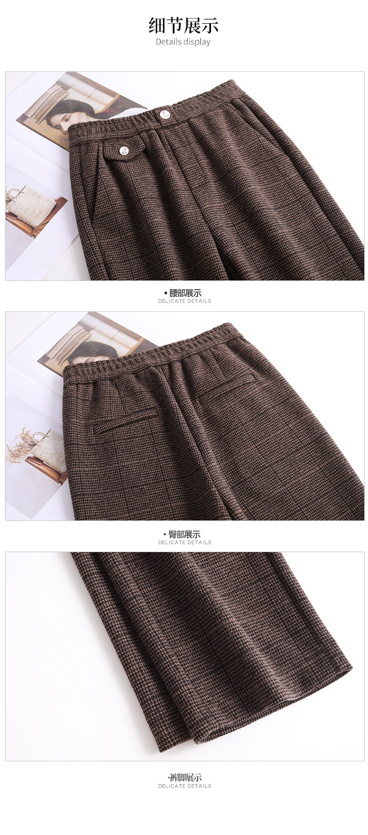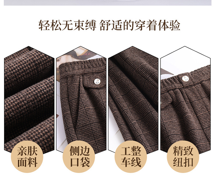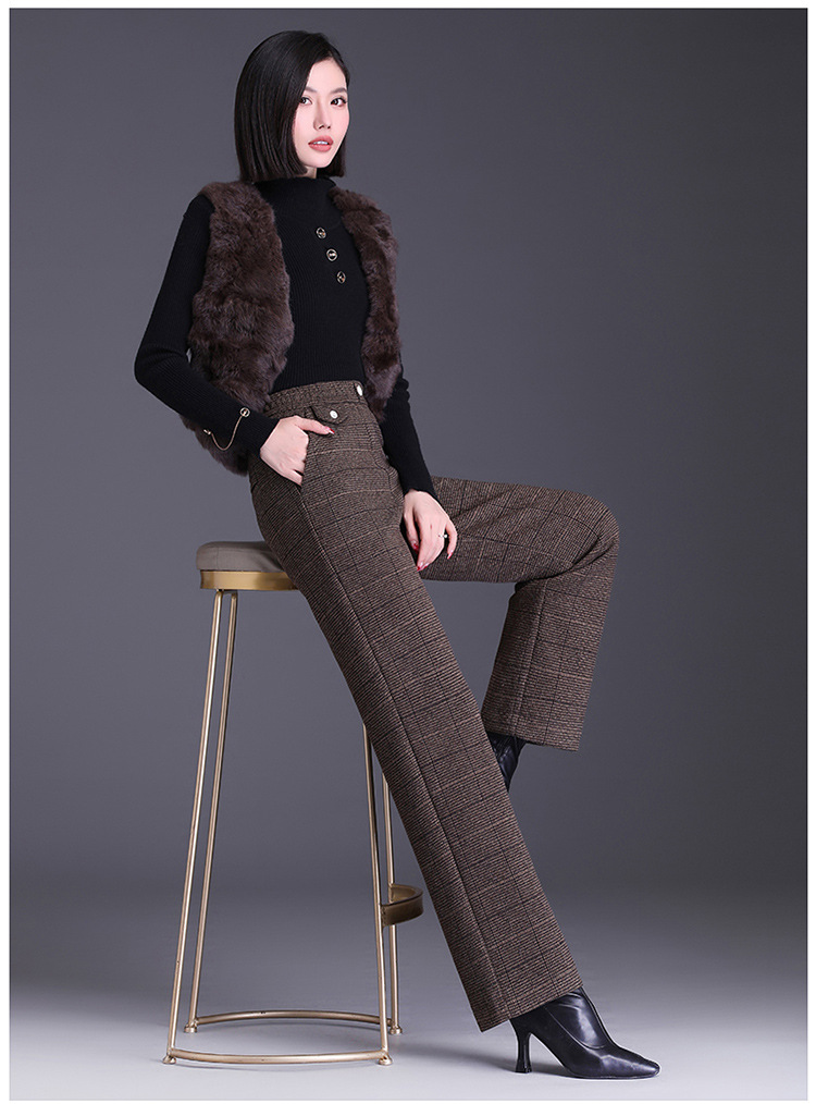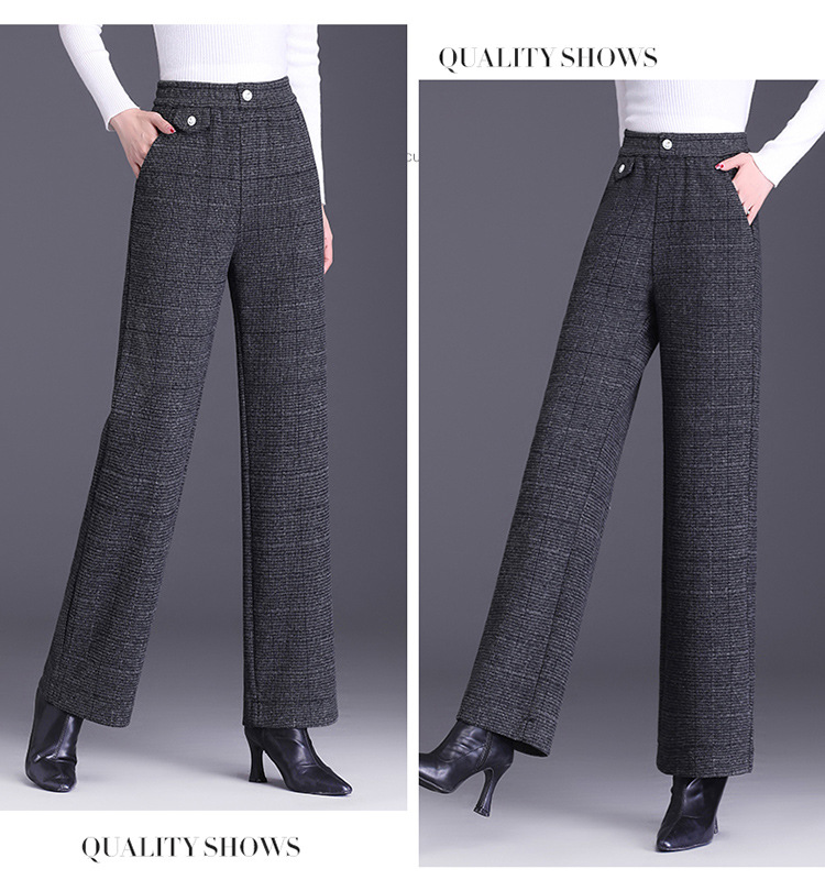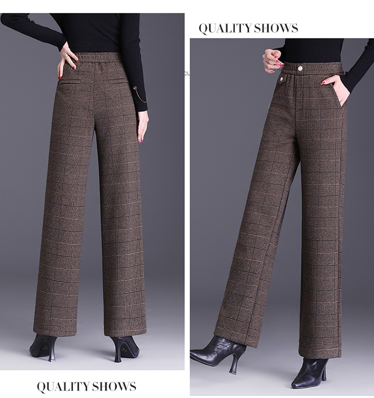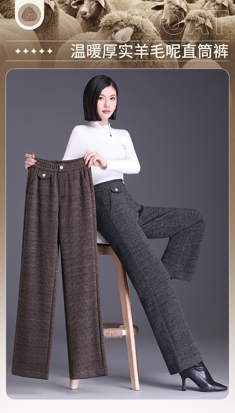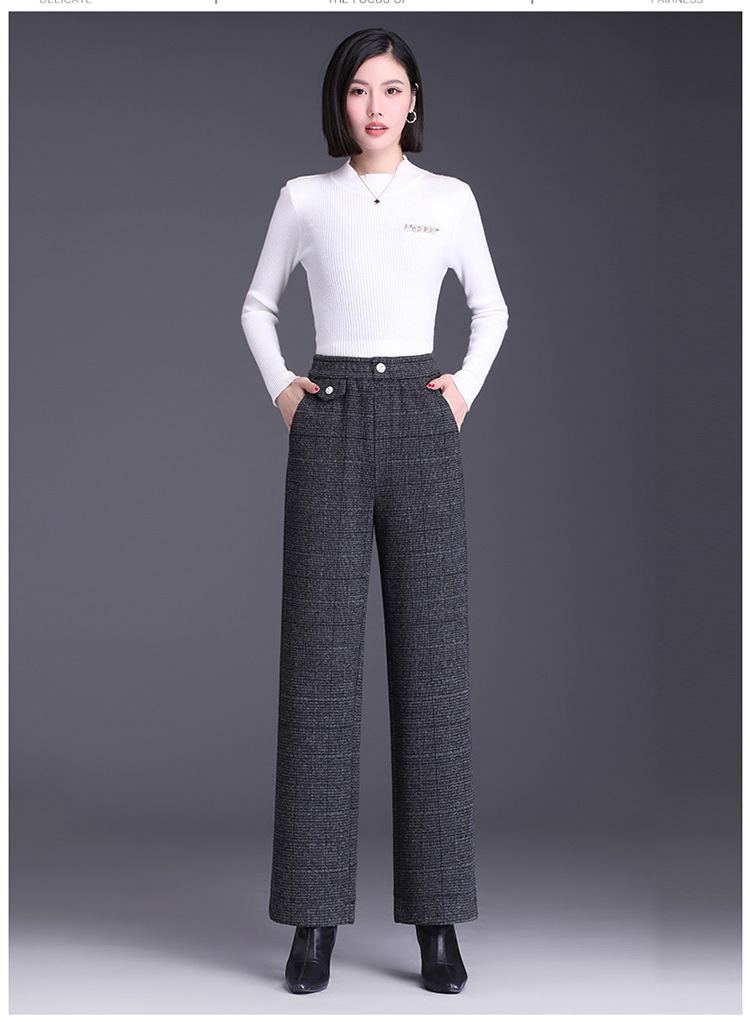 冬款长款格纹简约修身时尚加绒阔腿裤宽松休闲气质直筒裤MYX-FLS-HY8833-L