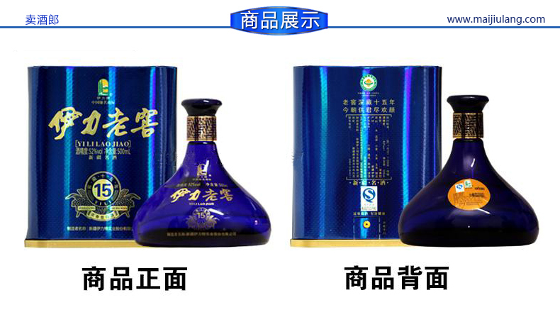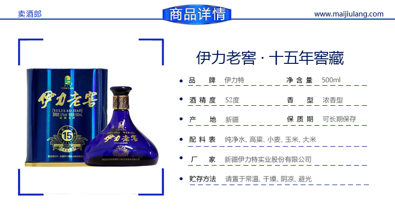 【整箱】伊力老窖15年窖藏(蓝瓶)浓香型白酒 500ml*6瓶 52度