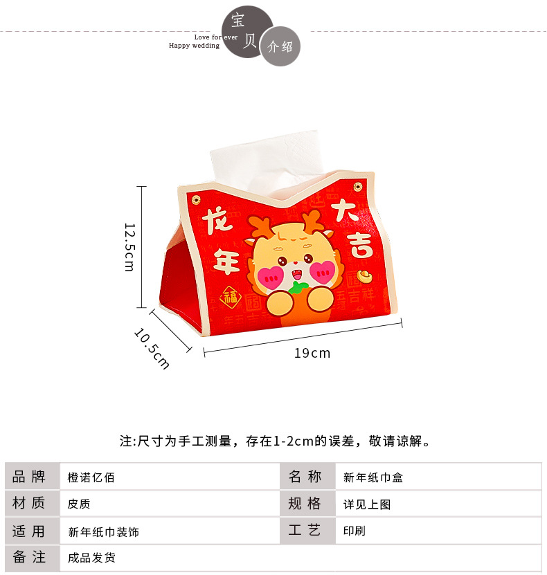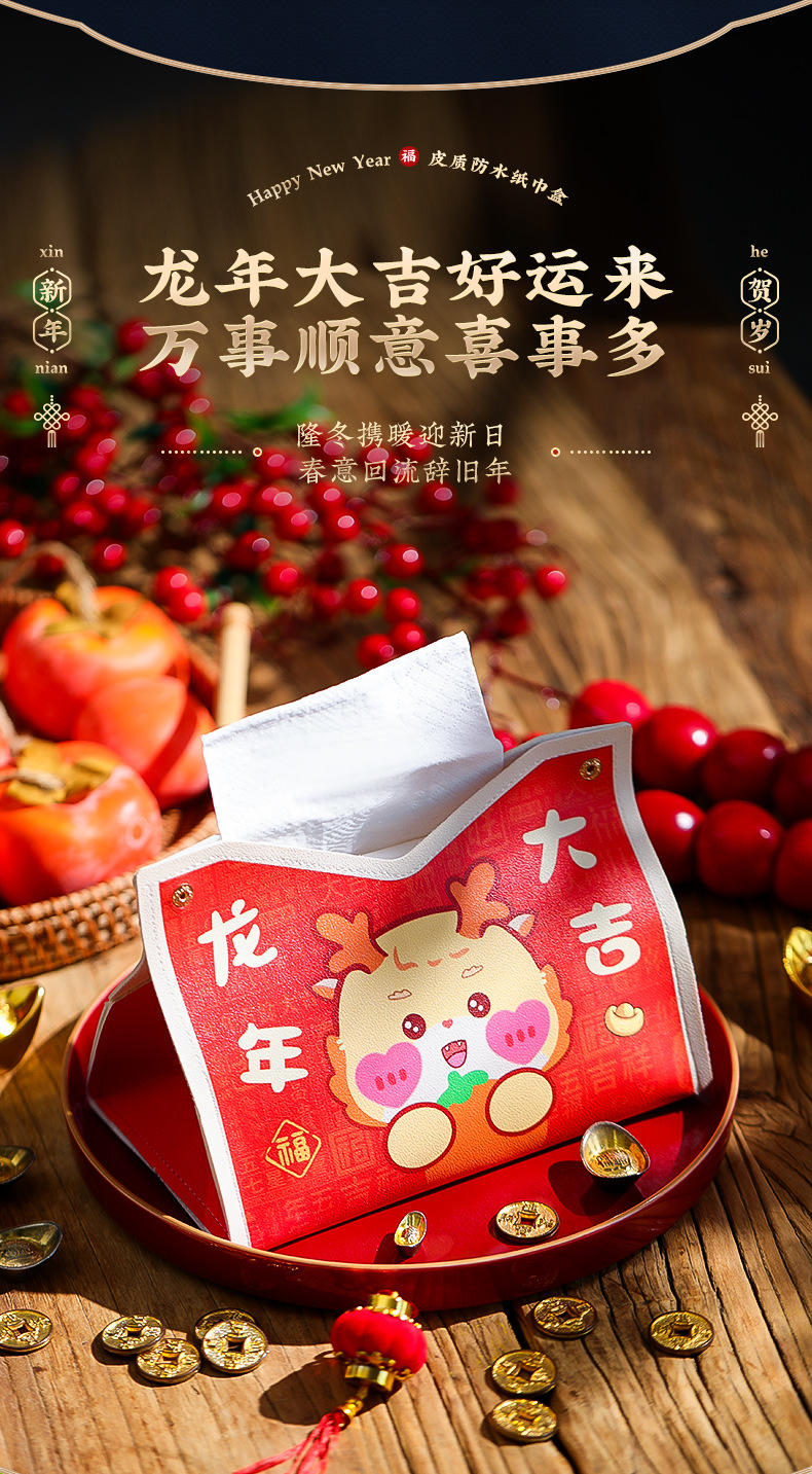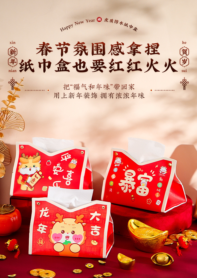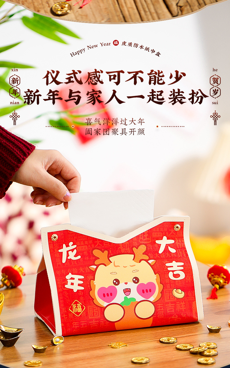 龙年2025新年【创意卡通纸巾盒 过年春节】客厅桌面 场景装饰布置 抽纸袋