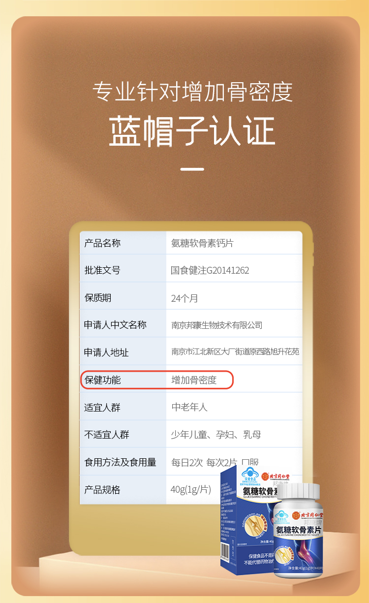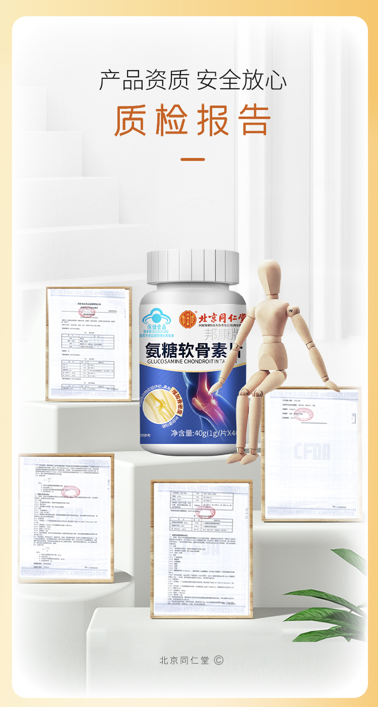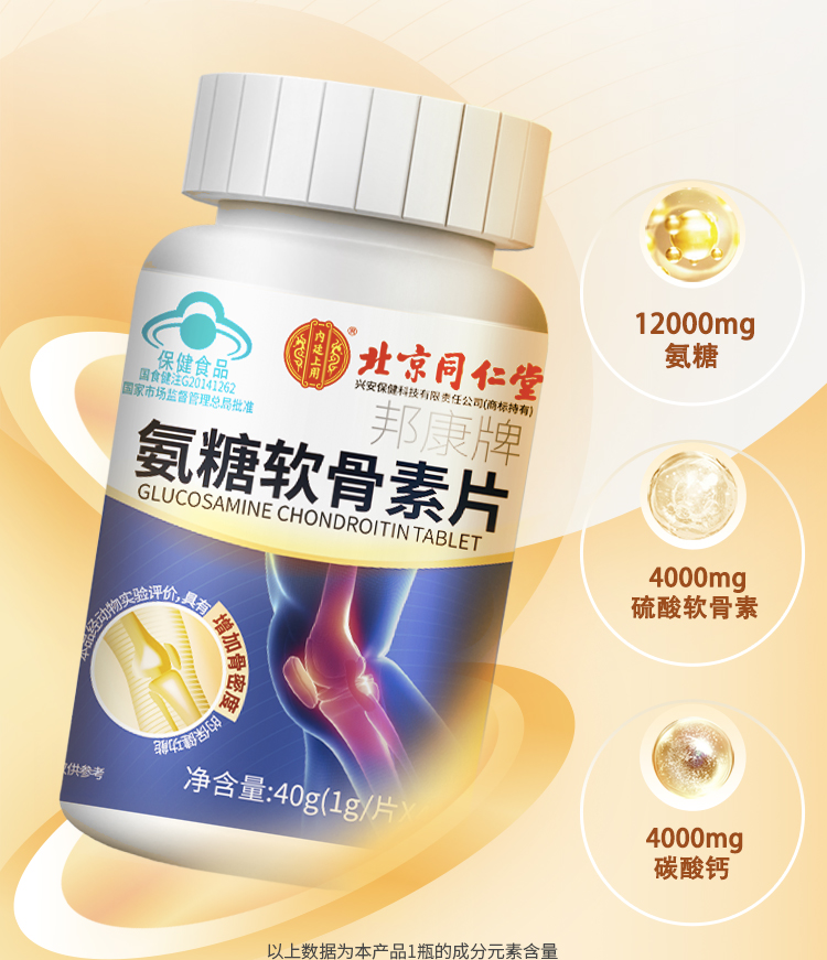 【补钙护关节】北京同仁堂氨糖软骨素片 蓝帽认证 增加骨密度 重塑关节健康 40片/瓶