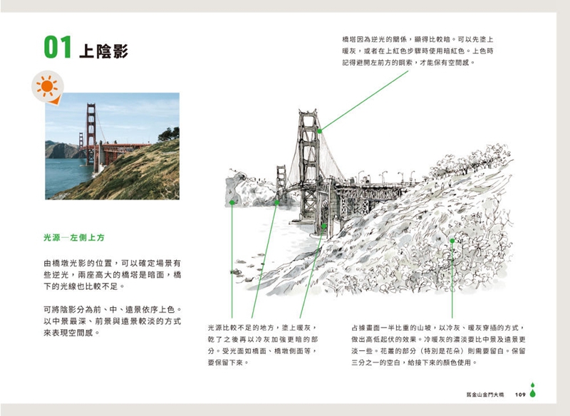 ‧跟隨書中教學掌握上色訣竅!快速完成一幅風景作品。
