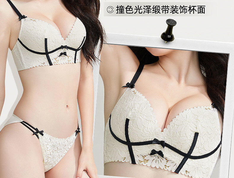 好奇蜜斯蕾丝内衣女聚拢小胸显大法式性感新款文胸罩套装 黛莎