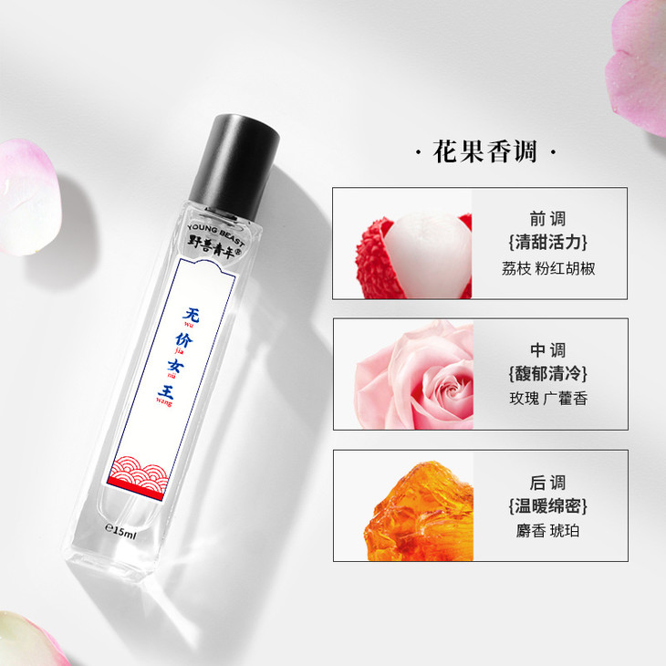 ⑥ 无"价"女"王(花果香调·) 前调 {清甜活力} 荔枝粉红胡椒 中调 {馥郁清冷}玫瑰广藿香 后调{温暖绵密}麝香琥珀