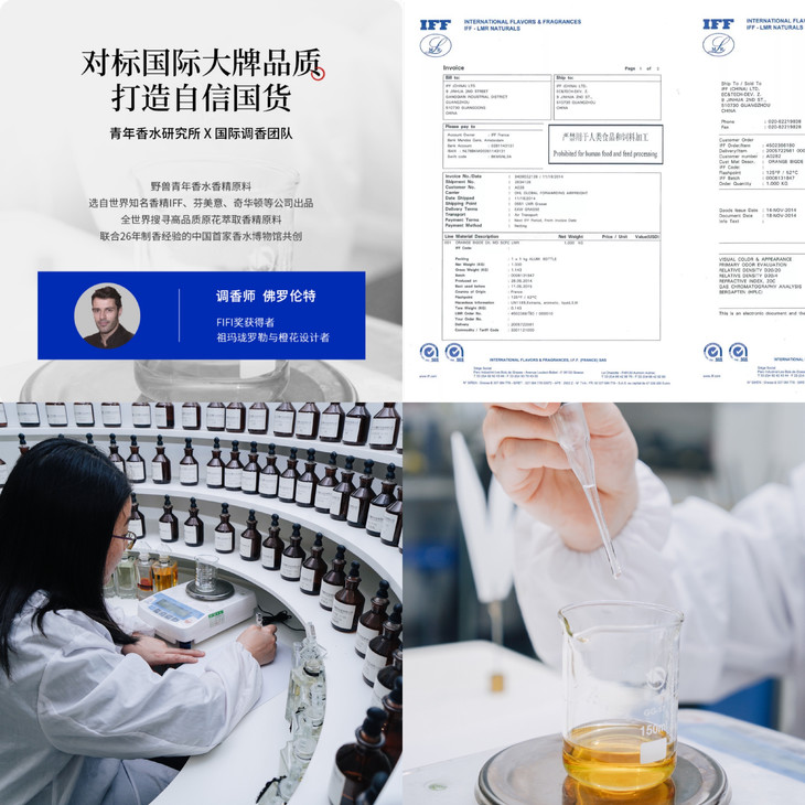 野兽青年香水香精原料全是用的法国进口香精邀请国际一流调香师共同调制符合国人的东方香气,携手中国首家香水博物馆团队共同打造香水产品