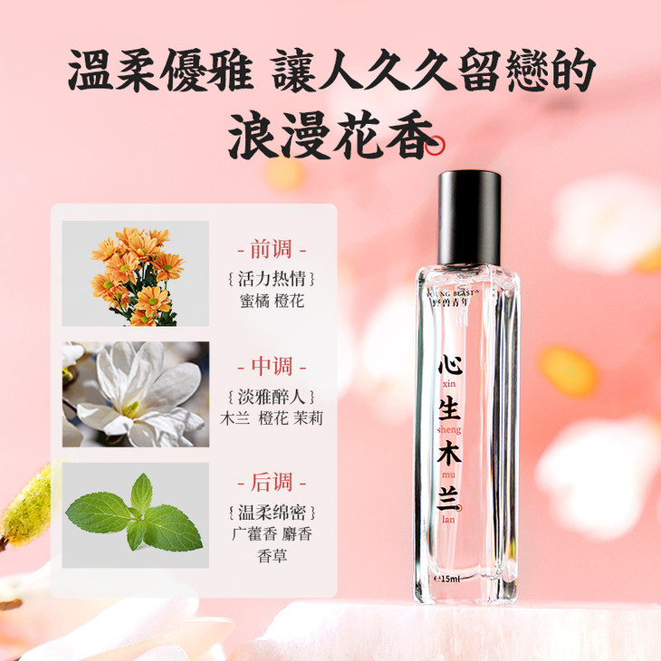 ③ 心生木兰香水(温柔木兰香) 花香调 前调:蜜橘 橙花 中调:木兰 橙花 茉莉 后调:广藿香 麝香 香草