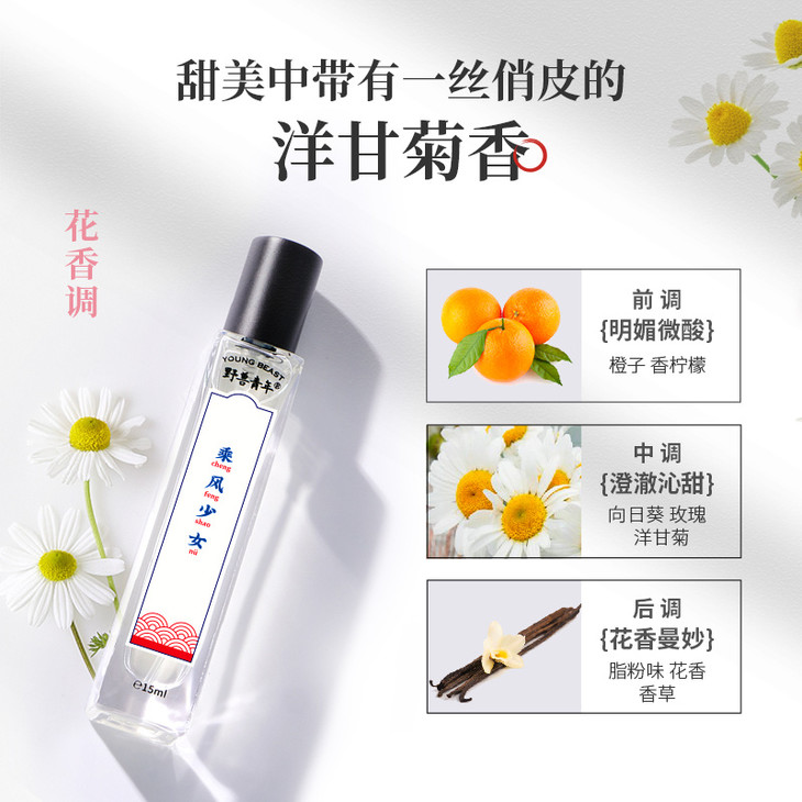 ⑤ 乘风少女香水(宝宝浴后奶香) 东方馥奇调 前调:粉红胡椒 橙花 梨 中调:咖啡 茉莉 杏仁 甘草 后调:香草 广藿香 雪松 开司米木