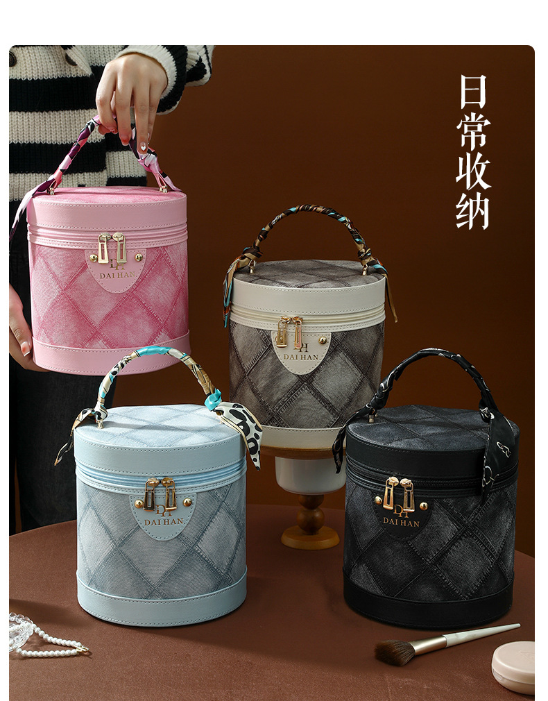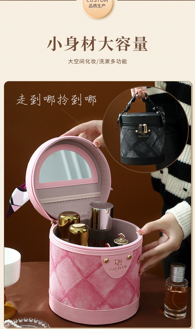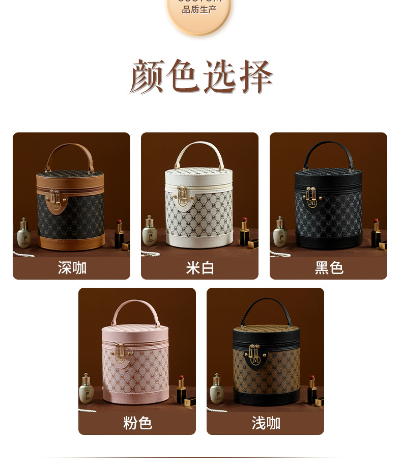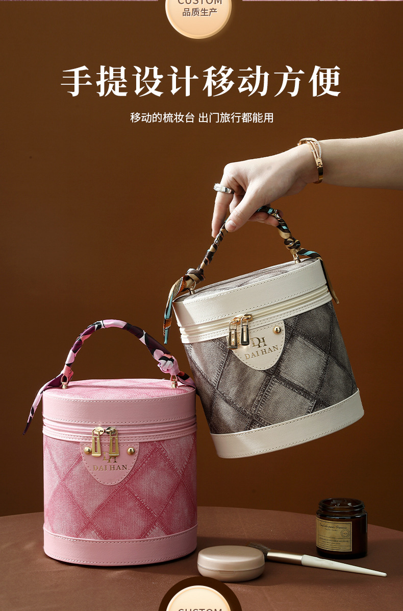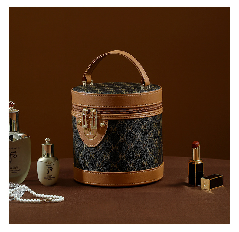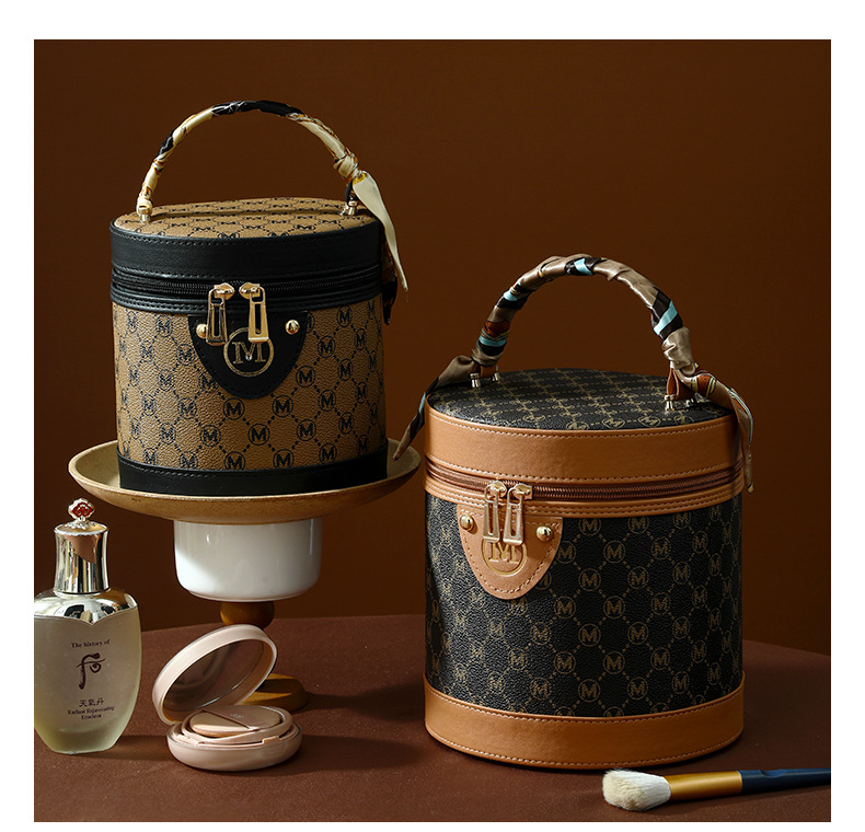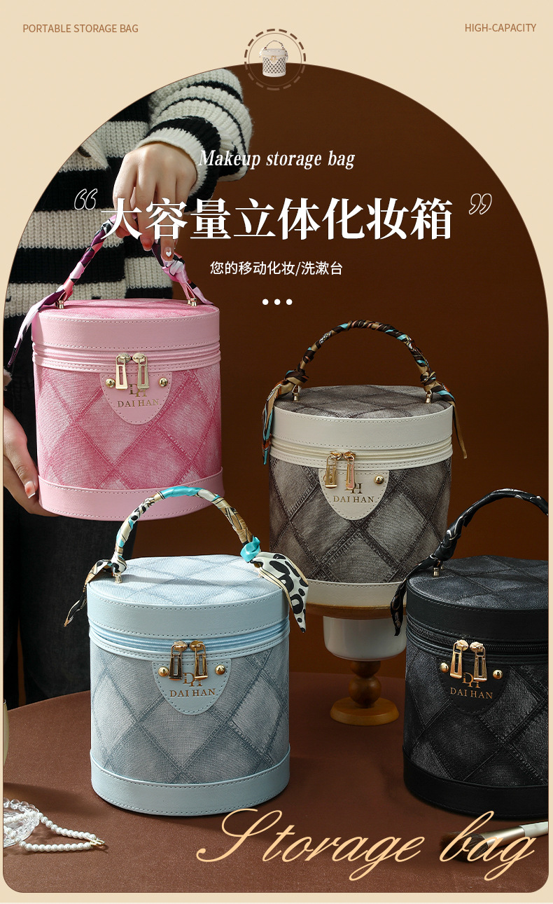 【您的移动化妆/洗漱台】新品美拉德色水桶包化妆箱大容量伴手礼化妆包多功能防水手提。ry
