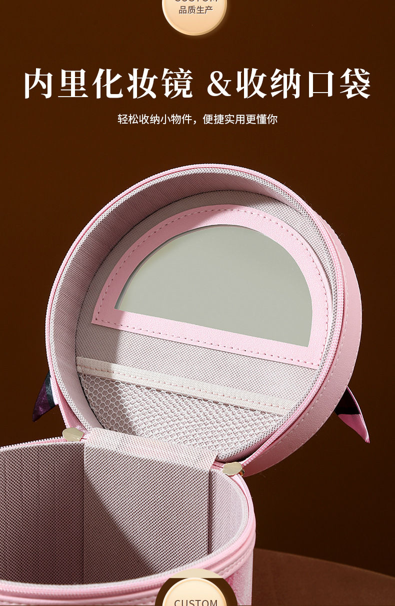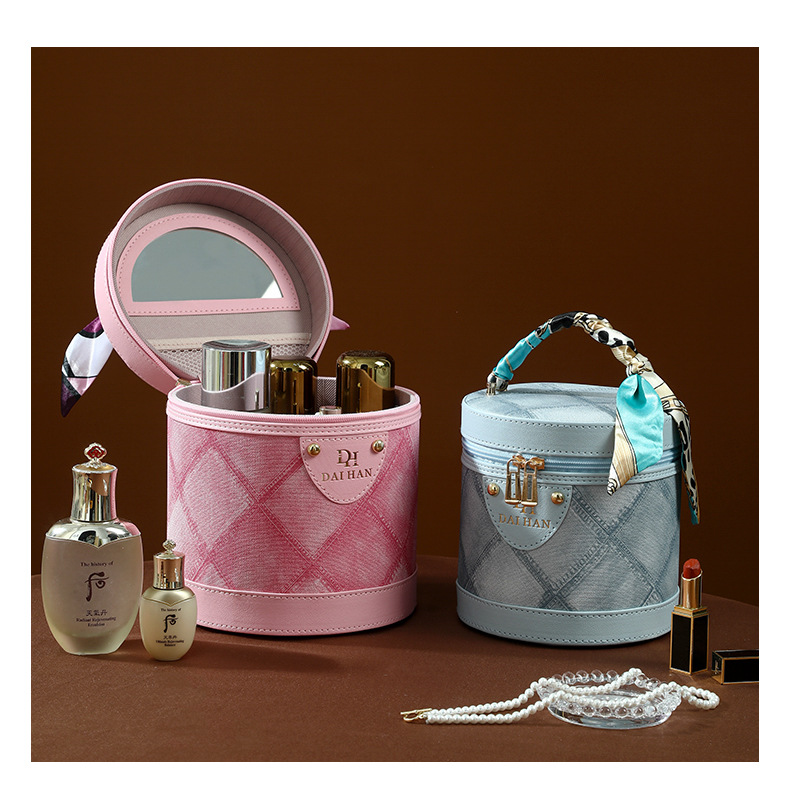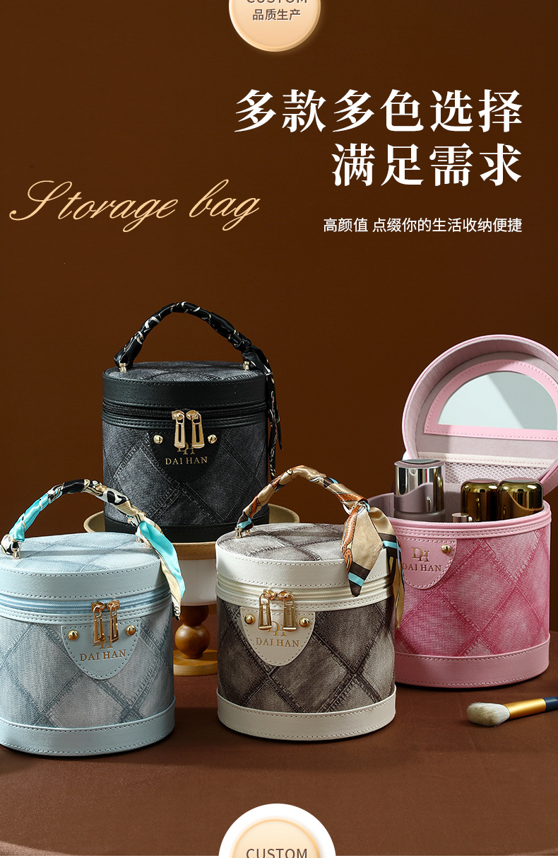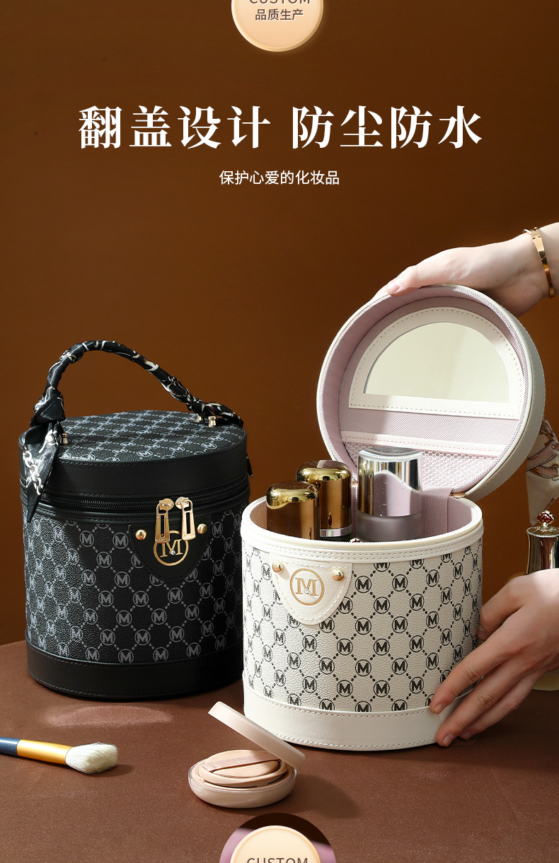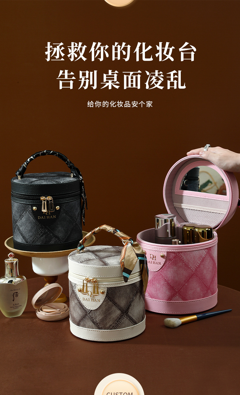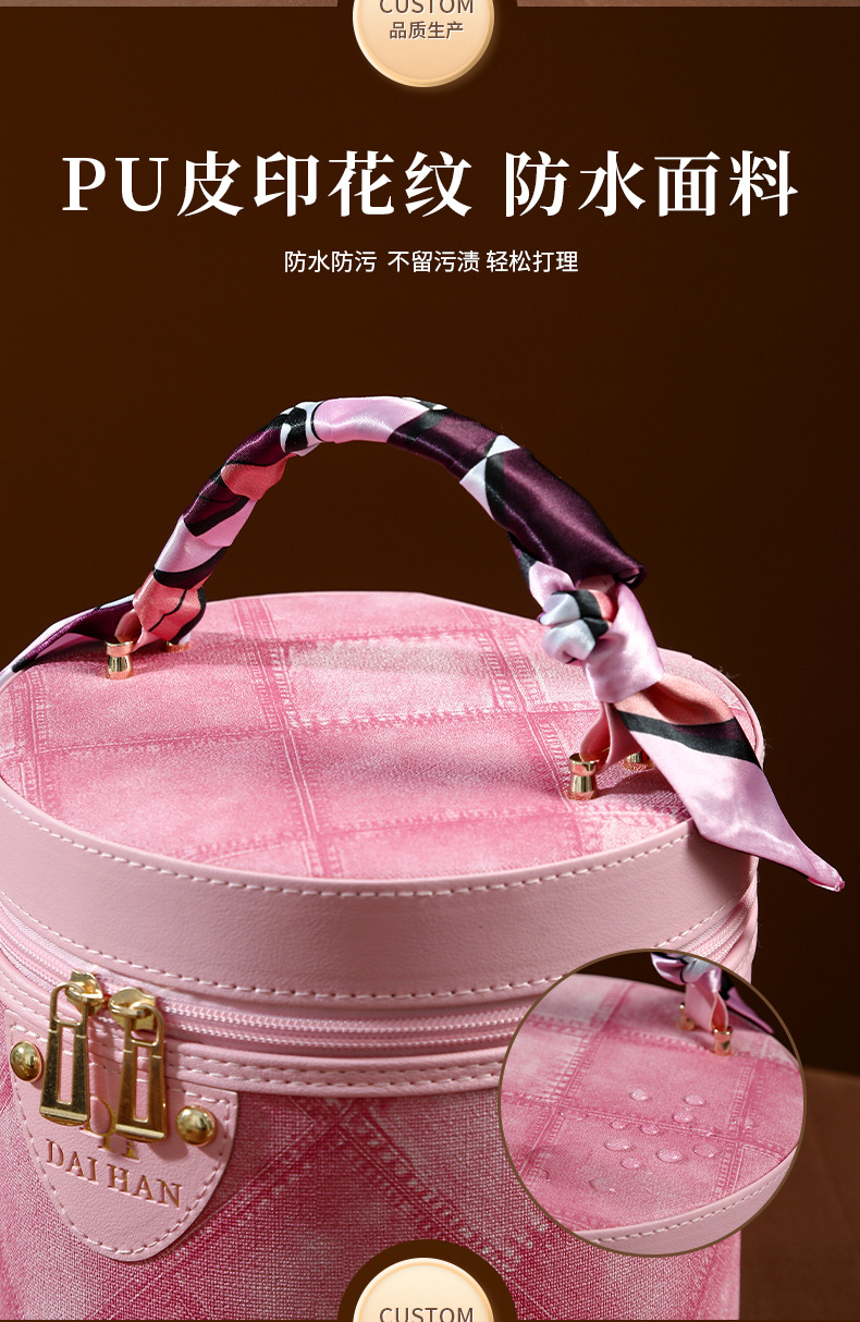 【您的移动化妆/洗漱台】新品美拉德色水桶包化妆箱大容量伴手礼化妆包多功能防水手提。ry