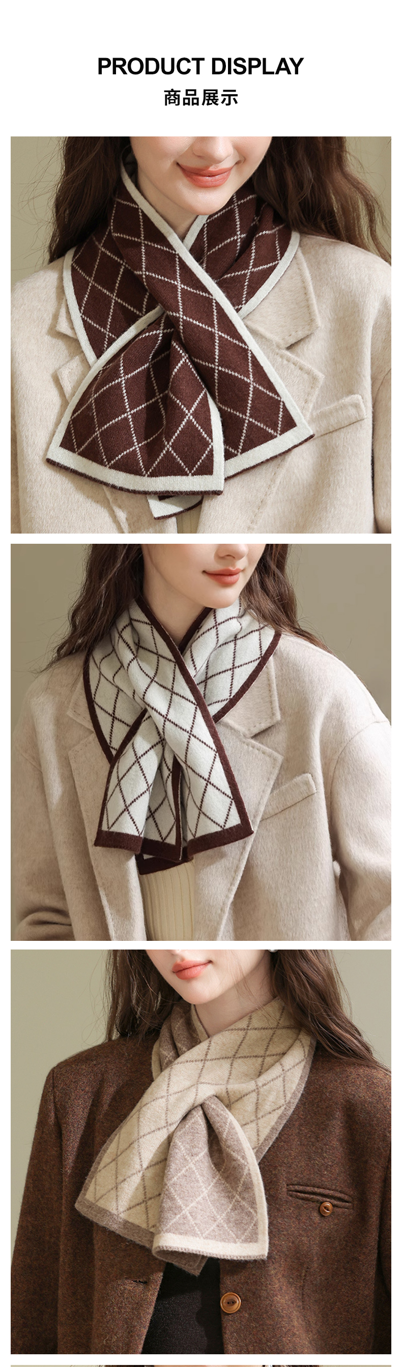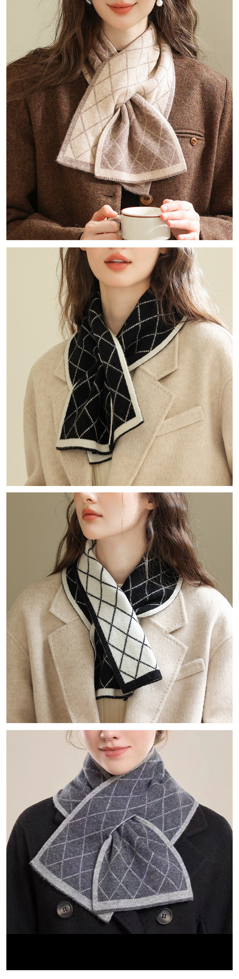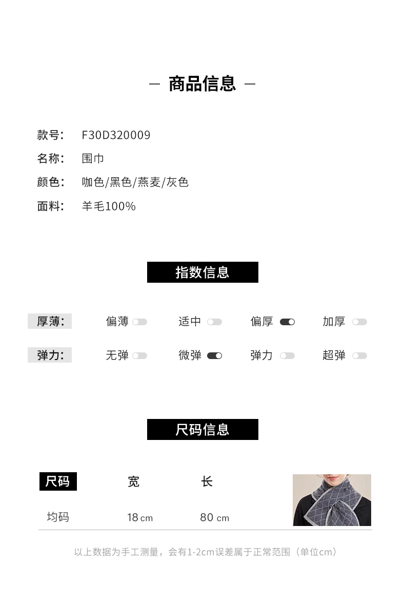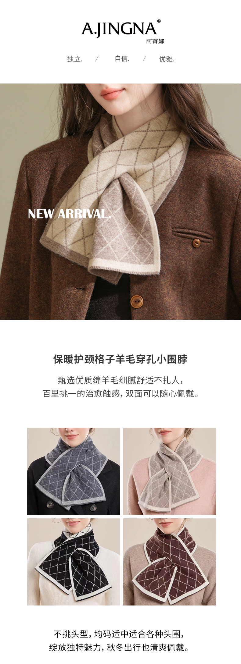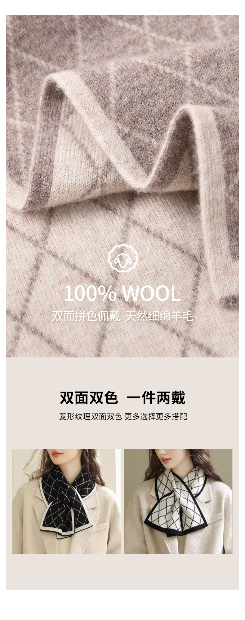 【100%羊毛】阿菁娜保暖护颈椎菱形格子羊毛穿孔小围脖F30D320009