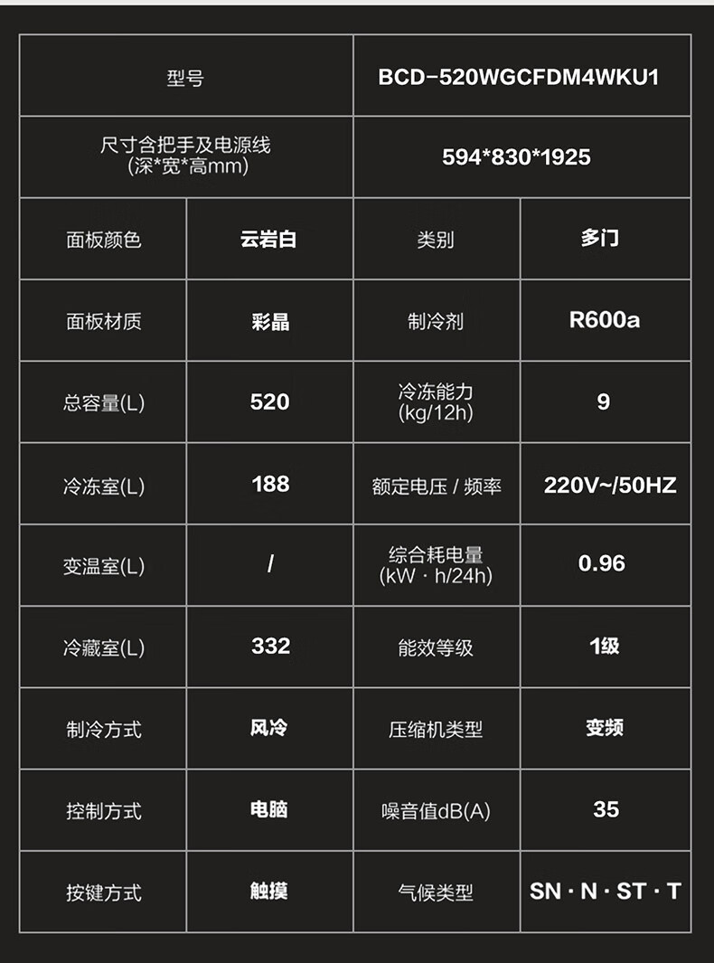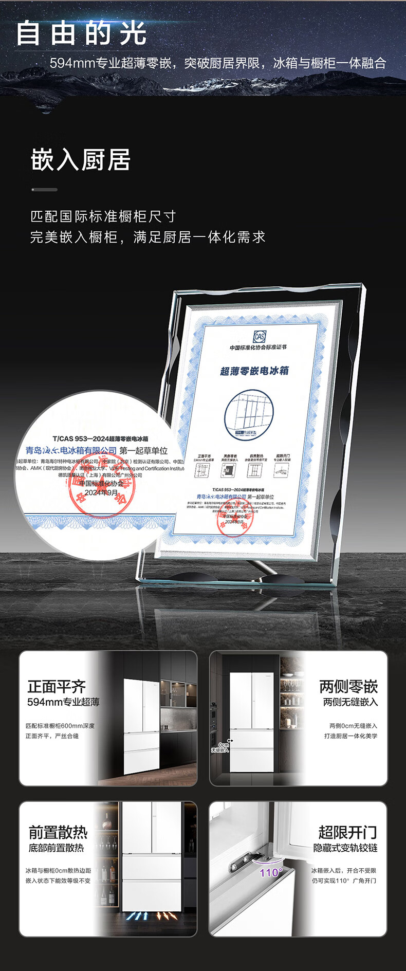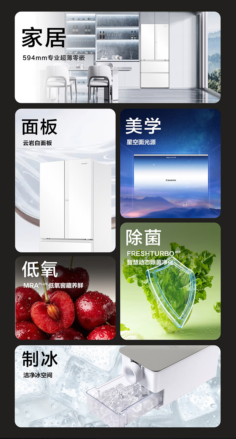 卡萨帝(Casarte)揽光冰箱520升594mm超薄零嵌入式双系统法式多门一级能效冰箱BCD-520WGCFDM4WKU1