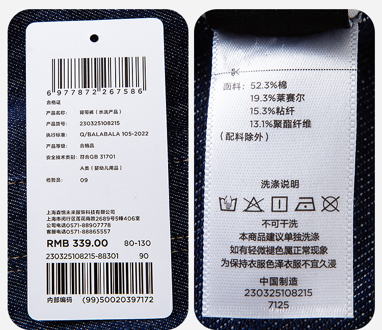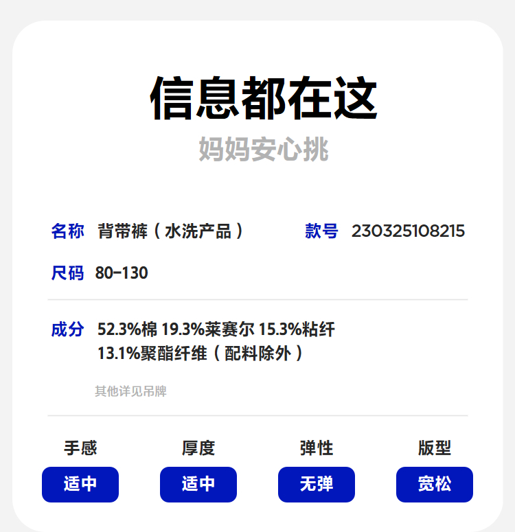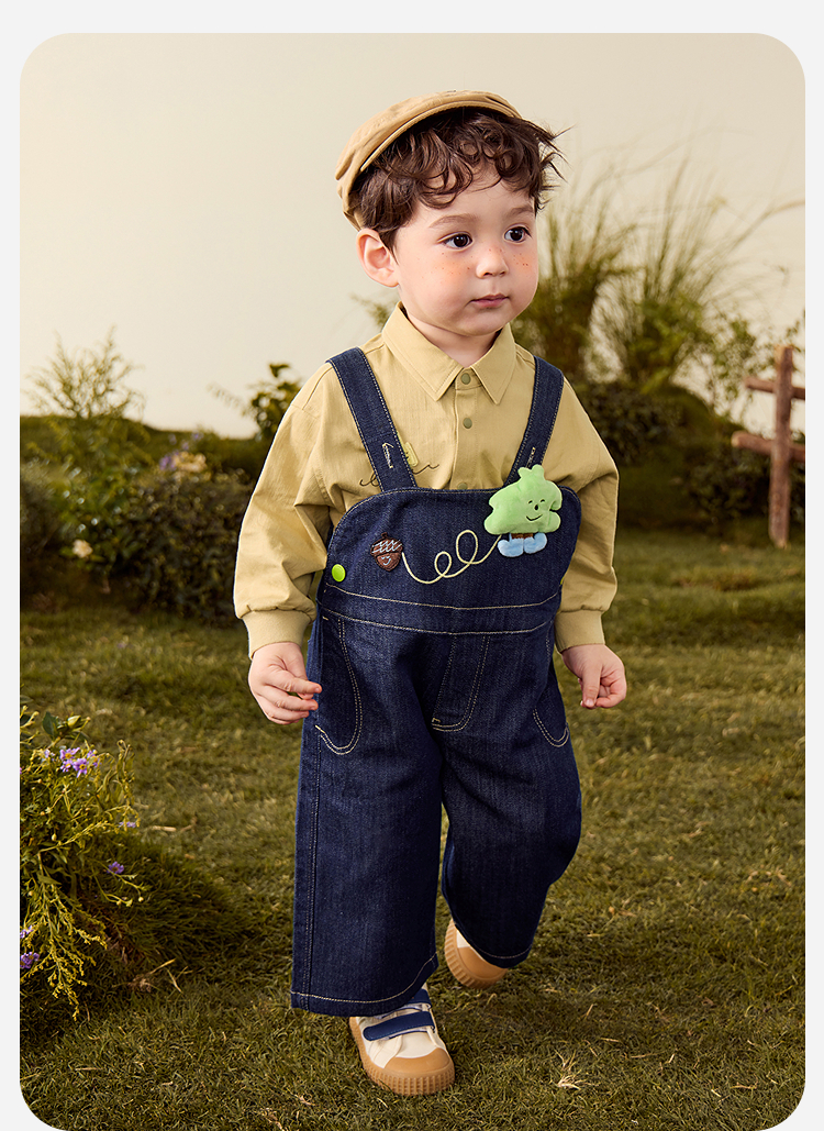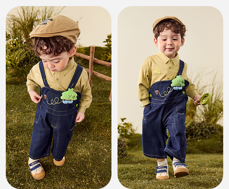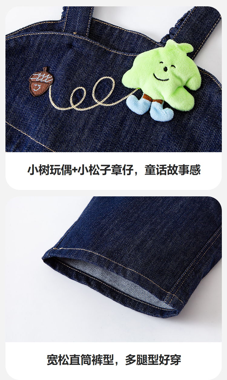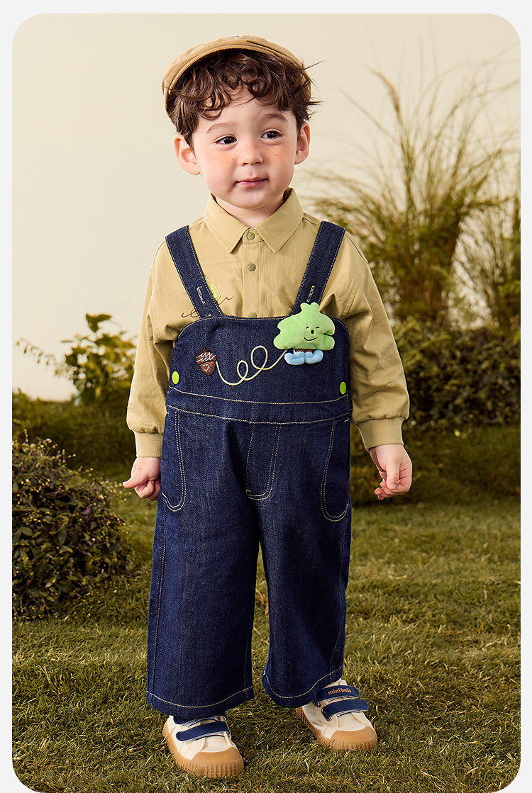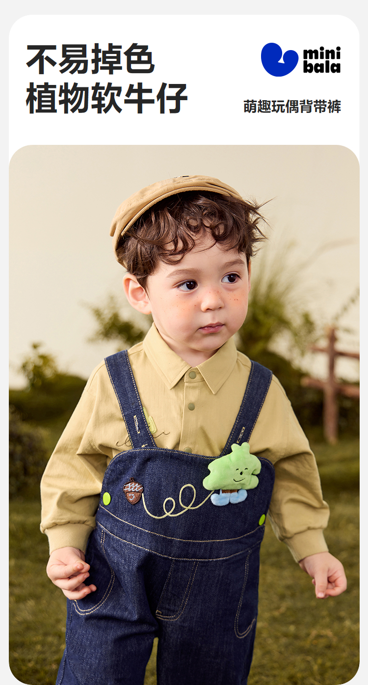 【软牛仔】迷你巴拉男女童裤子不易褪色宽松直筒裤宝宝背带裤