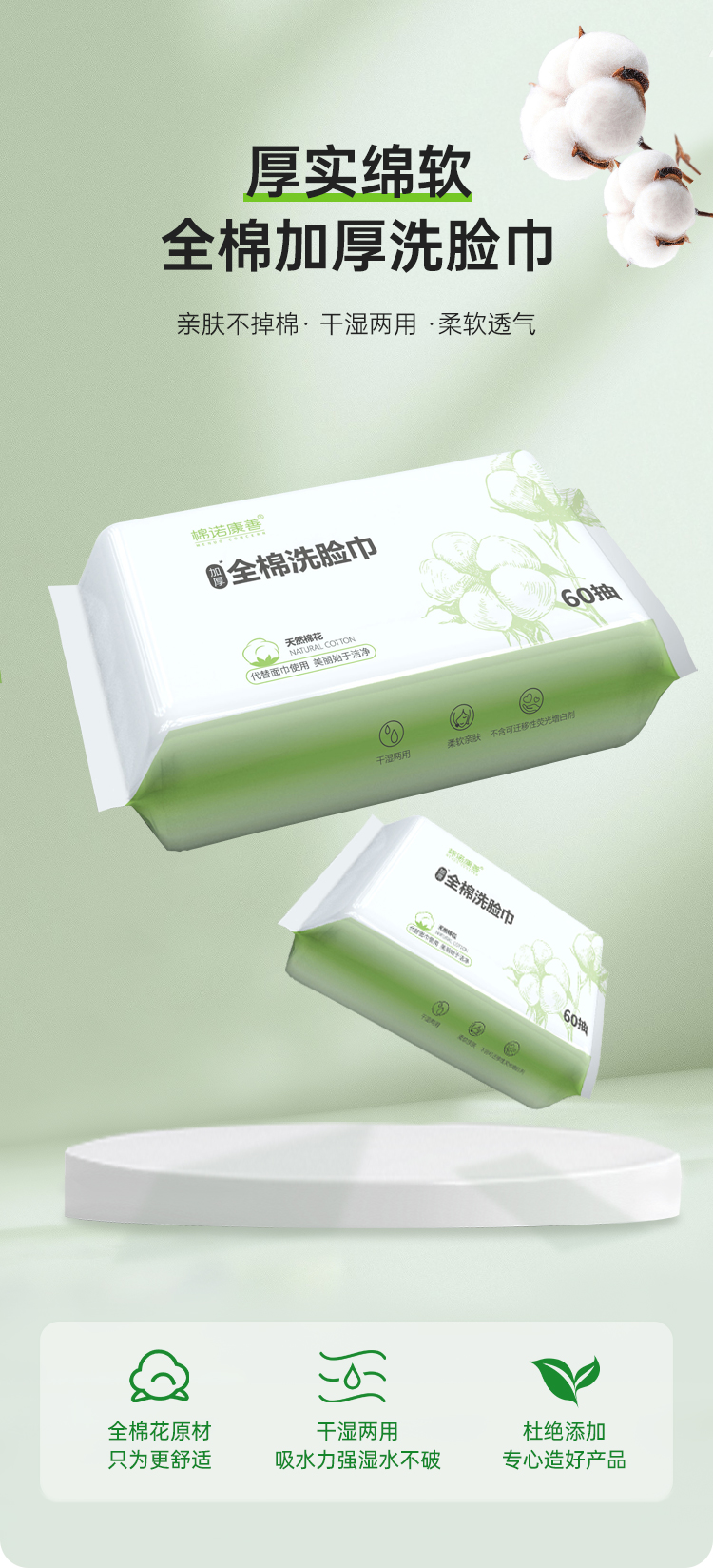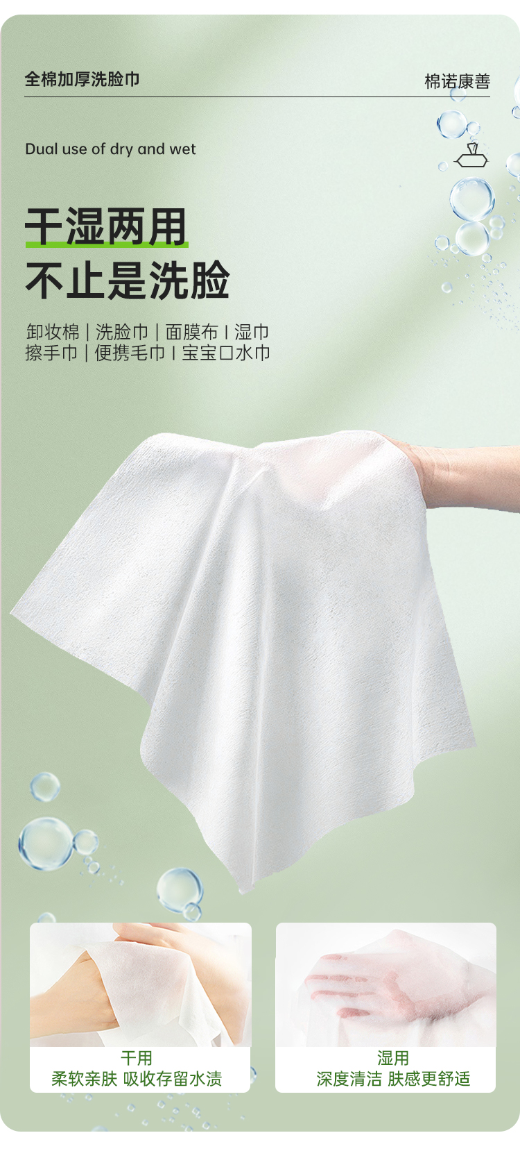 【到手5大包=300片】一次性加大加厚洗脸巾100%全棉 进口棉 亲肤擦脸洁面棉柔巾干湿两用