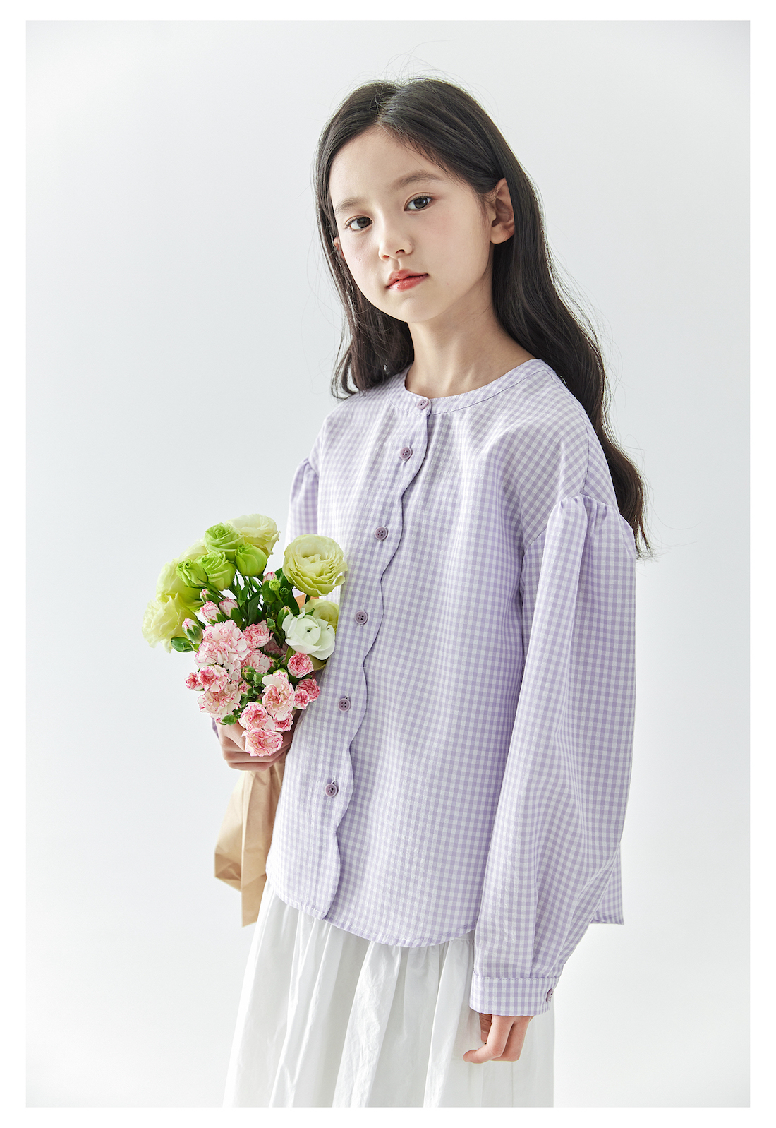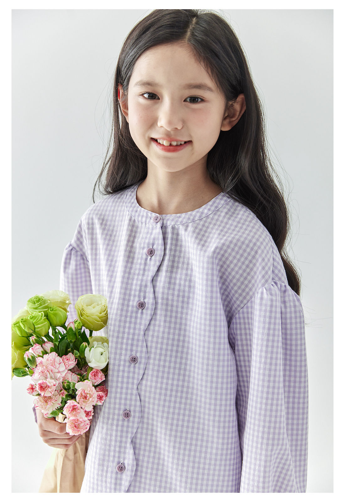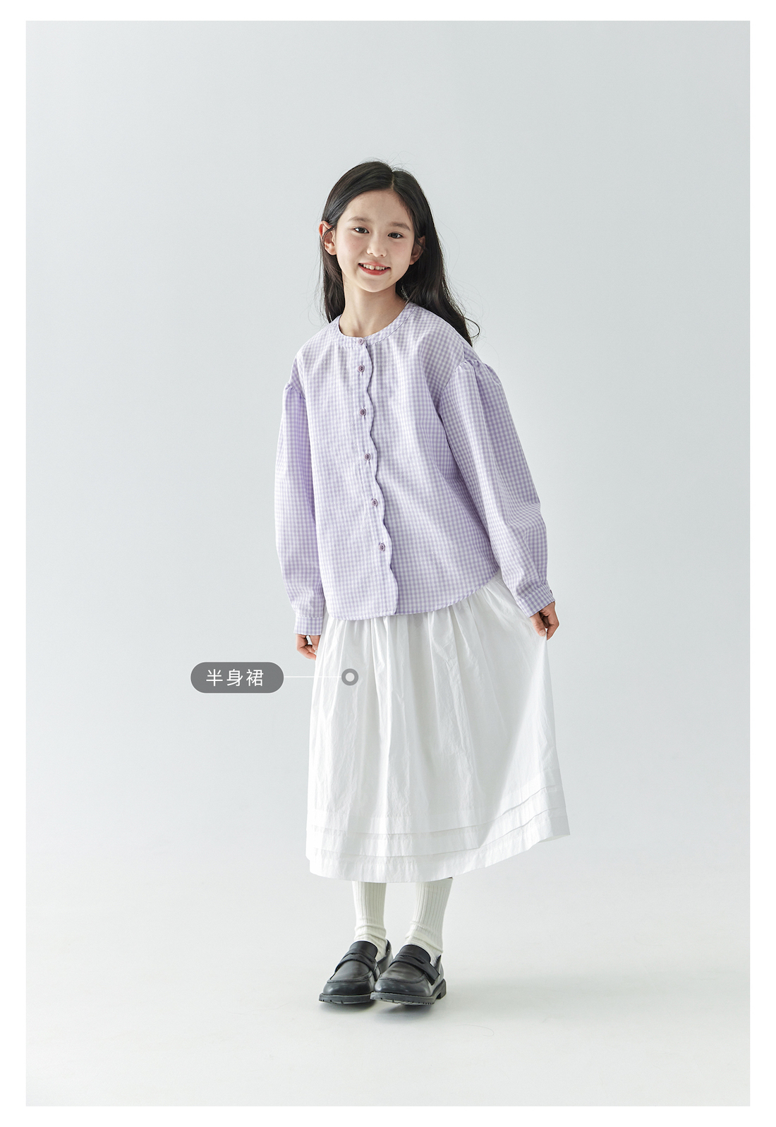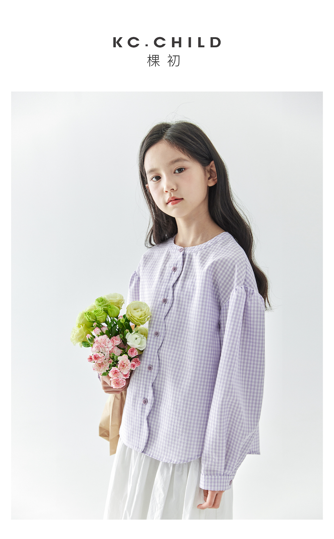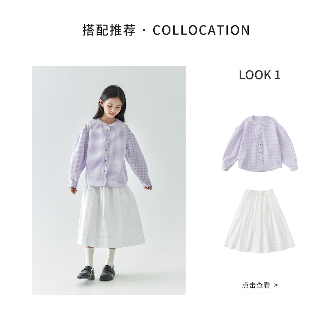 (合作款)棵初2025年春季新款童装紫色格子长袖衬衫