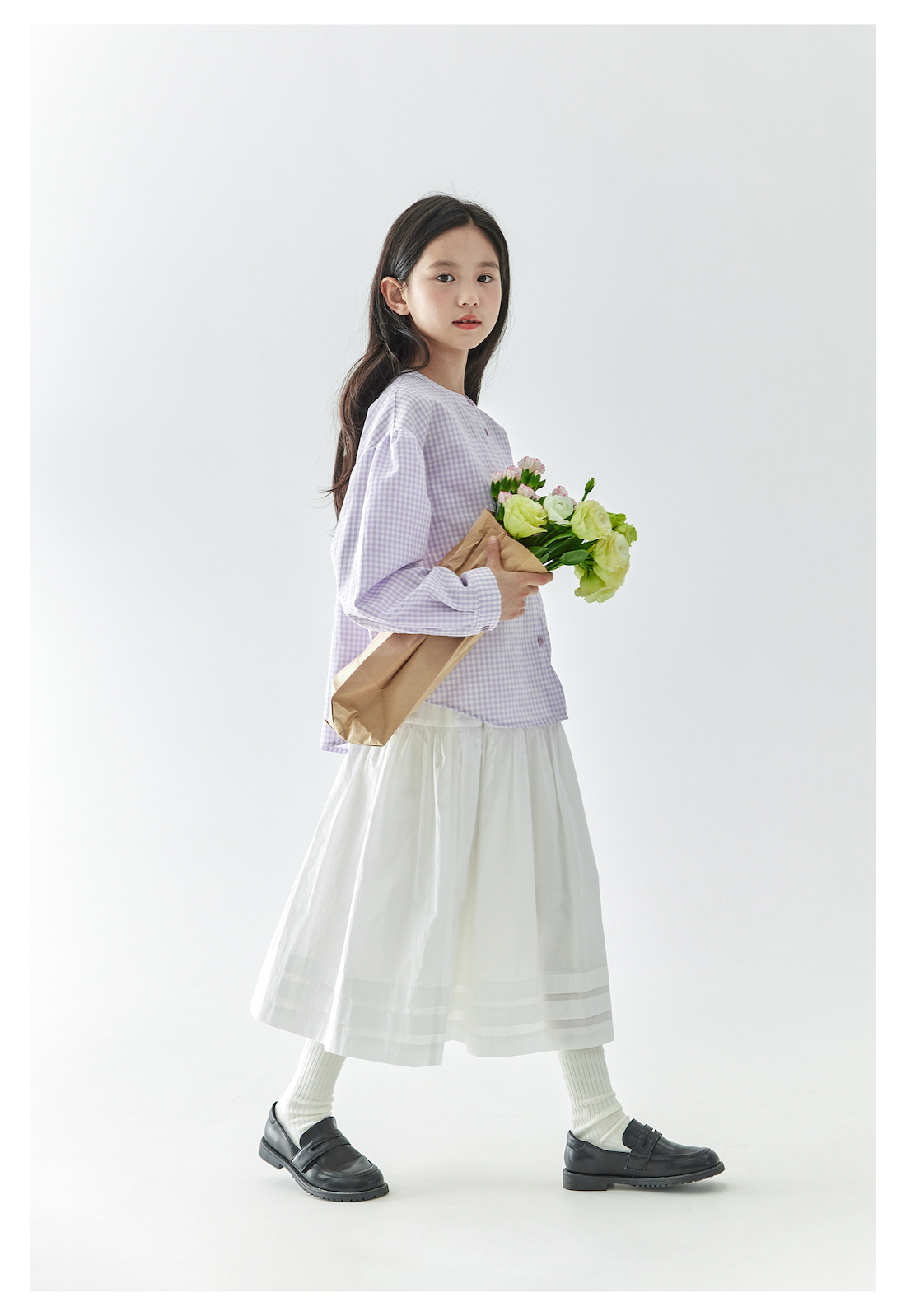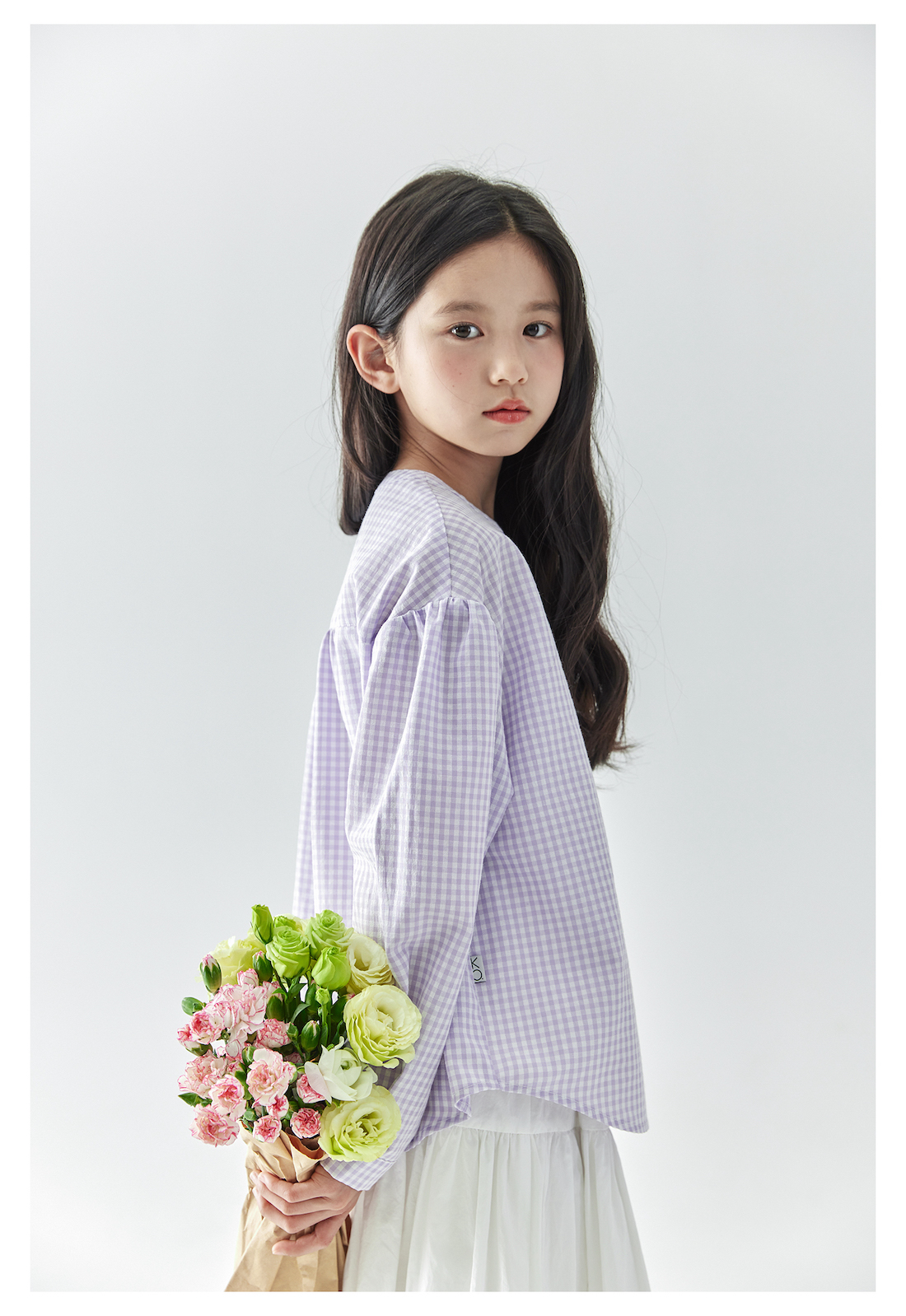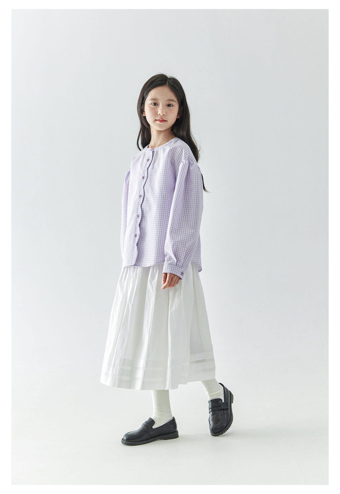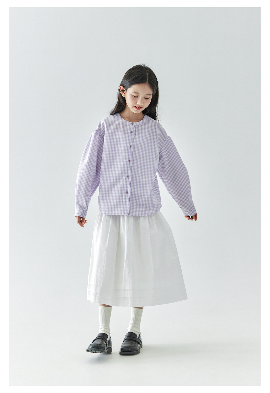 (合作款)棵初2025年春季新款童装紫色格子长袖衬衫