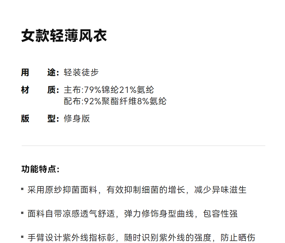 KAILAS凯乐石 女款轻薄风衣 KG2526211【Z】