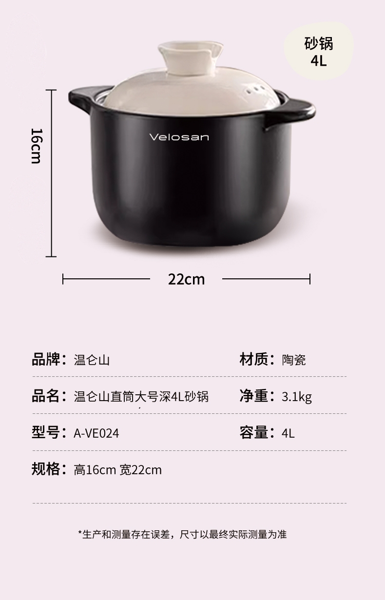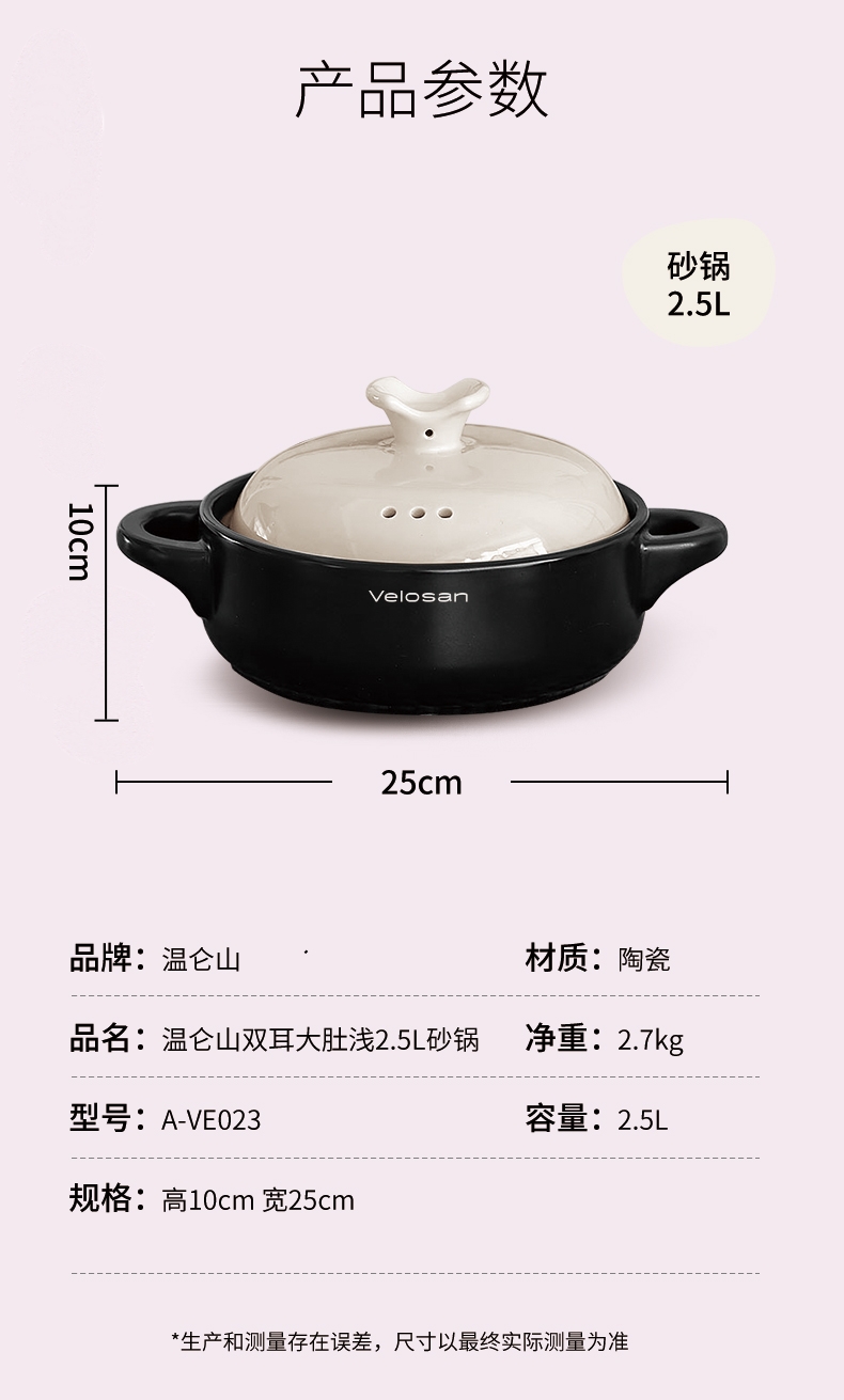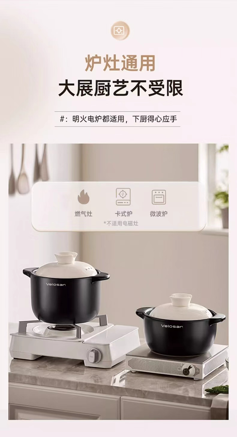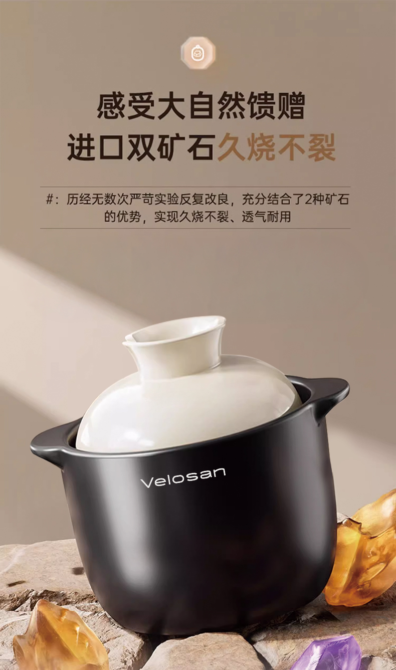 Velosan温仑山 双耳大肚砂锅 2.5L/4L 炖锅煲汤锅