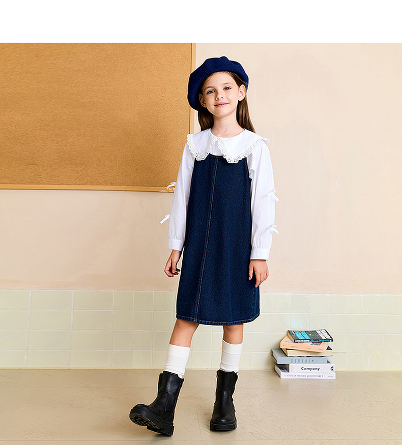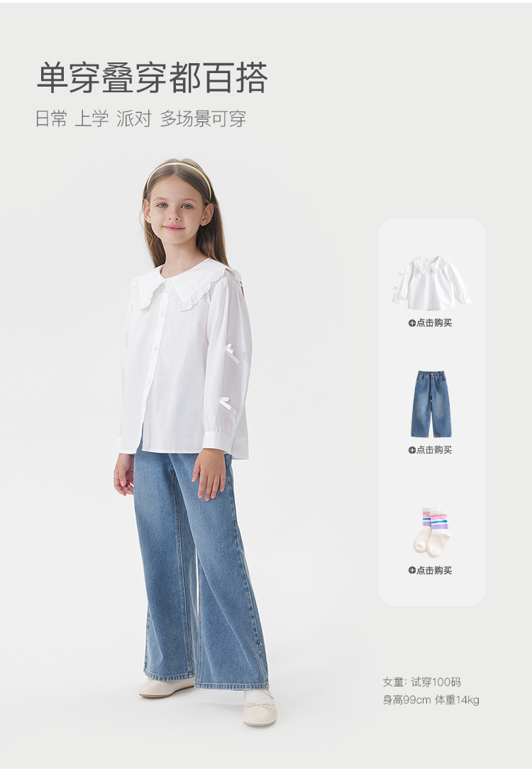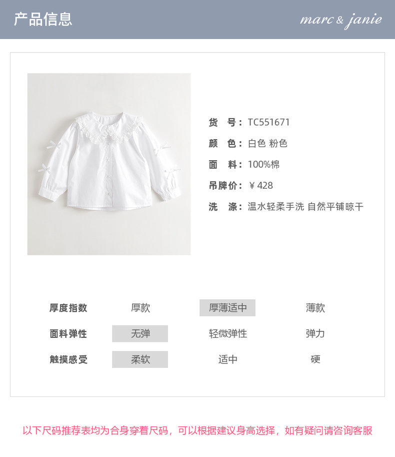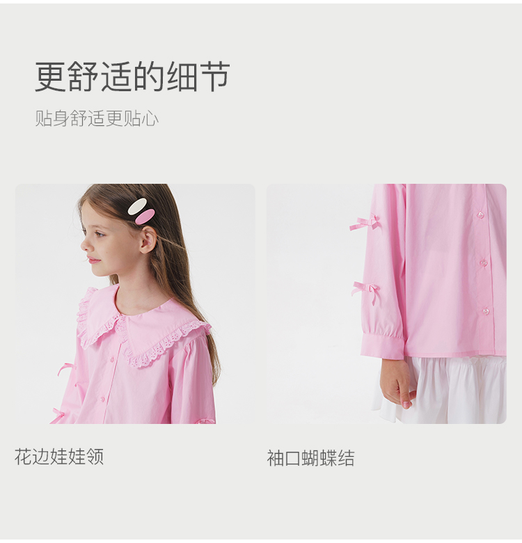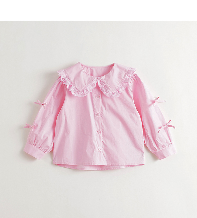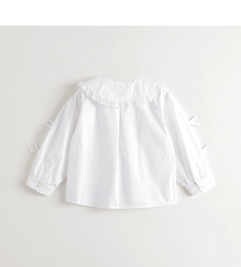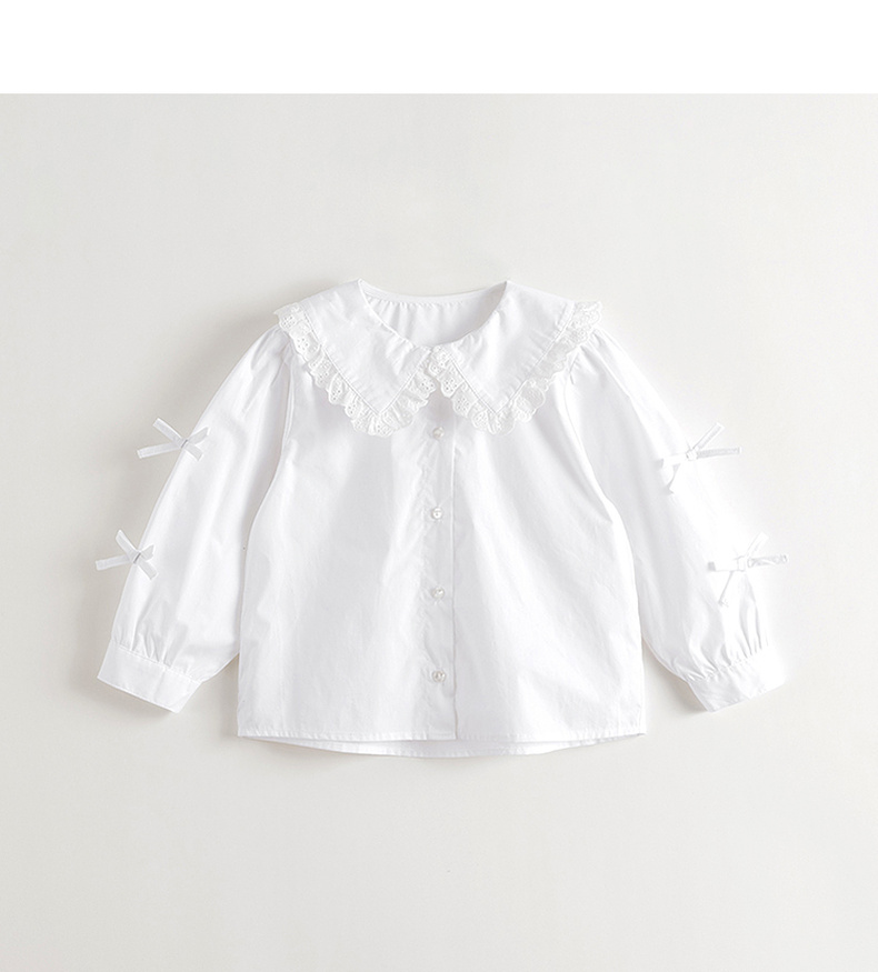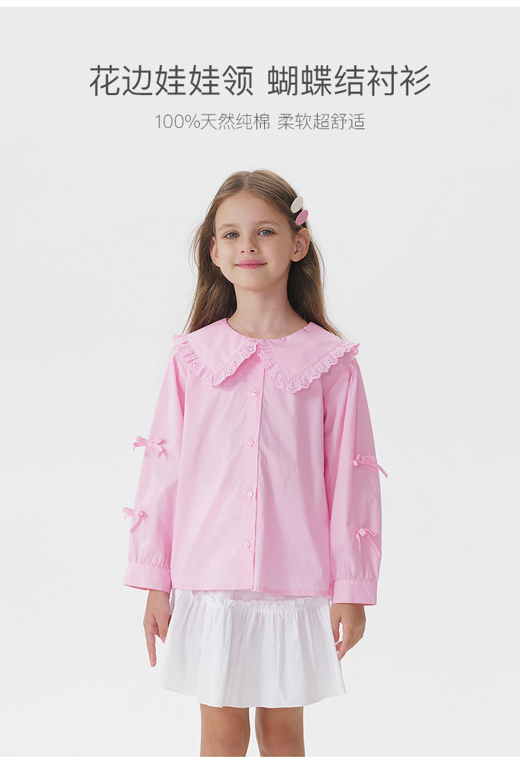 马克珍妮女童花边娃娃领蝴蝶结衬衫儿童衬衣2025年秋装新款551671