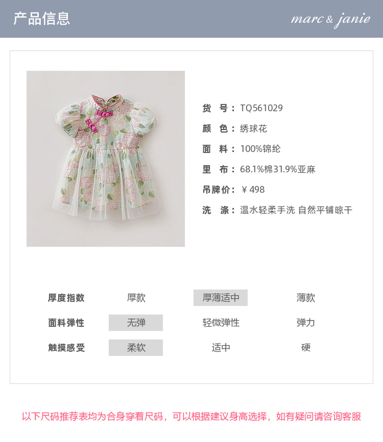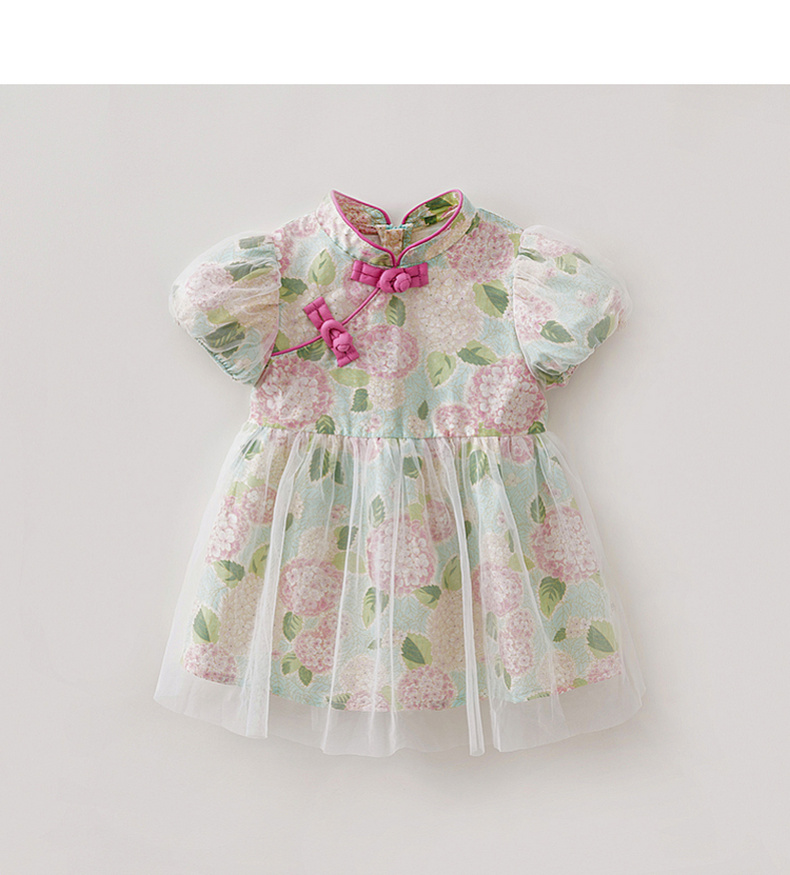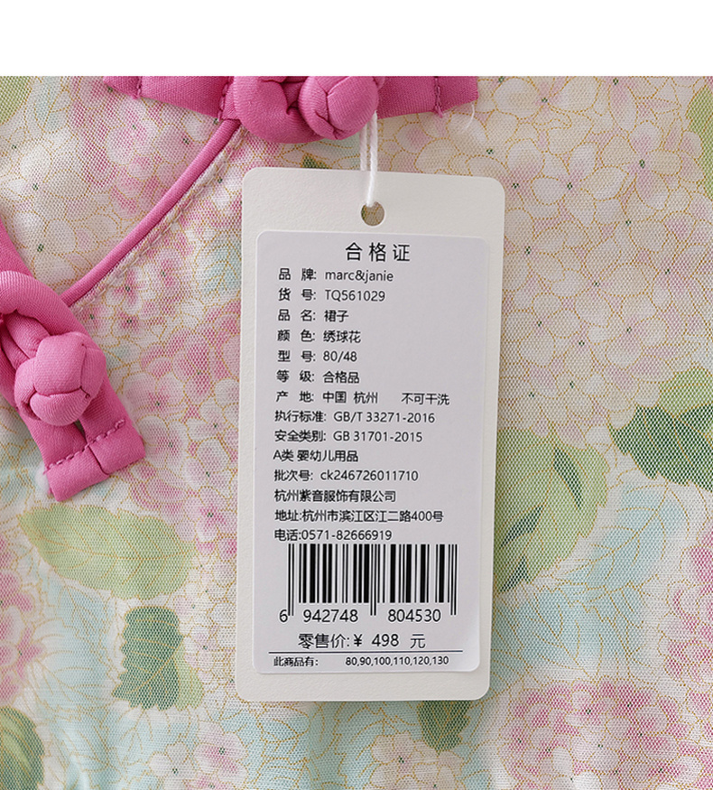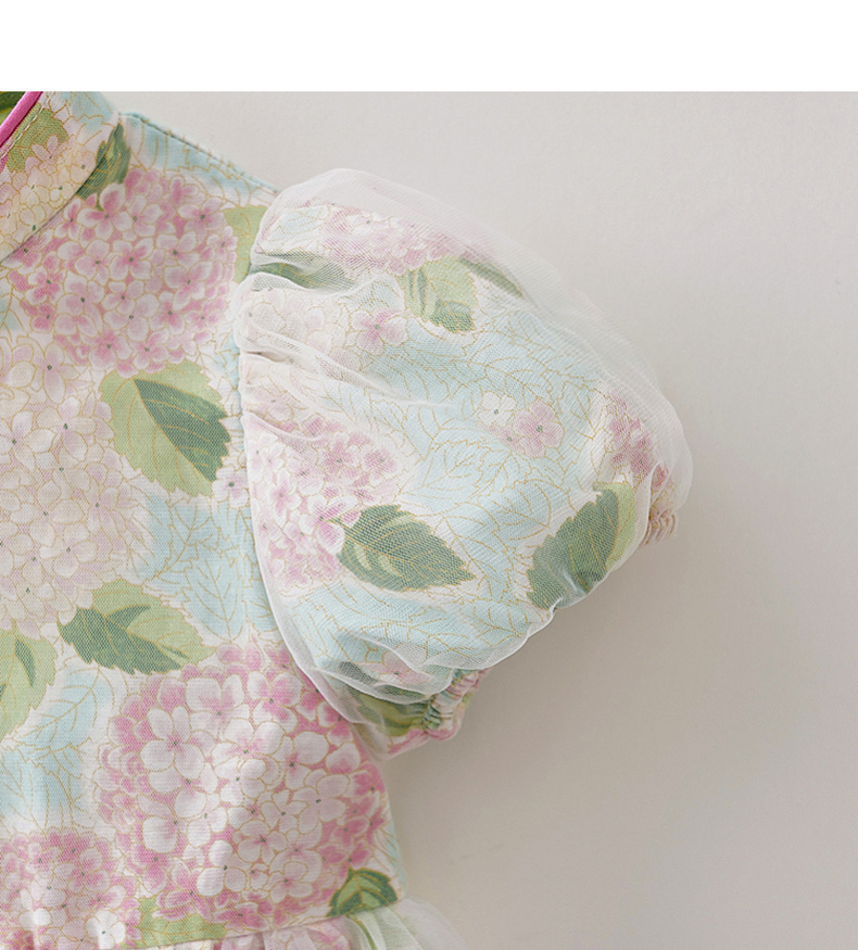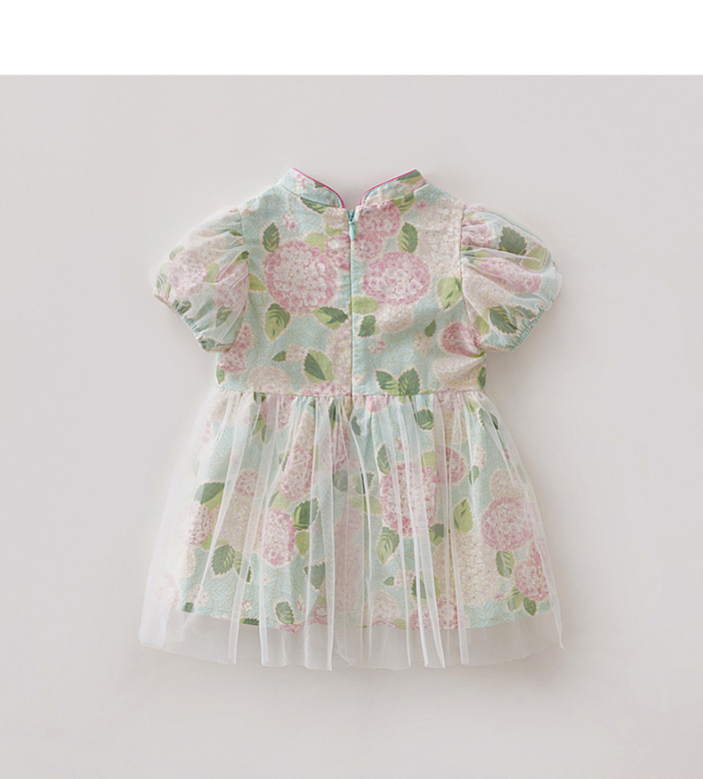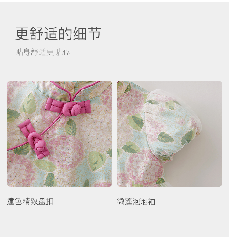 马克珍妮绣球花园女童亚麻旗袍连衣裙2026年夏装新款561029