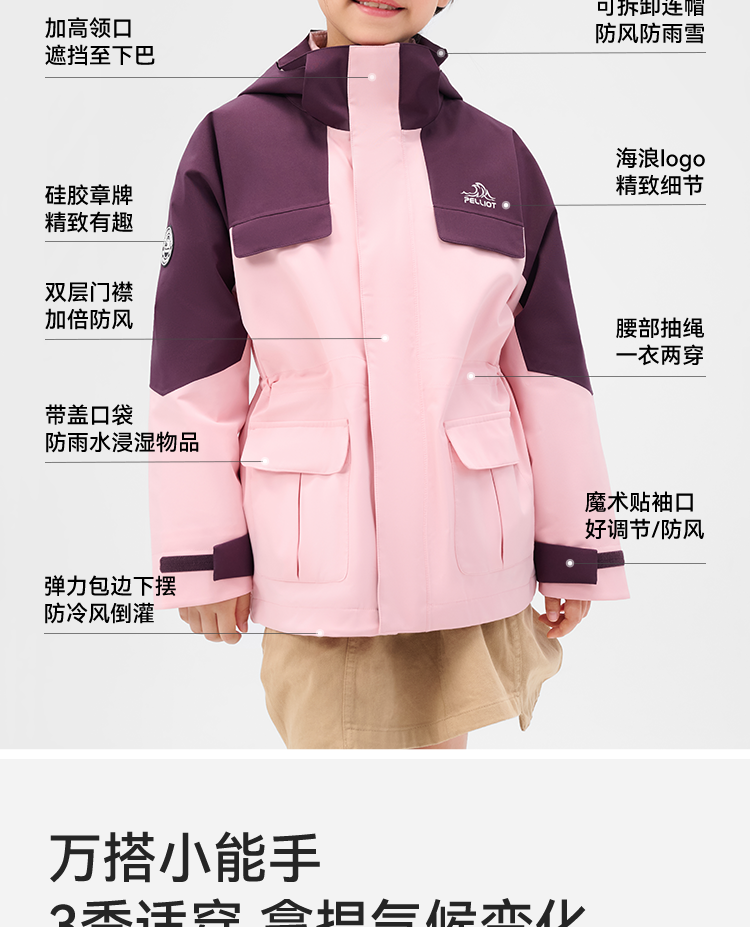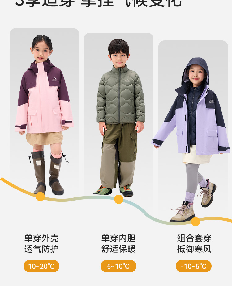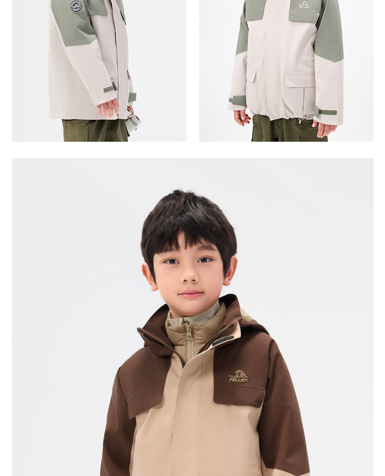 伯希和户外儿童羽绒冲锋衣冬季新款三合一鹅绒内胆保暖登山服外套