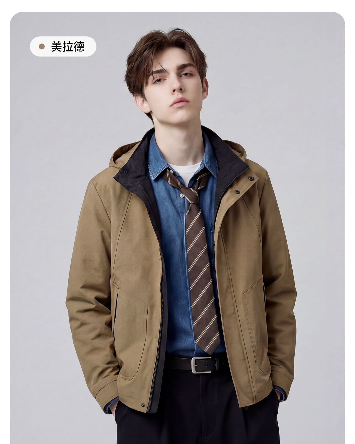【可拆卸帽】圣得西男士日常外套2026新款春季通勤风一衣两穿夹克