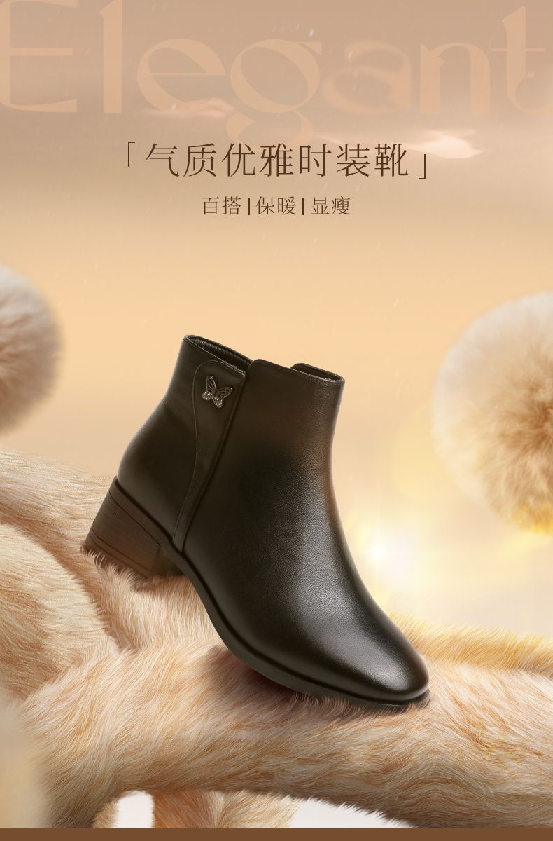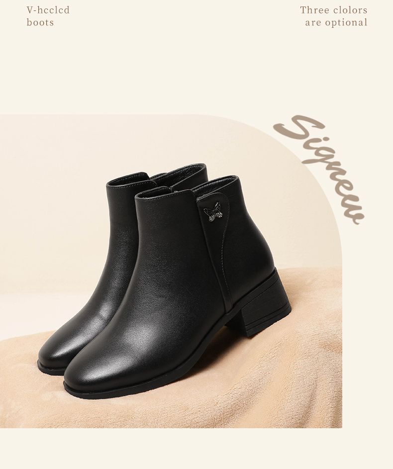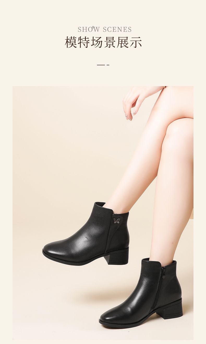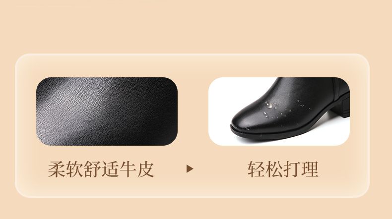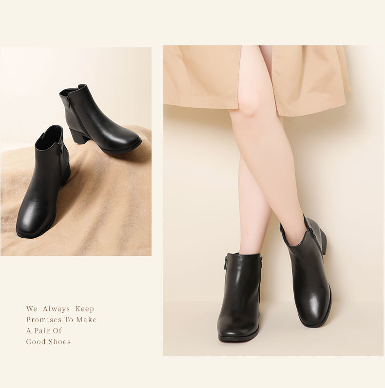 信诺真皮舒适短靴2023新款秋冬季中年粗跟妈妈鞋软底加绒女士皮鞋23M519-6D