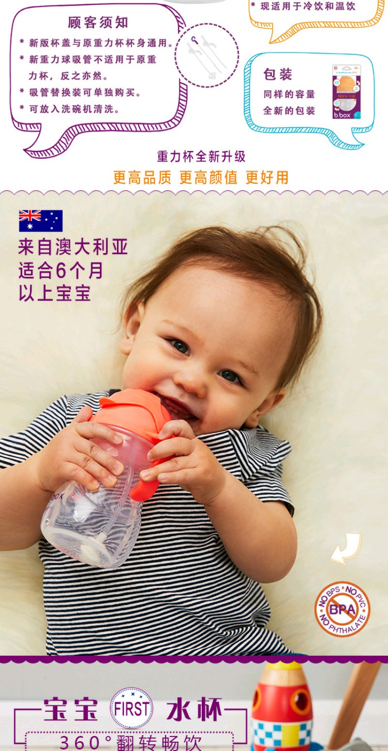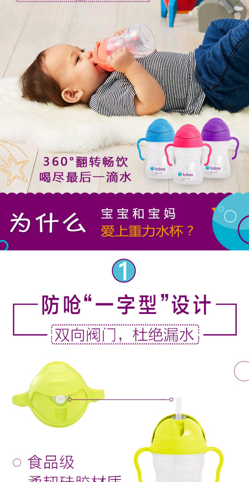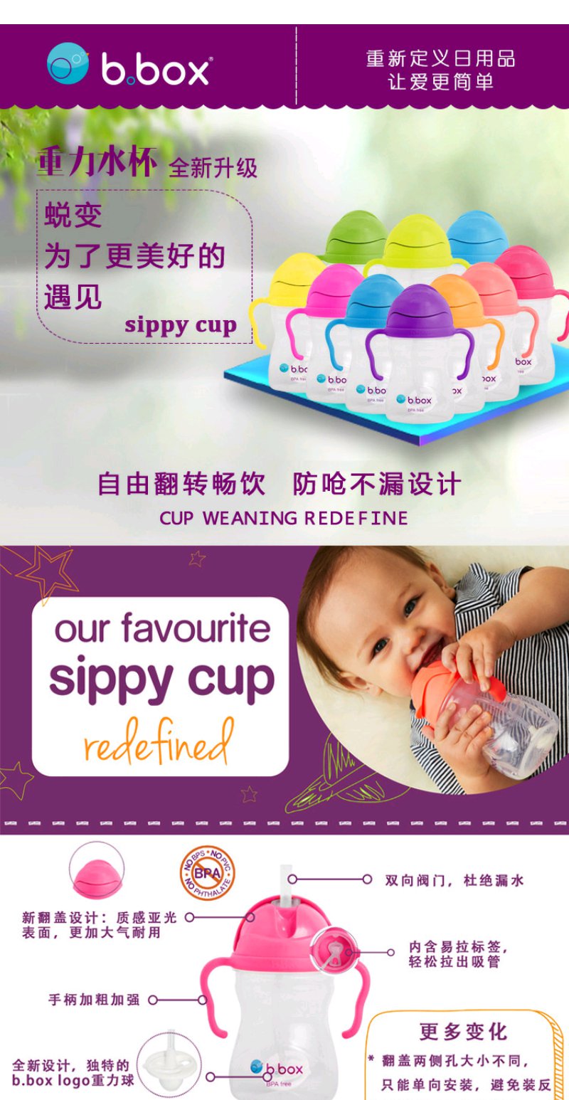 (超值)澳洲b.box 吸管杯 重力球 婴儿学饮杯 重力水杯 雪糕色
