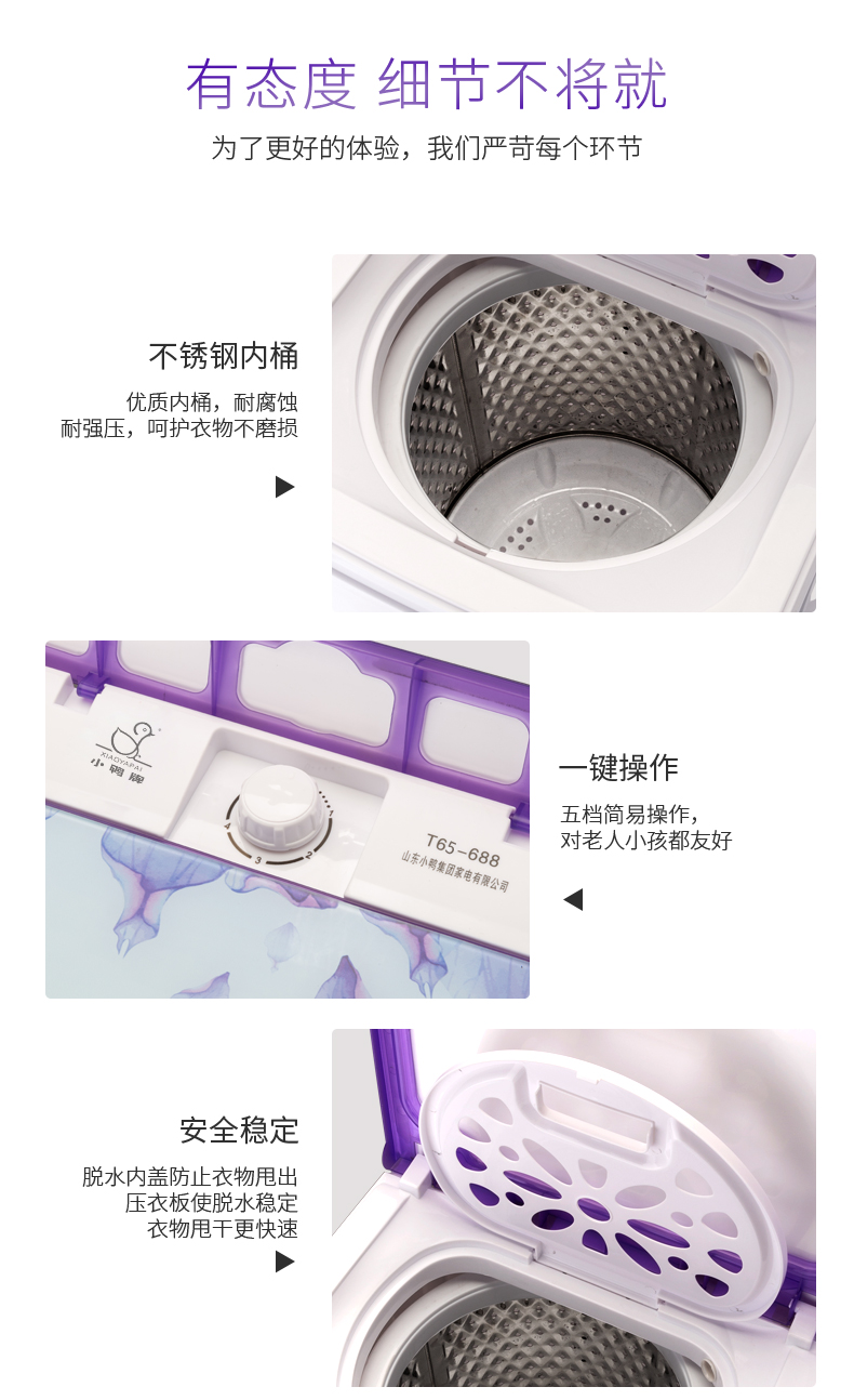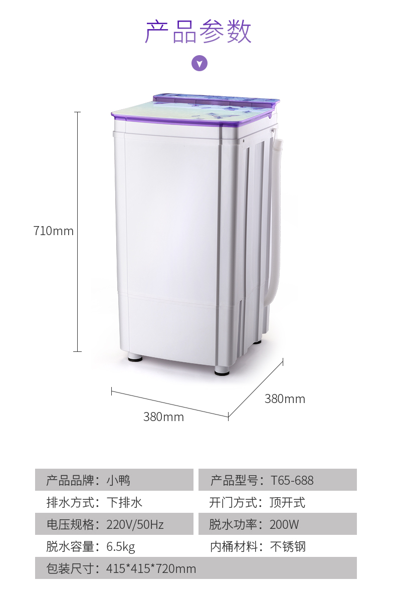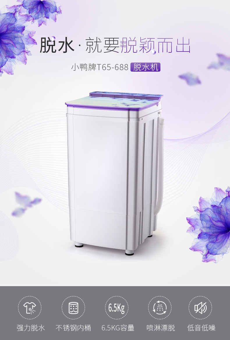 小鸭6.5公斤 脱水机 甩干机小型 迷你不锈钢甩干桶脱水桶 T65-688