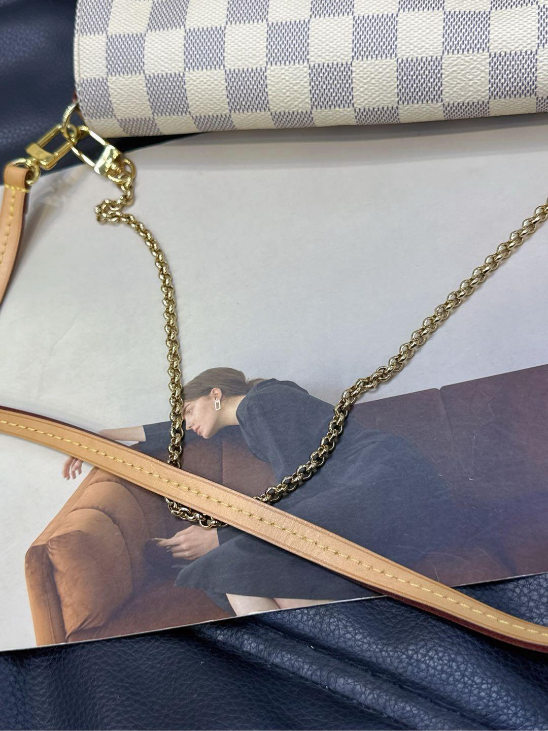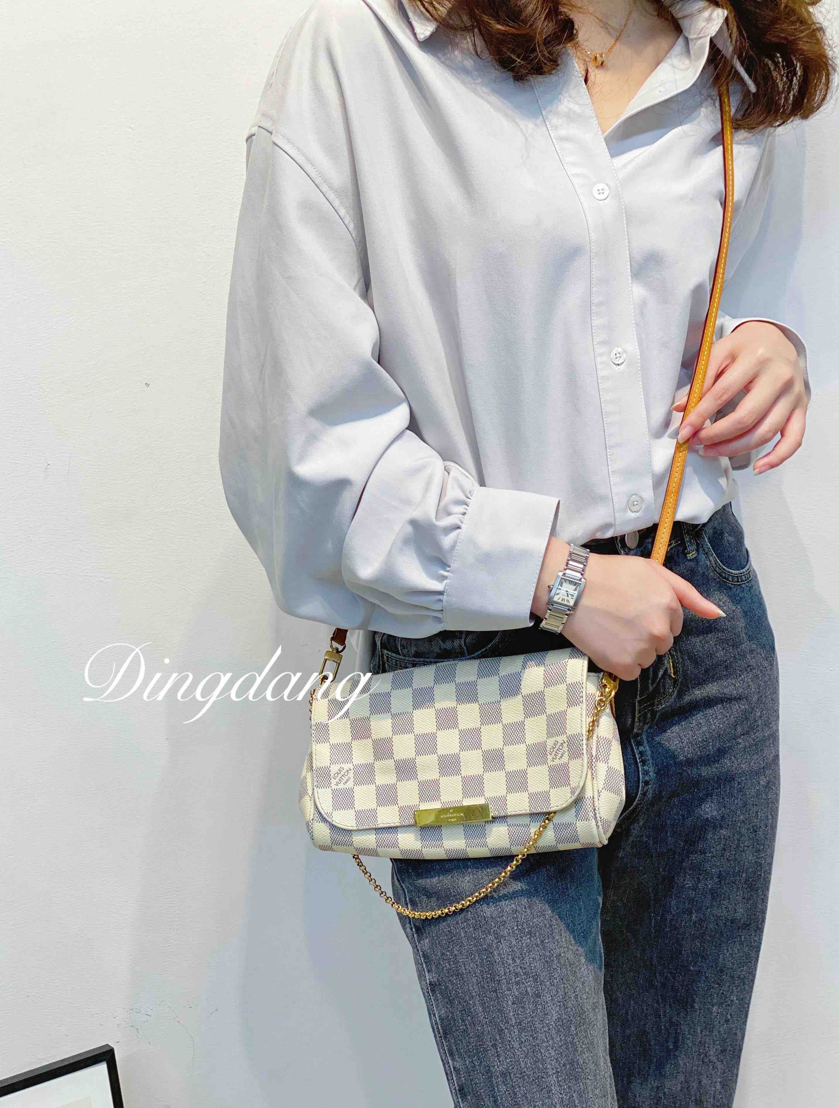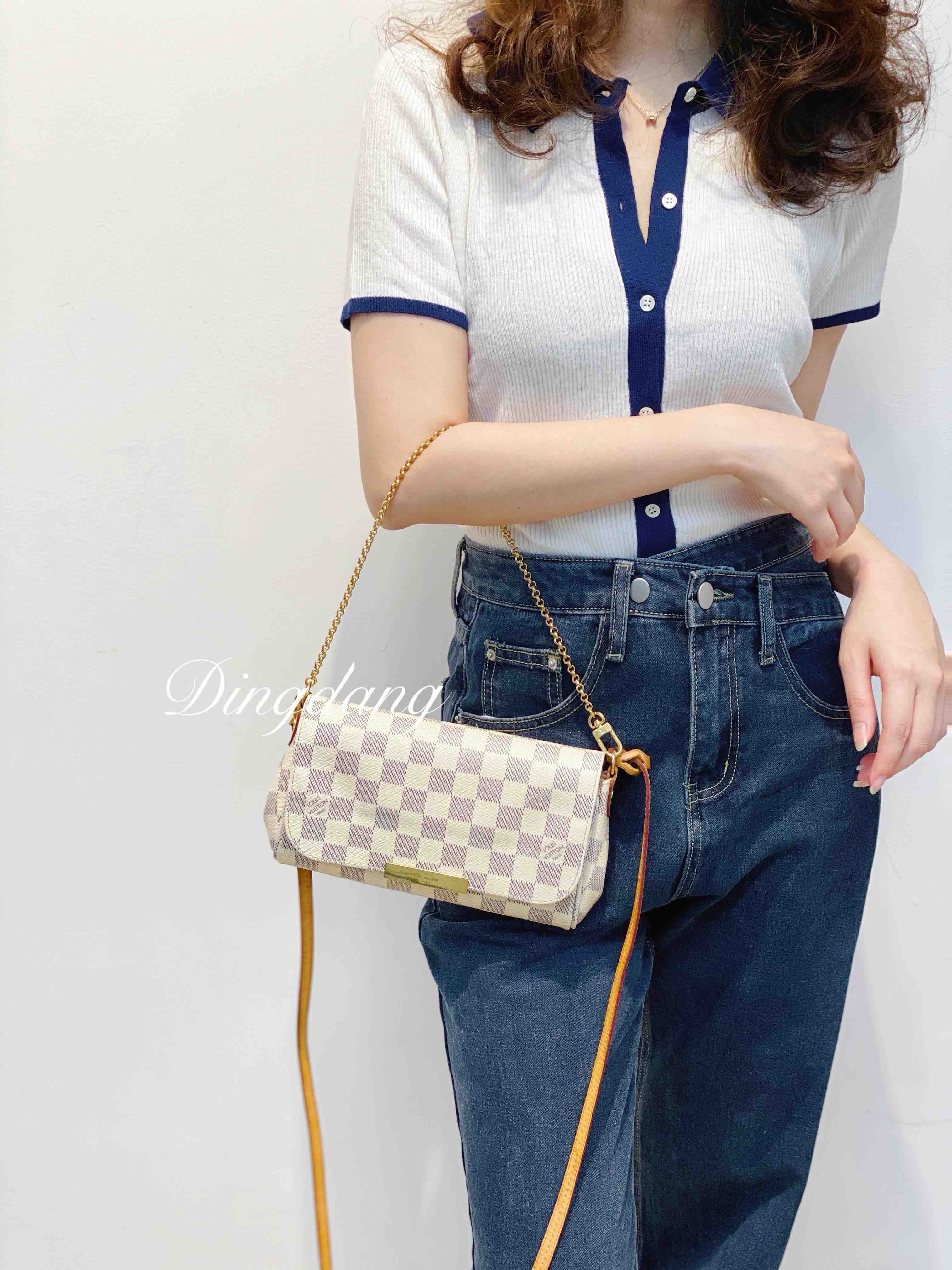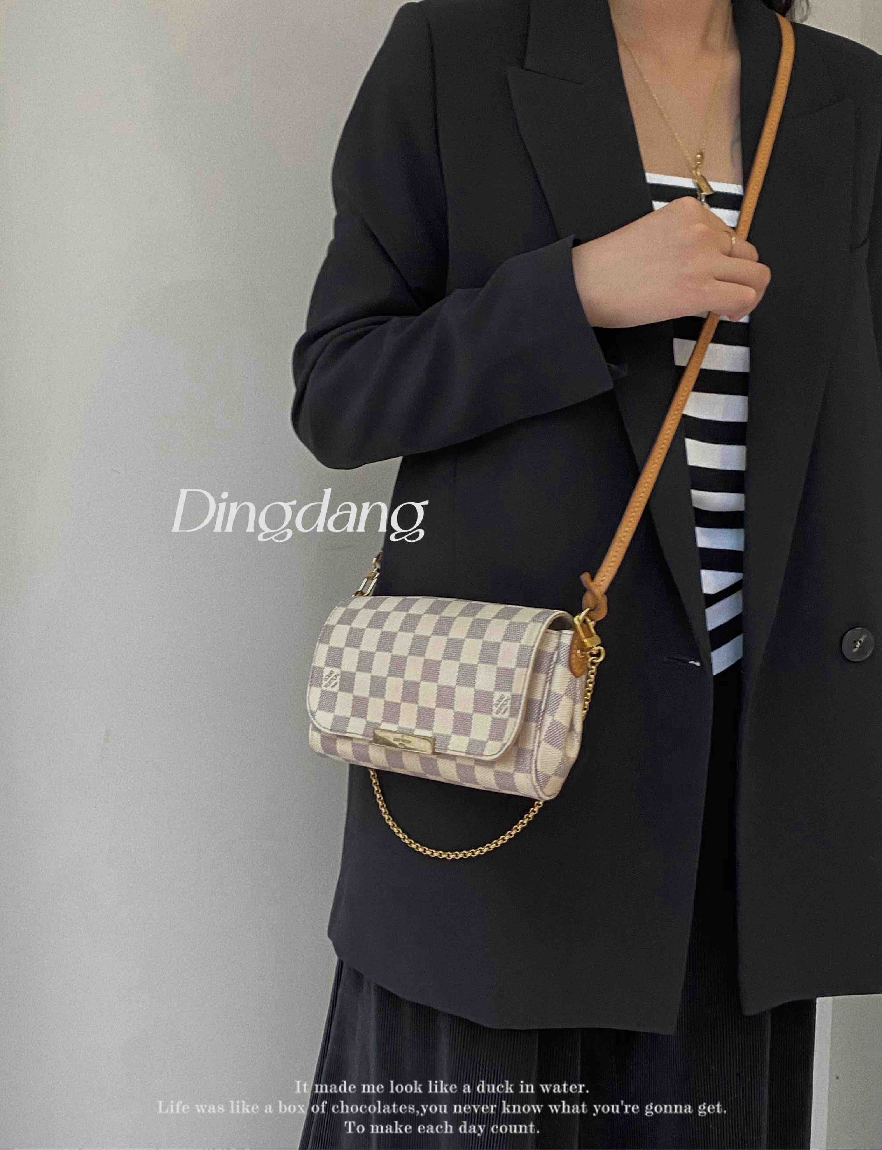 Lv 小号 白棋盘格 favorite 斜挎包