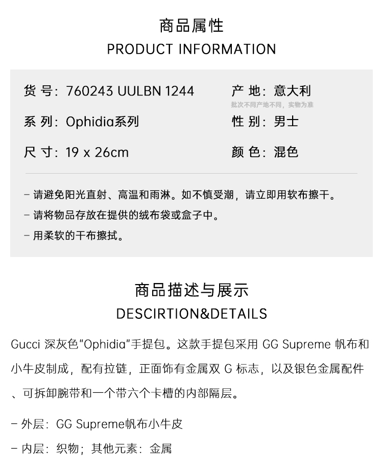 【二】GUCCI 古驰 男士 Ophidia系列 GG Supreme帆布手包 混色 760243 UULBN 1244
