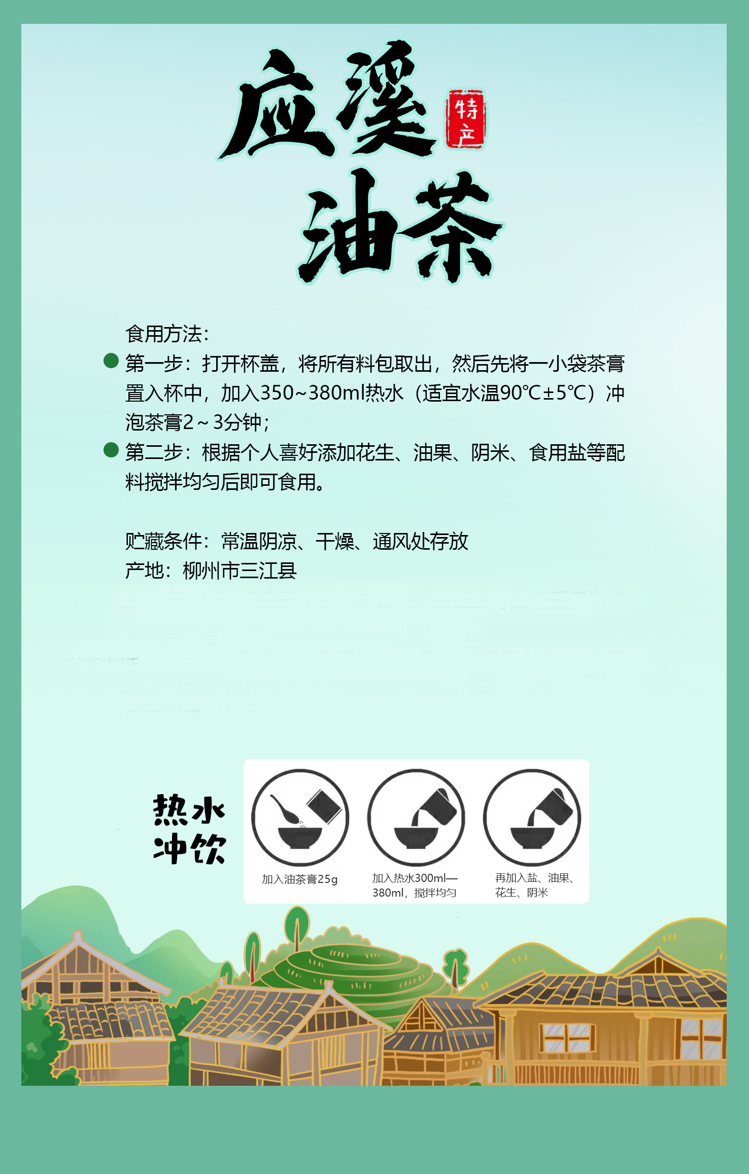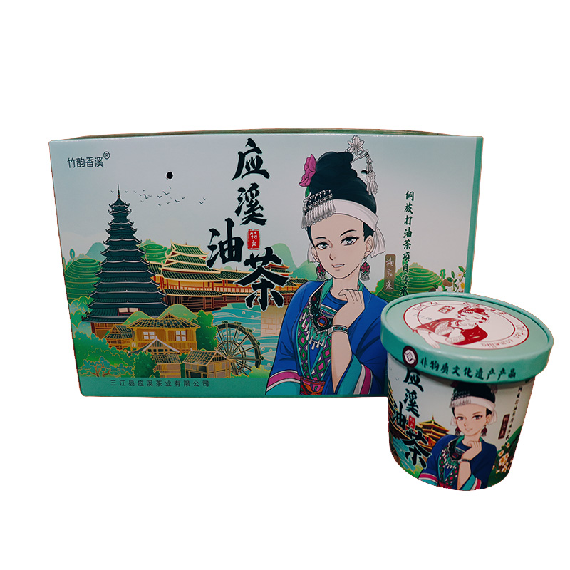 应溪油茶由三江县应溪茶业有限公司研发,也是全国残疾人文化创意产业基地的文创产品,其法人杨应溪为广西壮族自治区油茶传承人,也是三江县江川残疾人集中就业基地负责人,现在带领着70多名残疾人创业就业。做出一款香甜可口的油茶产品不仅能带动残疾人就业,更能传播民族文化,为此应溪油茶产品从研发、选材、生产工艺都经过层层把关,力争做到精益求精。
