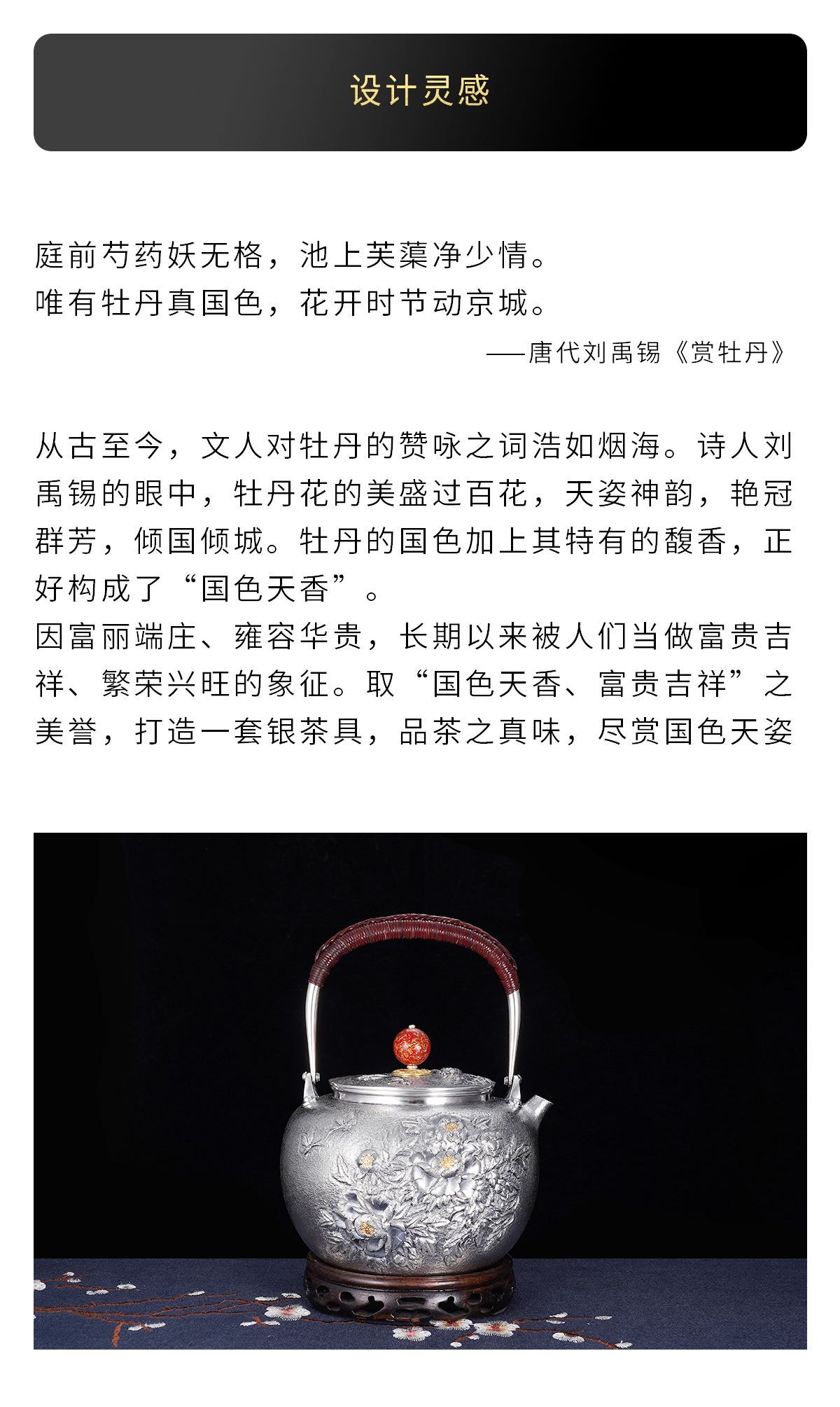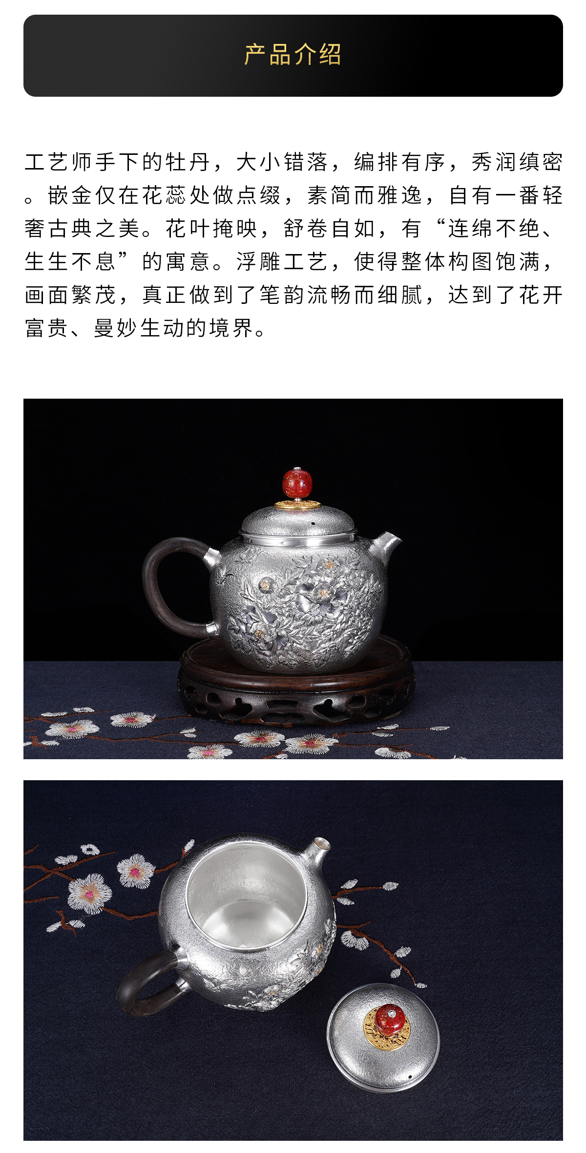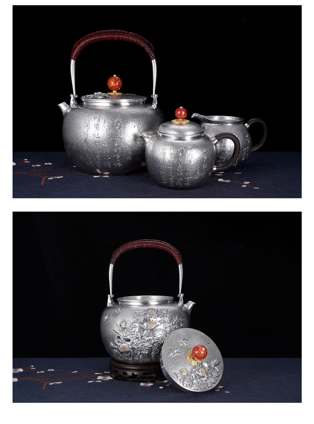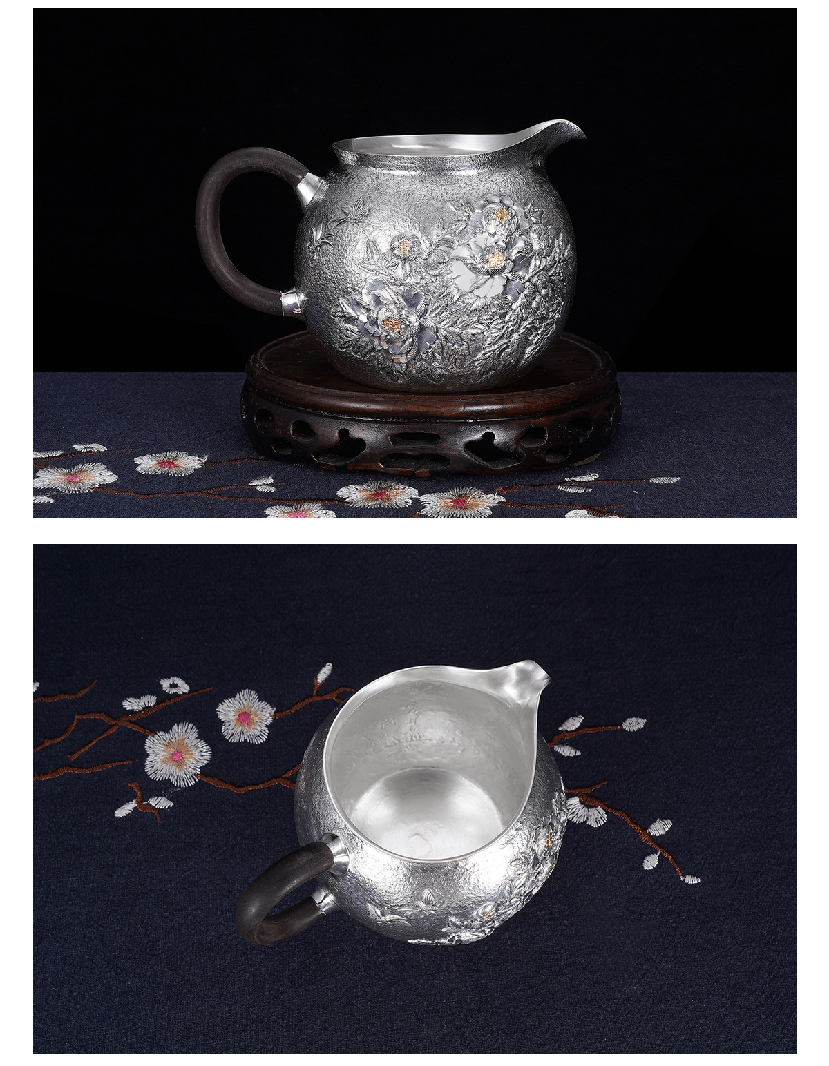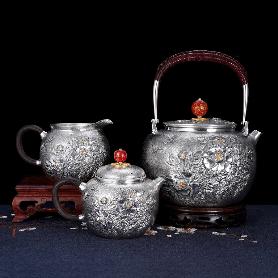 子佩集S990银【国色天香】牡丹提梁壶小茶壶公道杯摆件茶具套装【MH003】【MH005】【MH006】2311