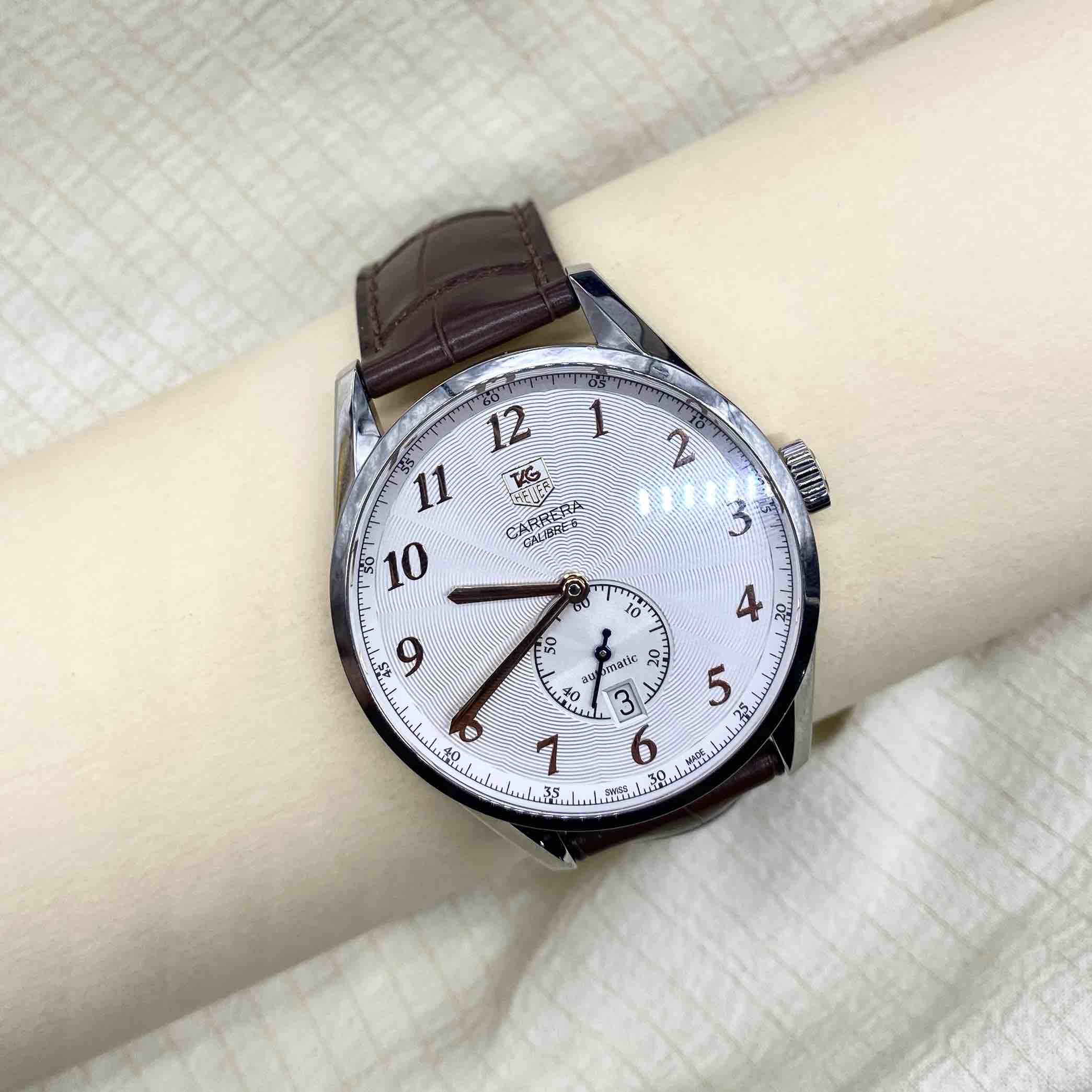泰格豪雅卡莱拉WAS2112.FC6181男款机械表,表径39mm,白色水波纹盘面,99新,专柜24400,现好价。