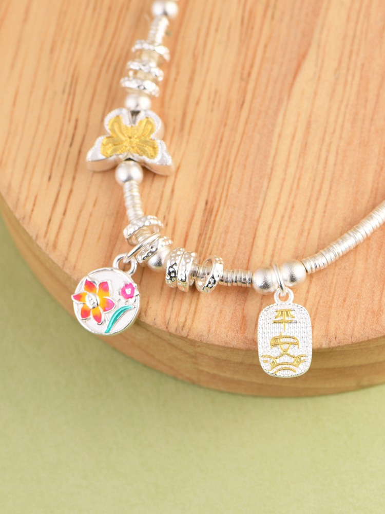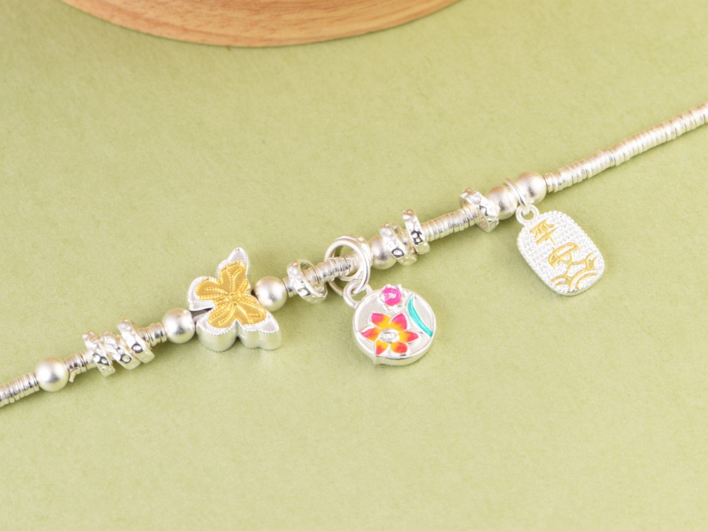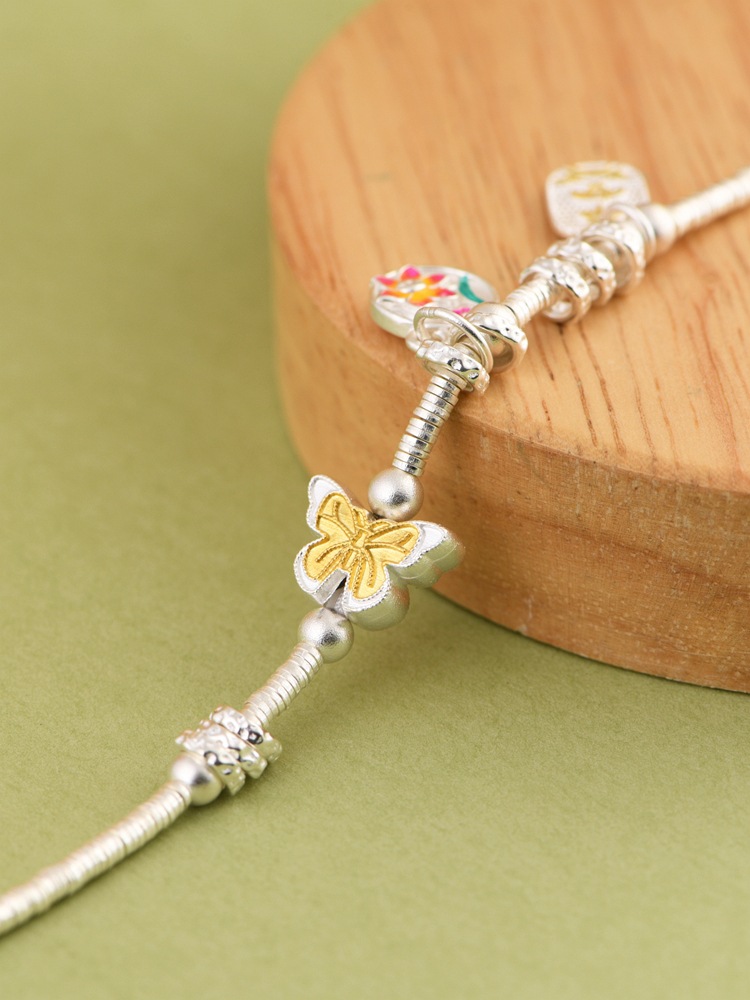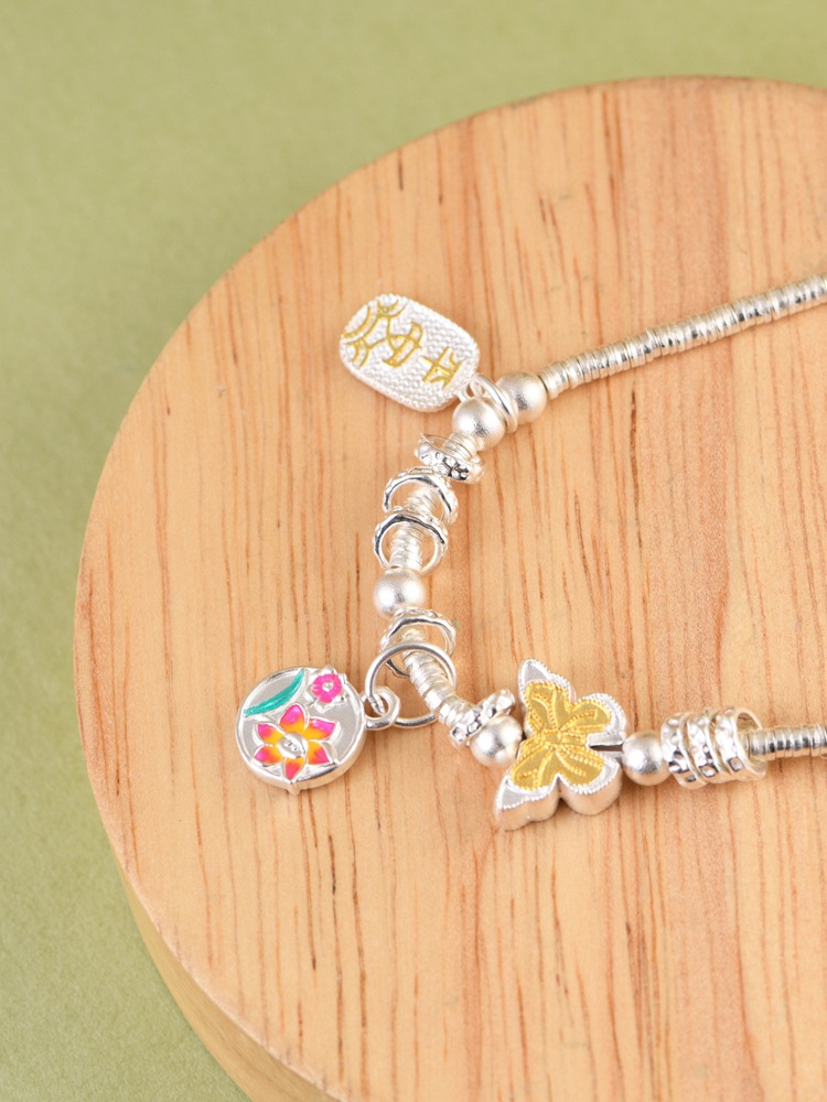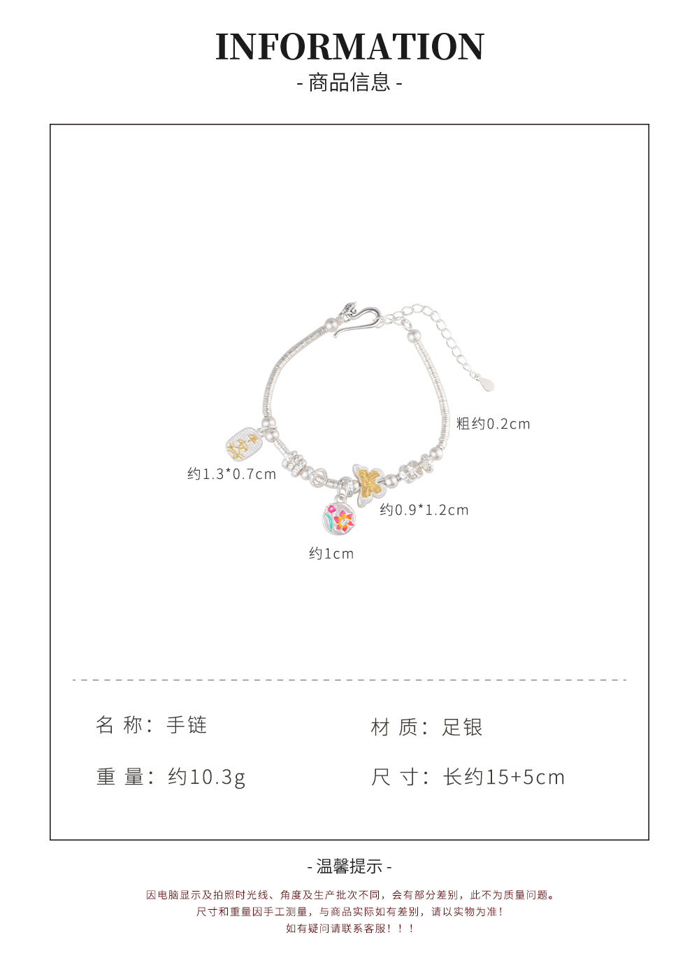 【繁花平安】足银999手工盘缠平安小花圆盘镀金蝴蝶散珠手链【SCH-CK40272-5】