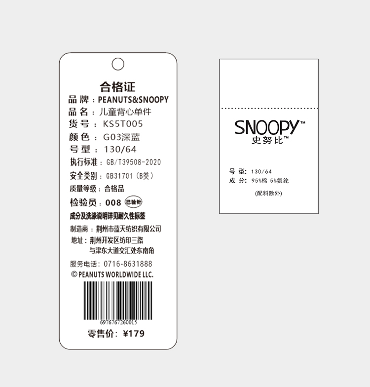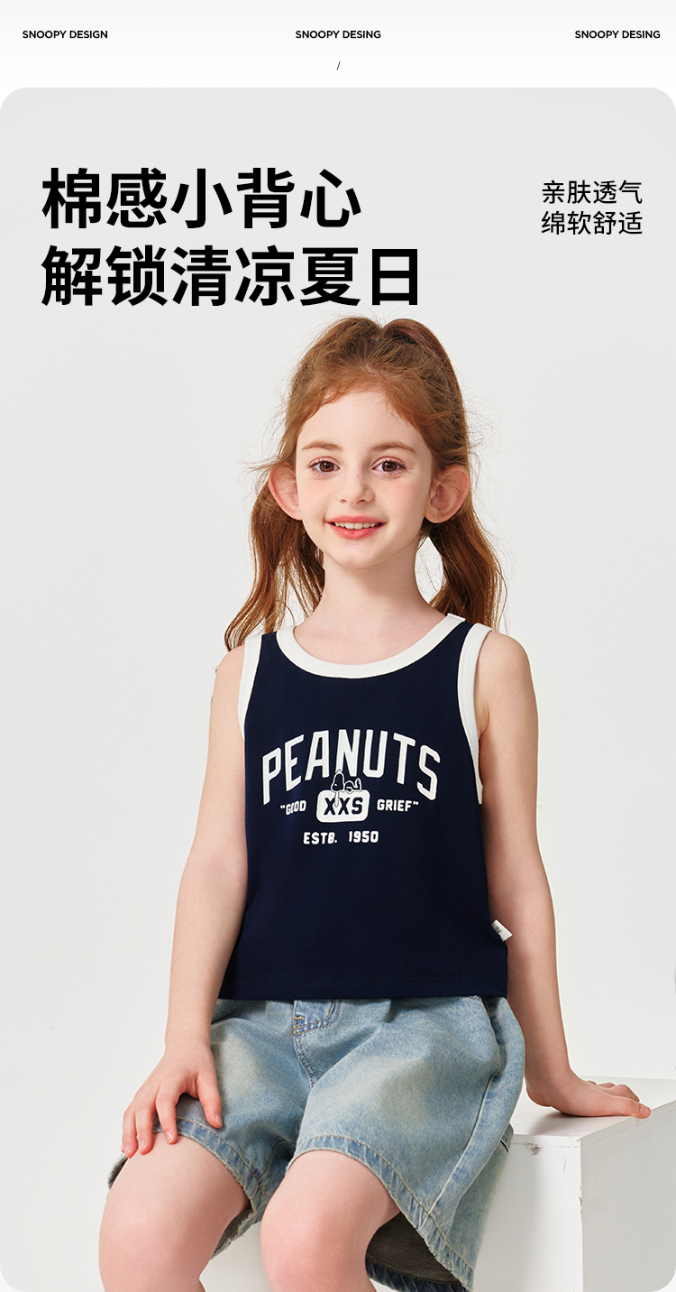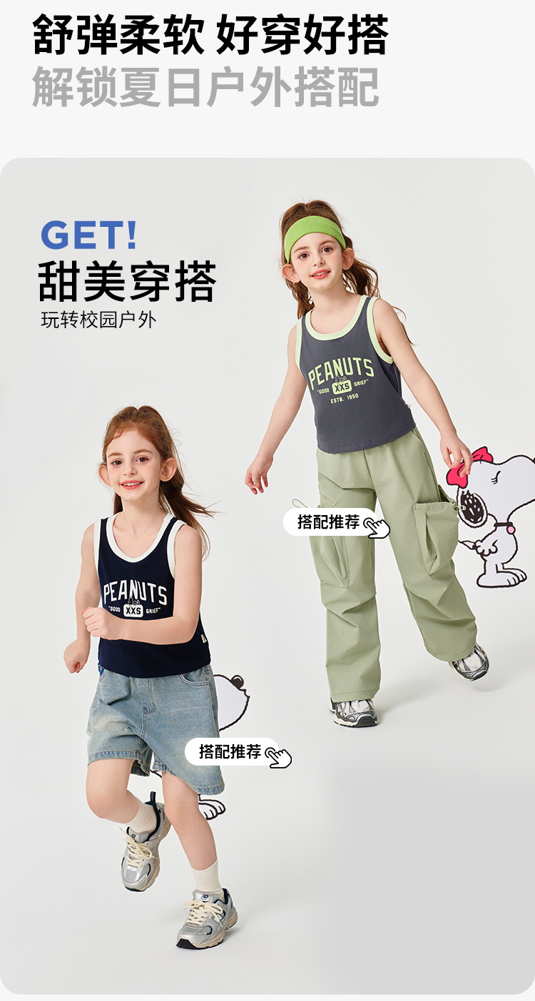 【130-165】【史努比】女童夏季清爽吊带撞色背心