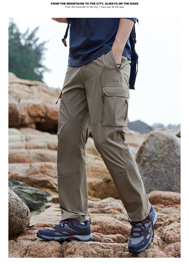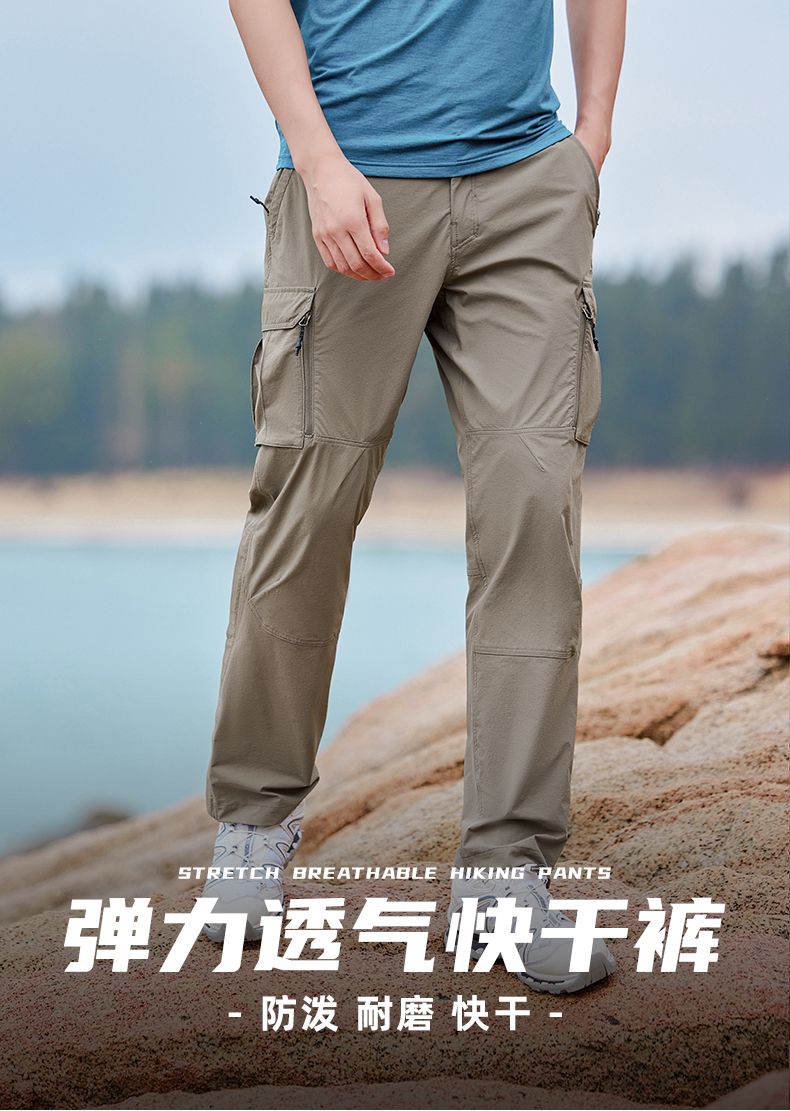 拓路者直筒快干裤男2024夏季工装裤弹力耐磨透气长裤运动登山裤