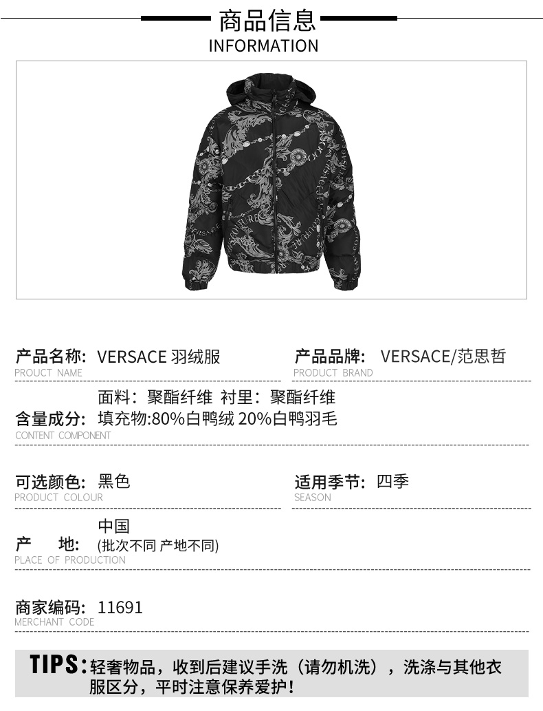 【超惠秒】Versace 范思哲 男士御寒 双面穿 白鸭绒夹克羽绒服外套 11691