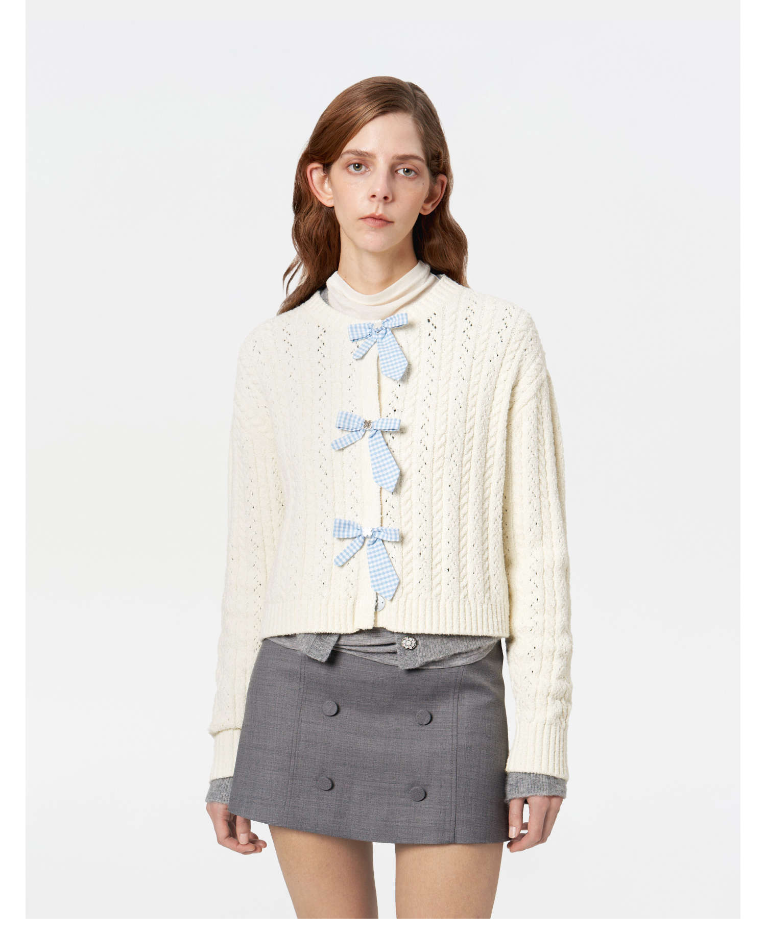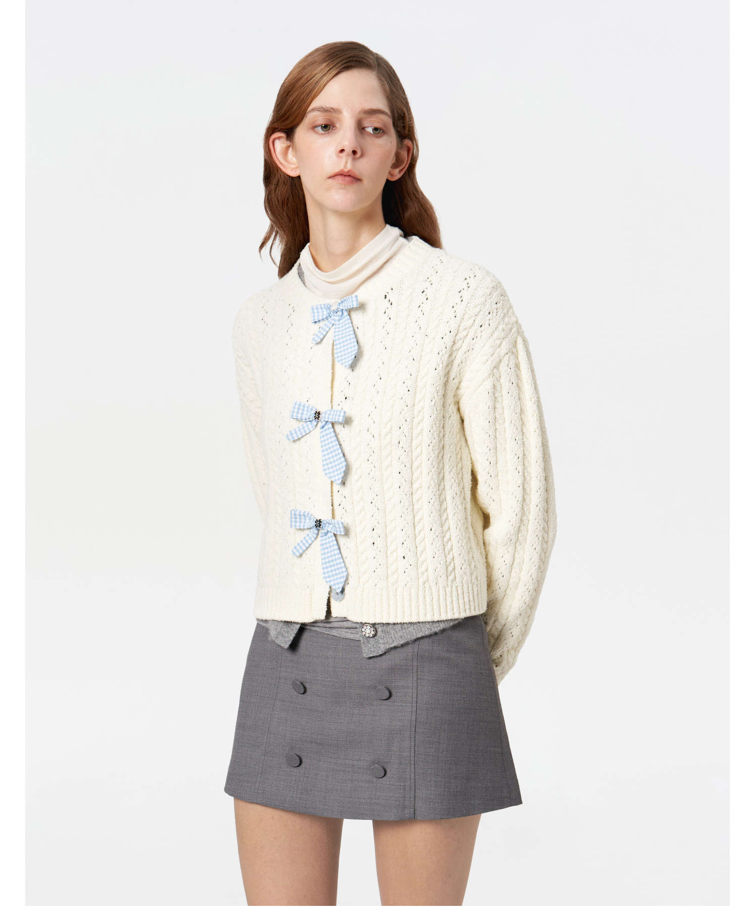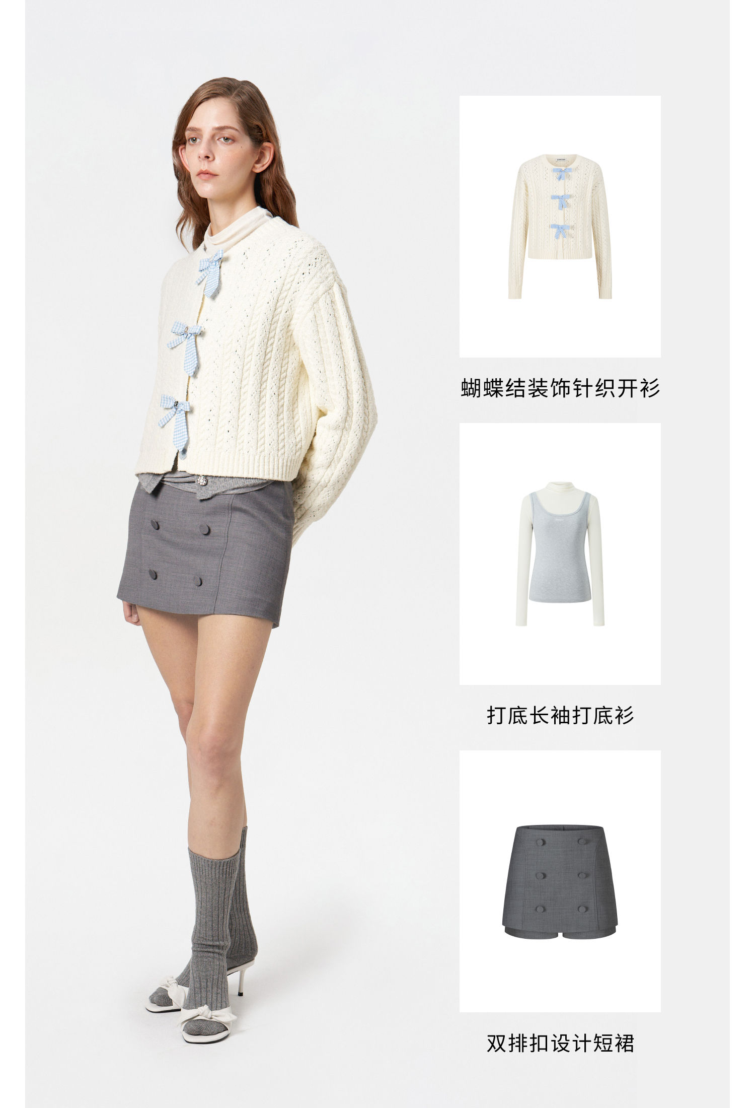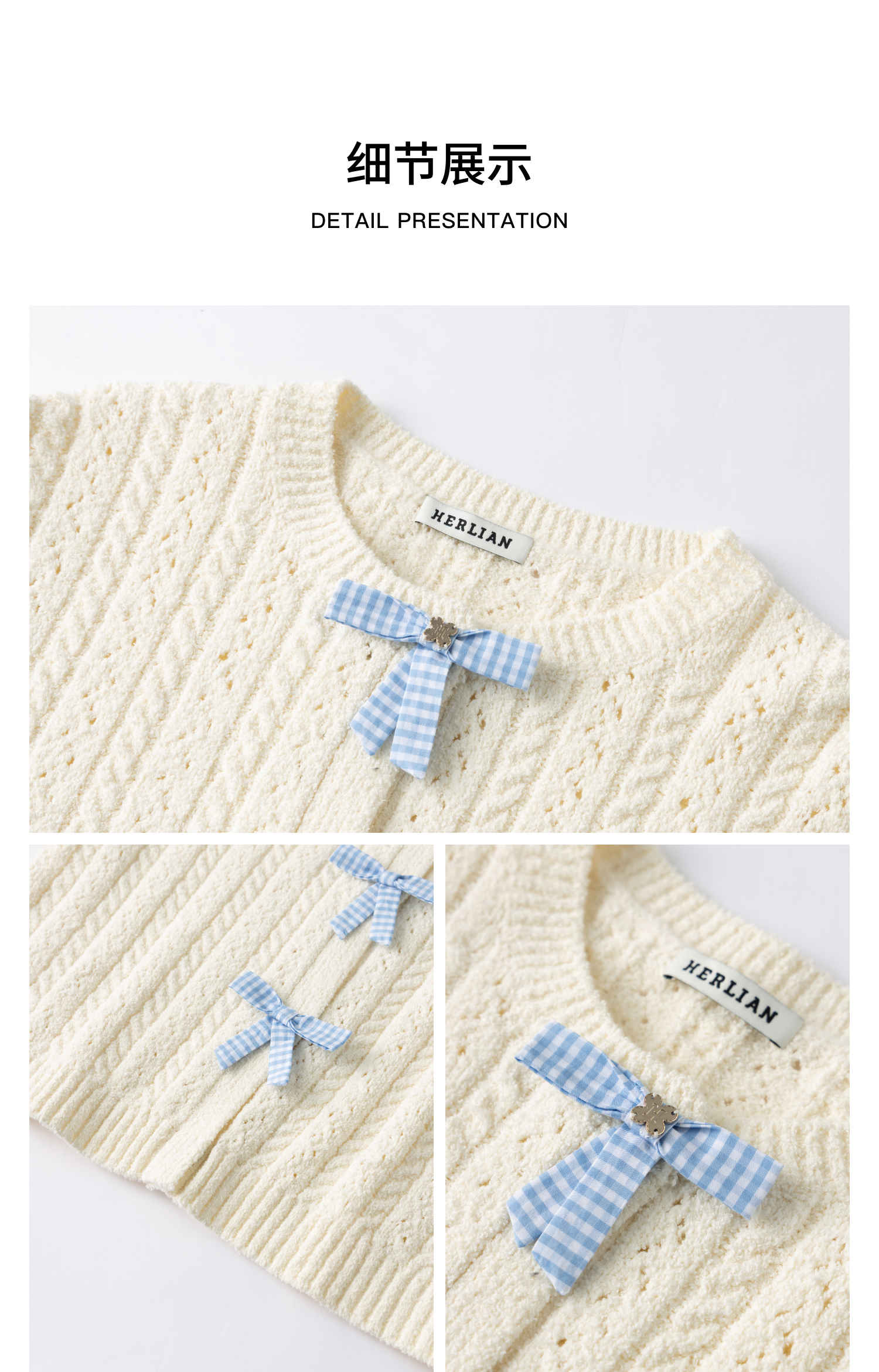 HERLIAN 2025冬季新品蝴蝶结装饰针织开衫女士
