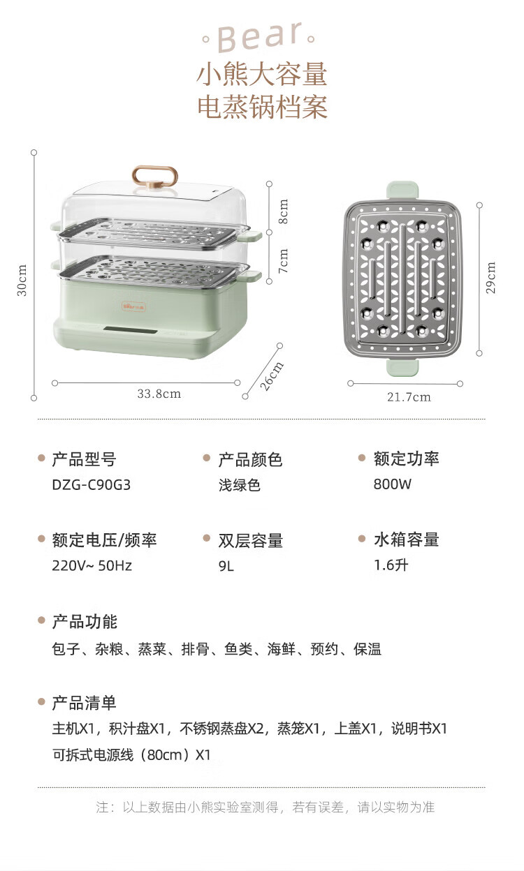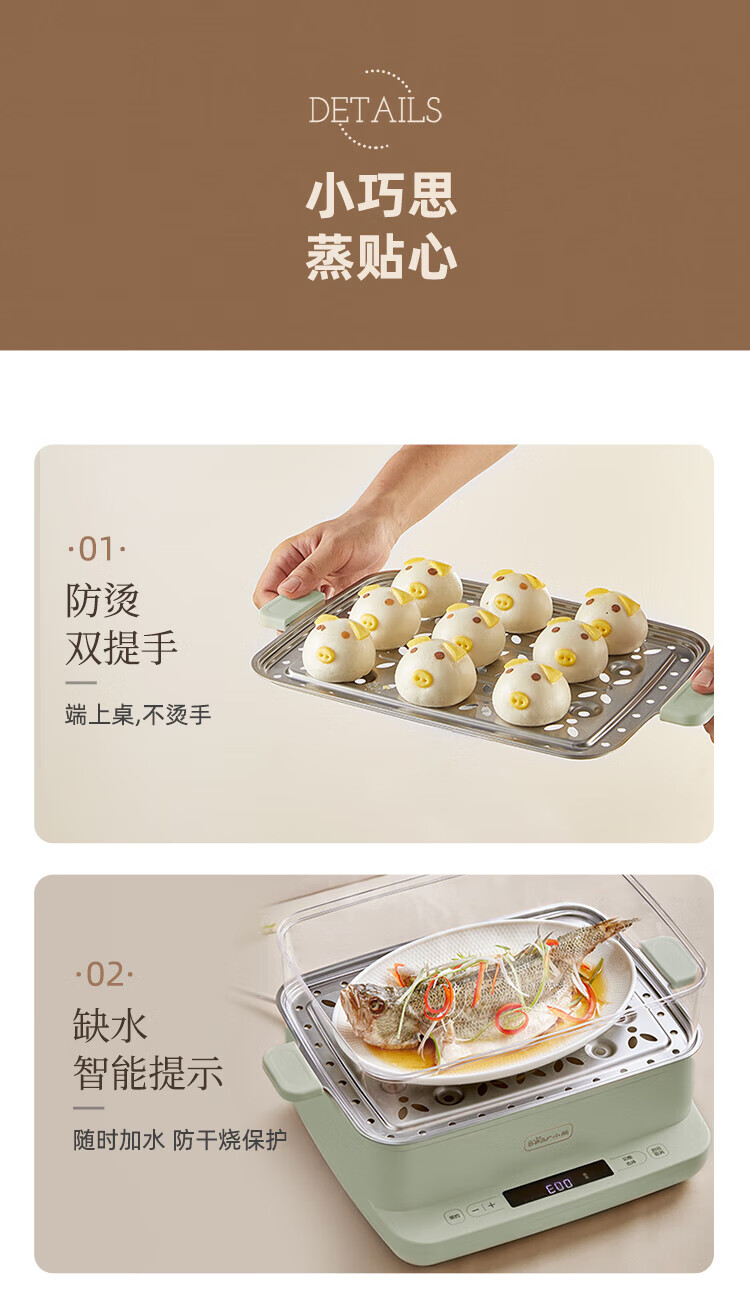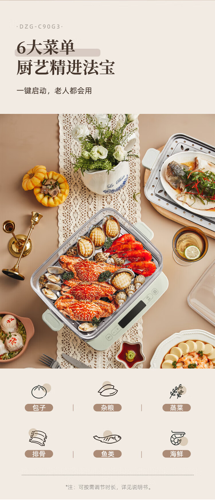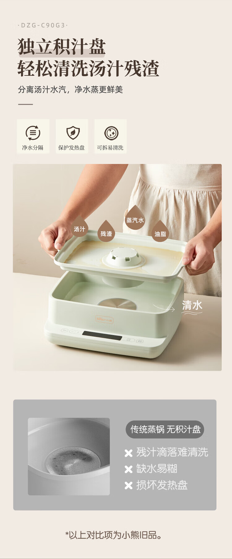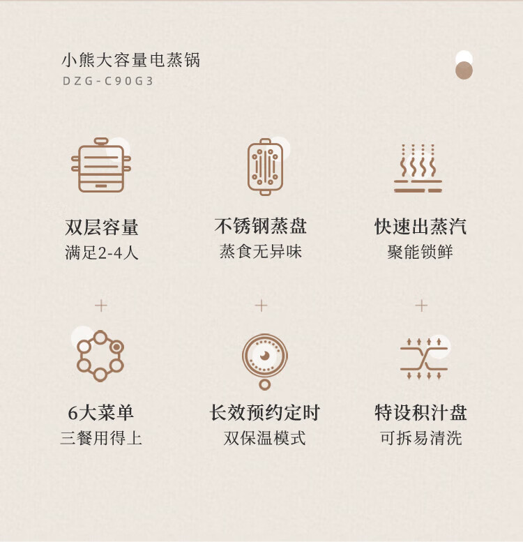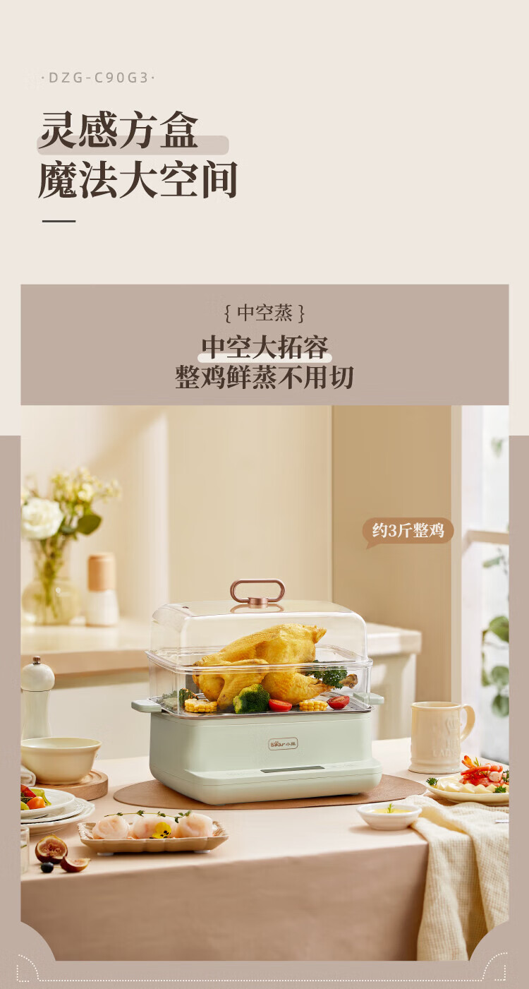 小熊(Bear) 电煮锅多功能锅9L大容量双层电蒸锅DZG-C90G3【ZMD安心系列】 DZG-C90G3